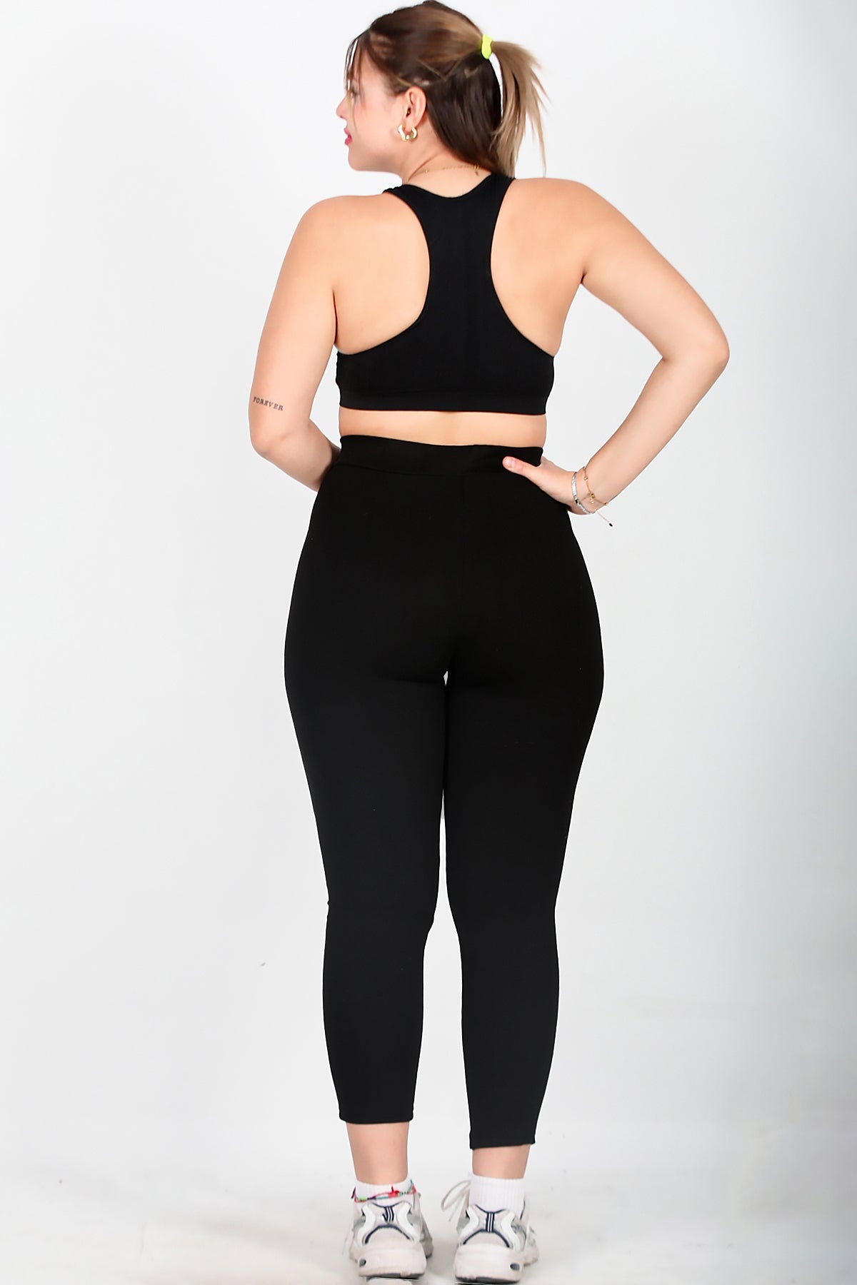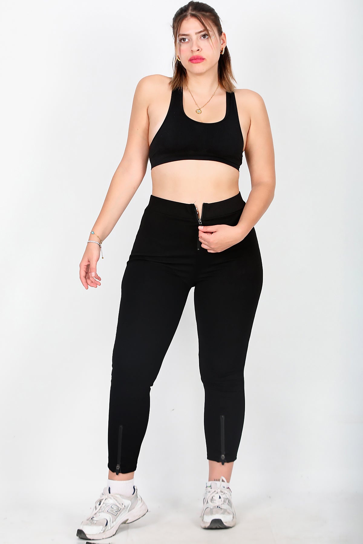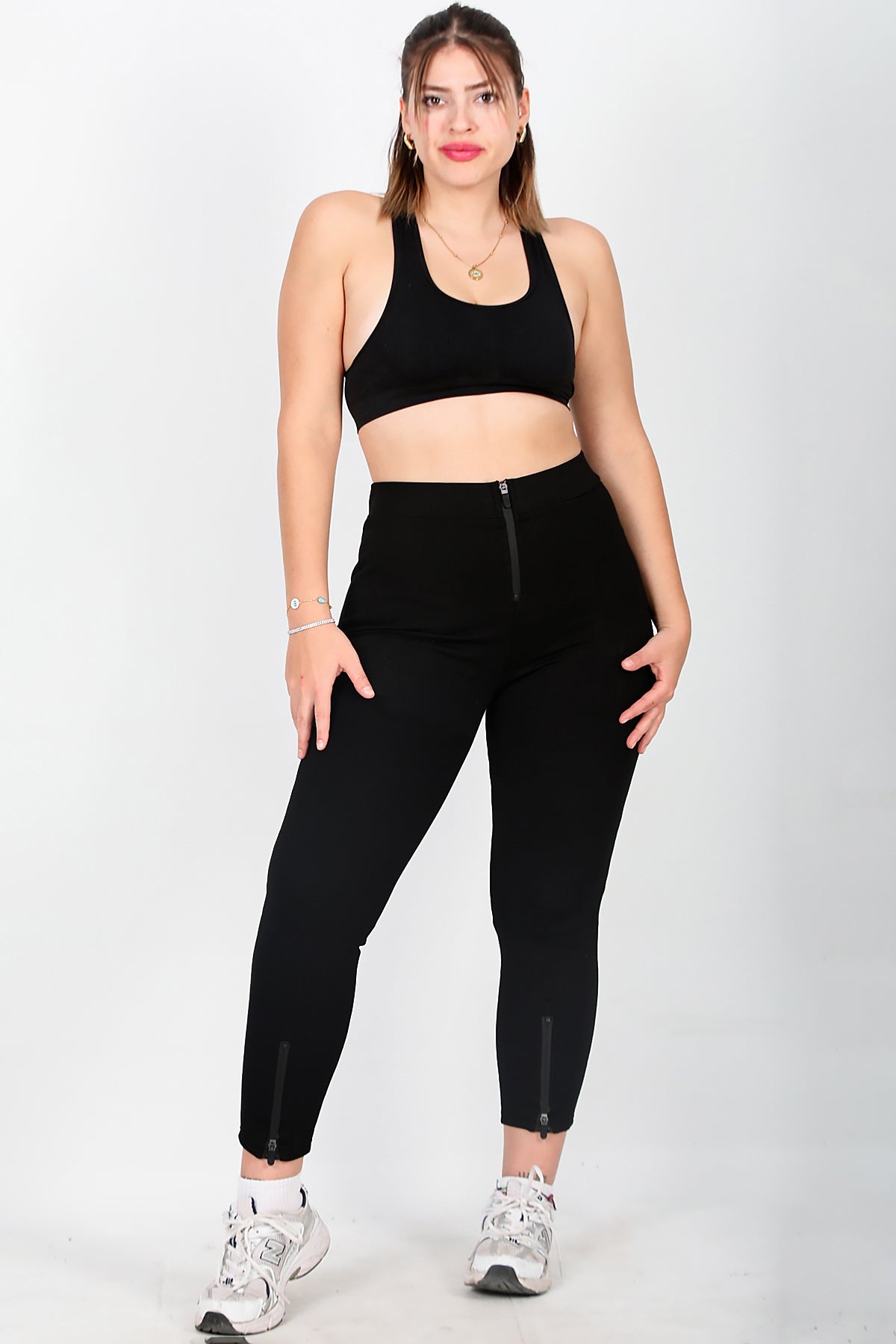 Büyük Beden Ön Ve Paça Fermuarlı Tayt Siyah