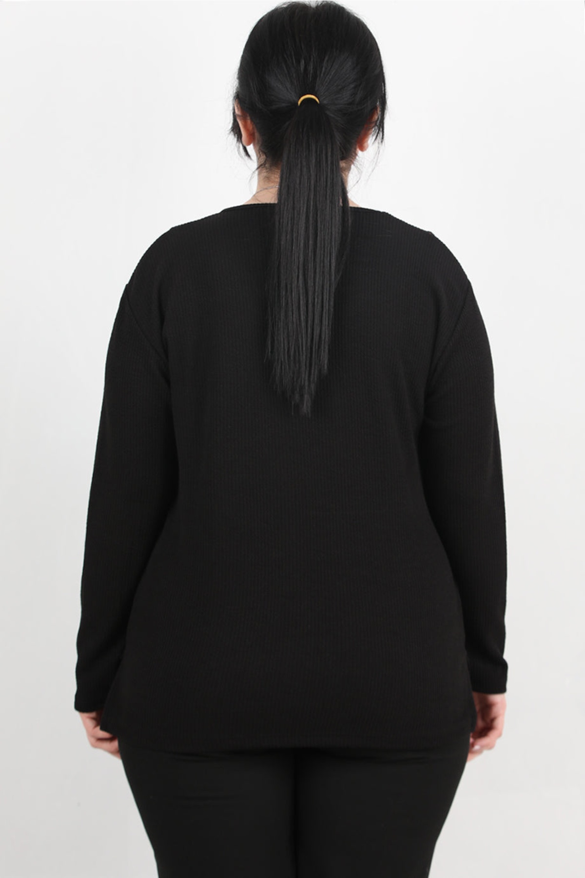 Büyük Beden Önü Ve Yaka Düğmeli Bluz Siyah