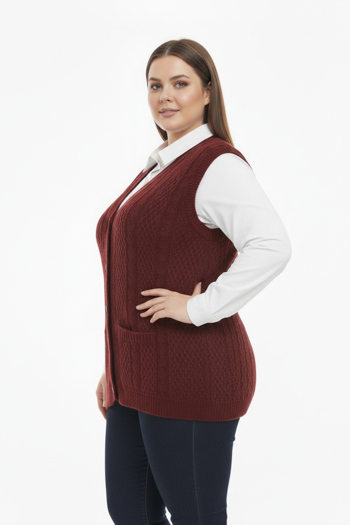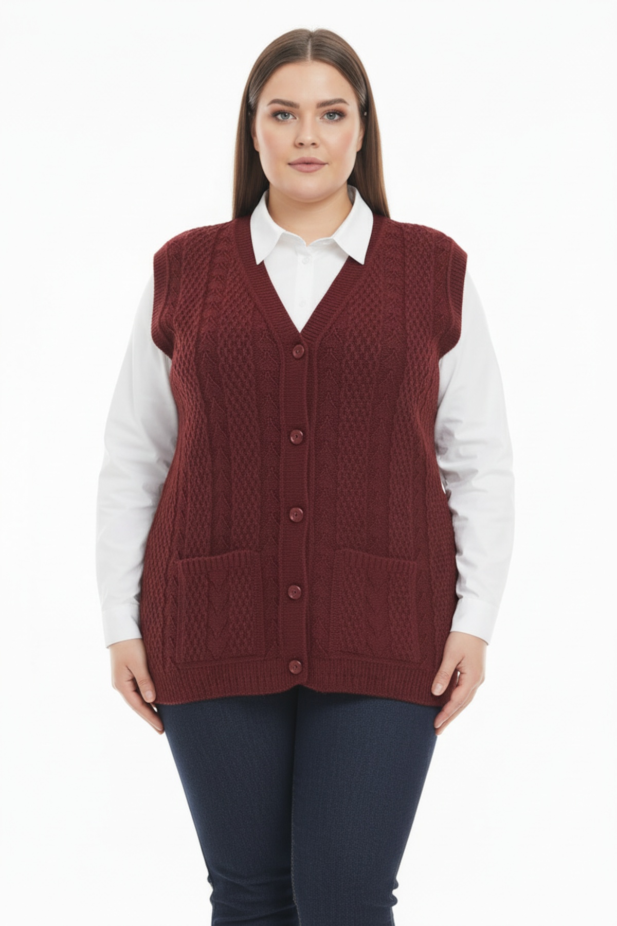 Büyük Beden V Yaka 3 Düğmeli Bluz