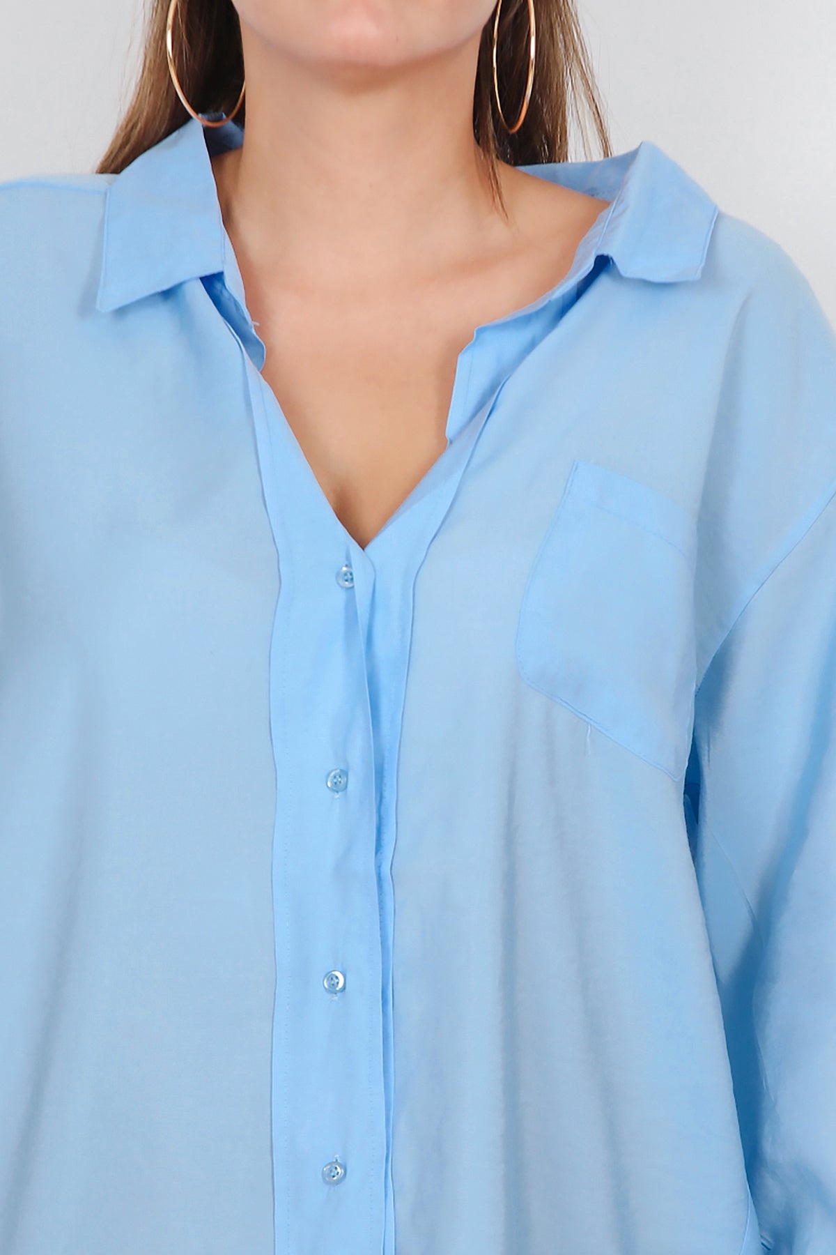 Büyük Beden Owersize Gömlek Bebe Mavisi