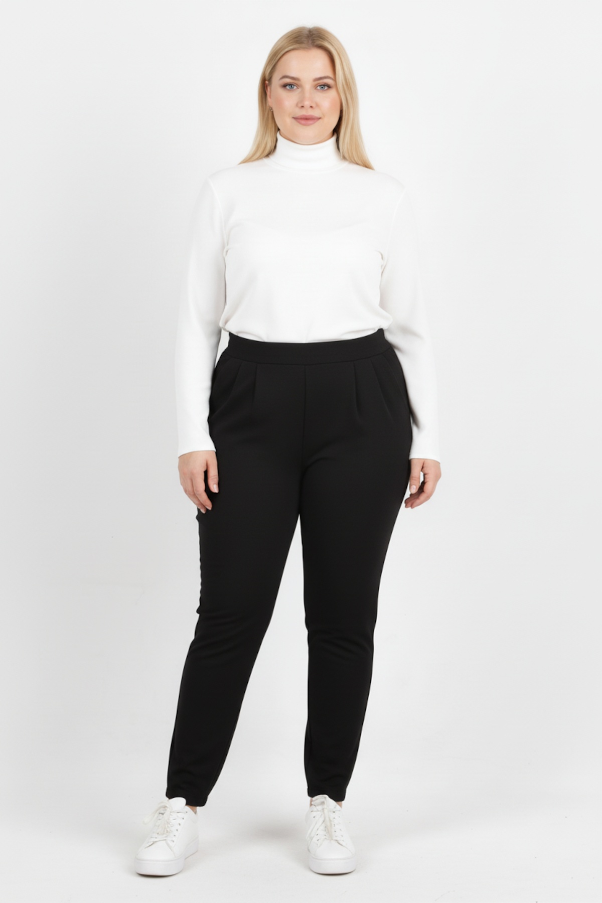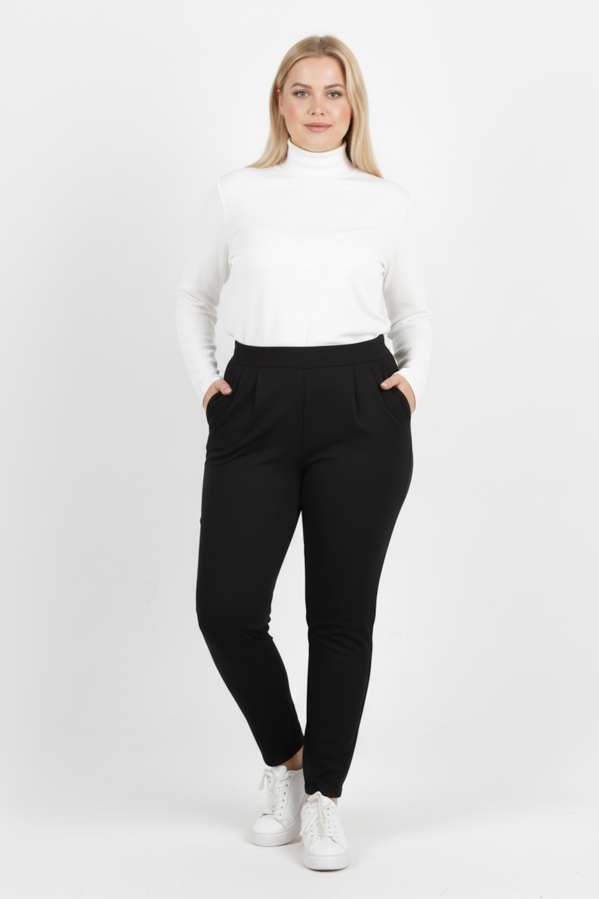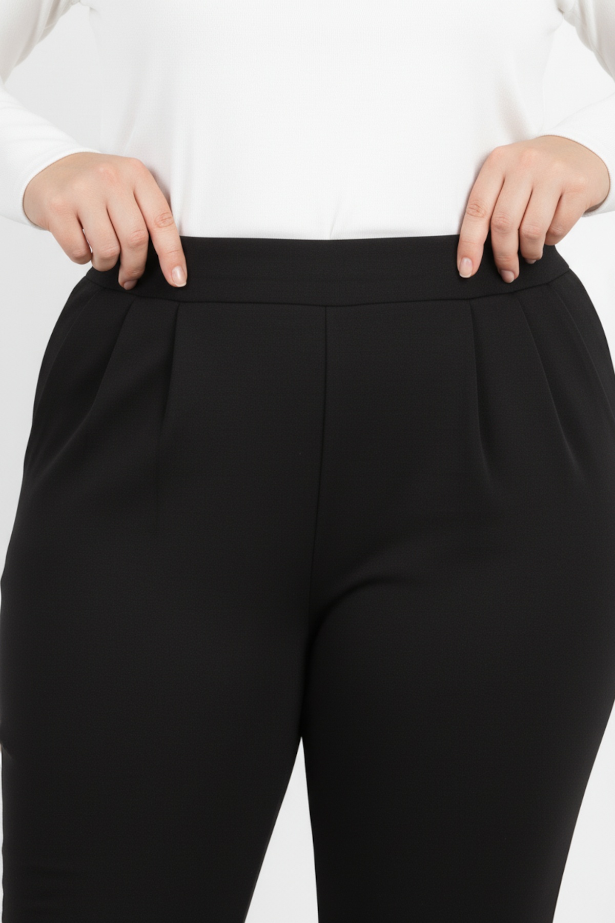 Büyük Beden Paça Fermuar Detay Pantolon Siyah