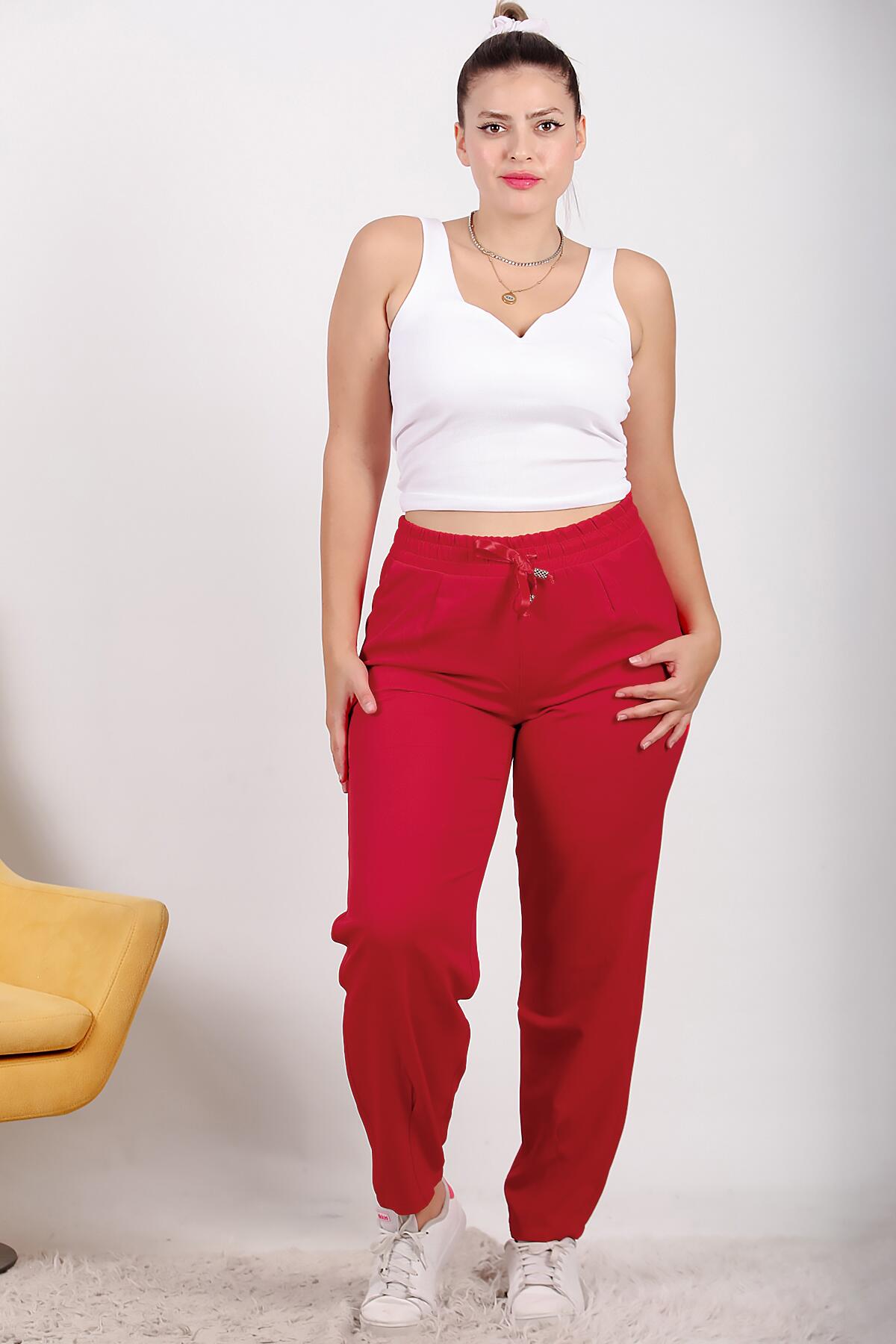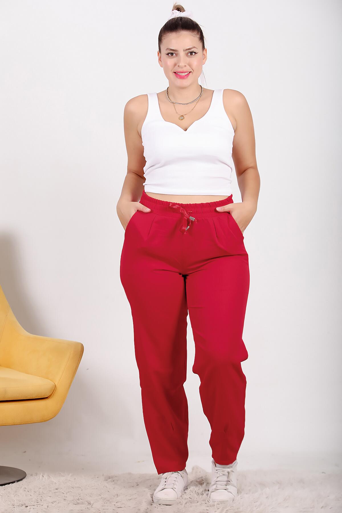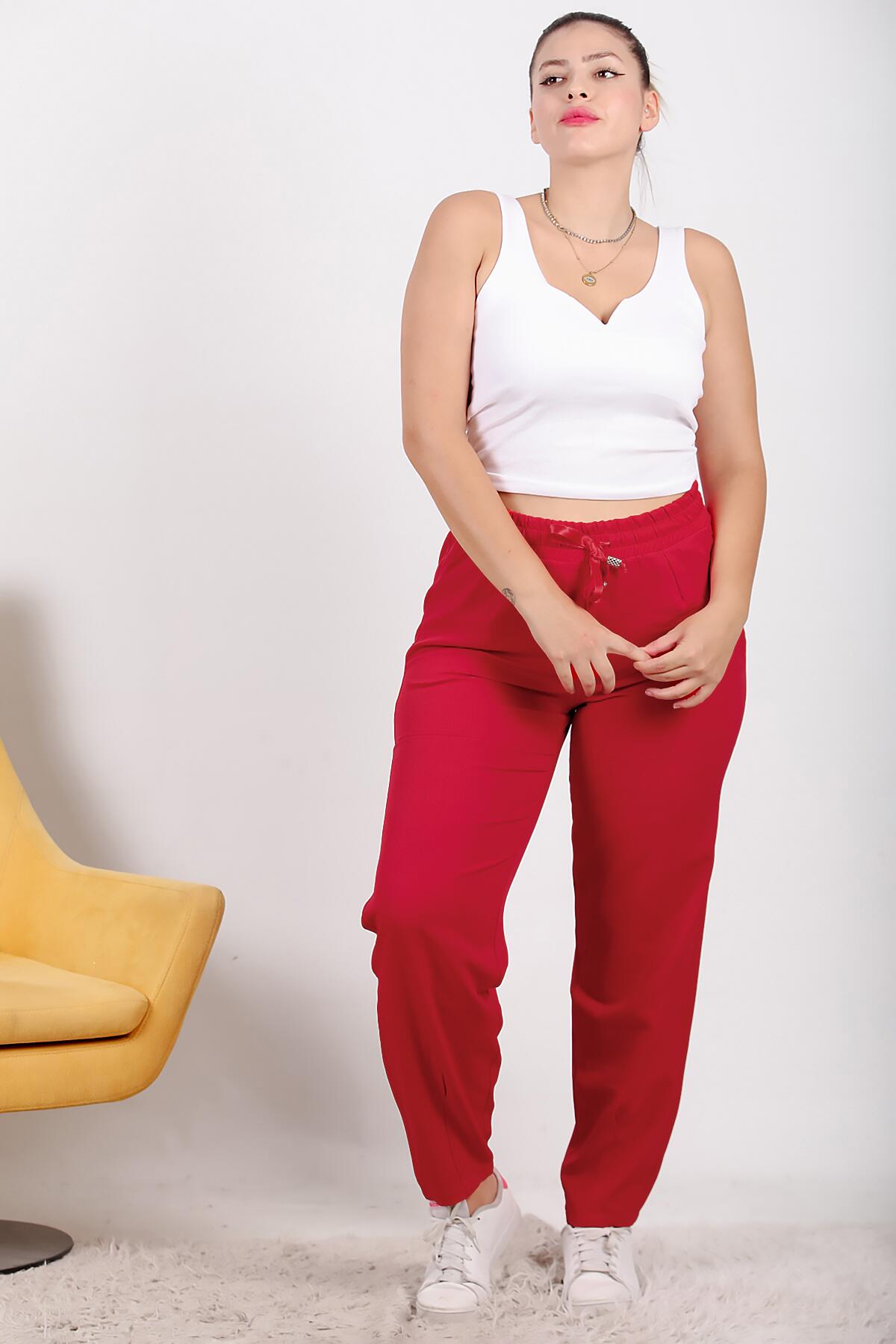 Büyük Beden Paça Pileli Pantolon Kırmızı