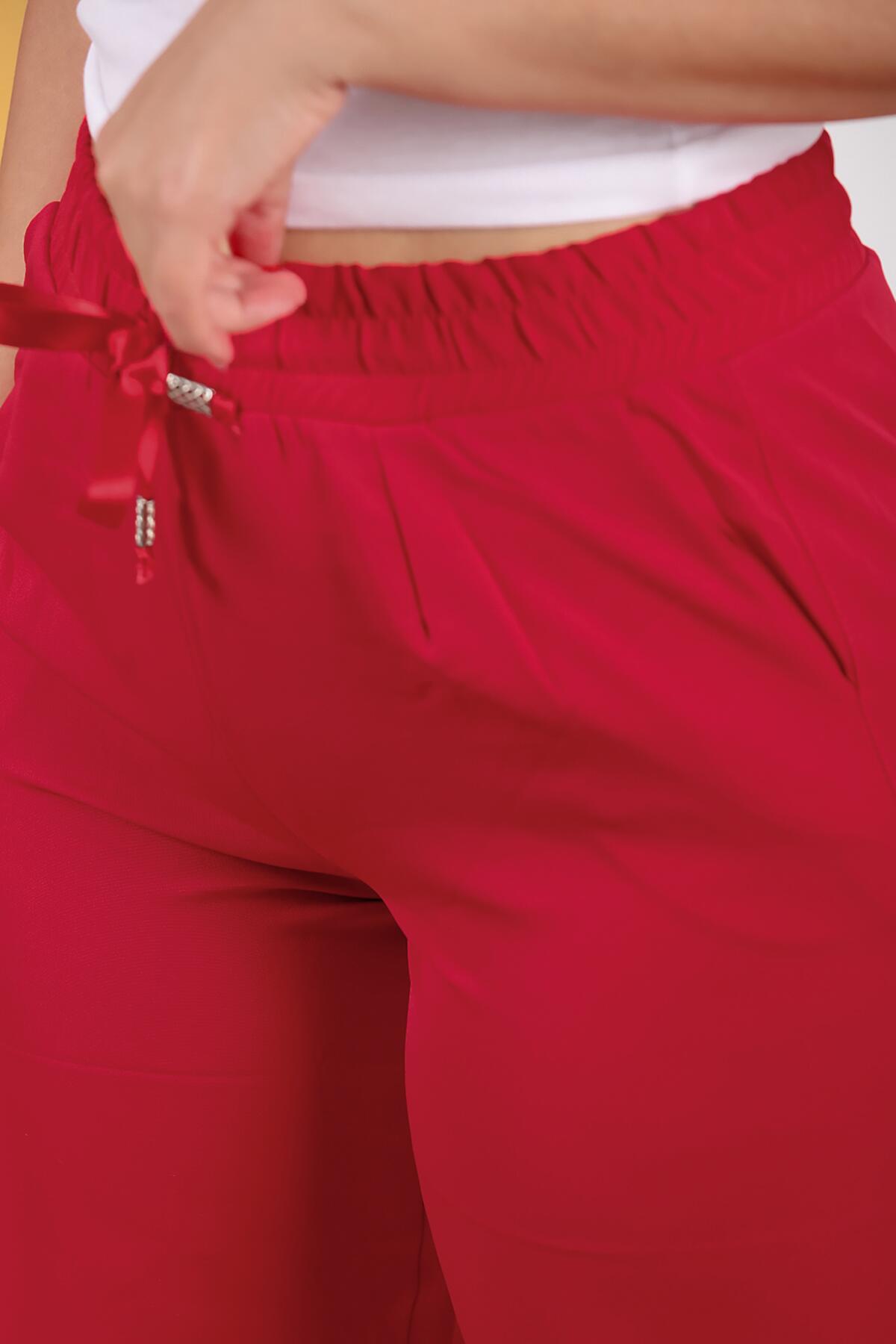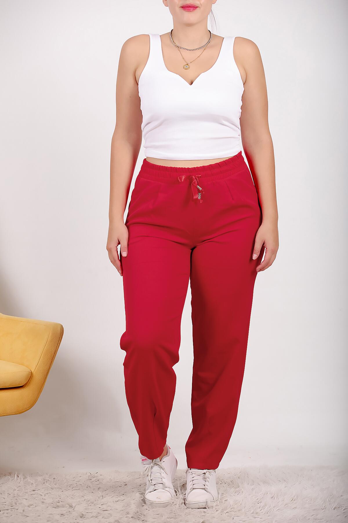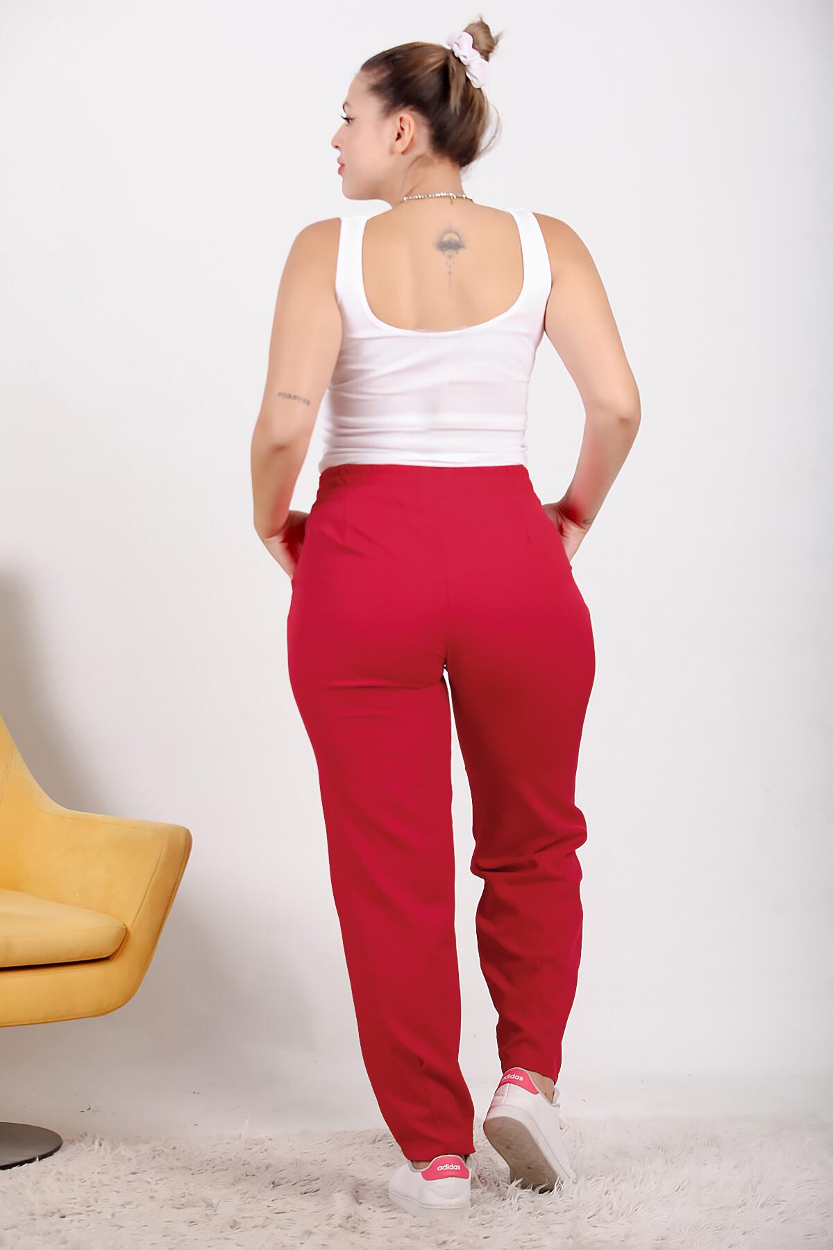 Büyük Beden Paça Pileli Pantolon Kırmızı