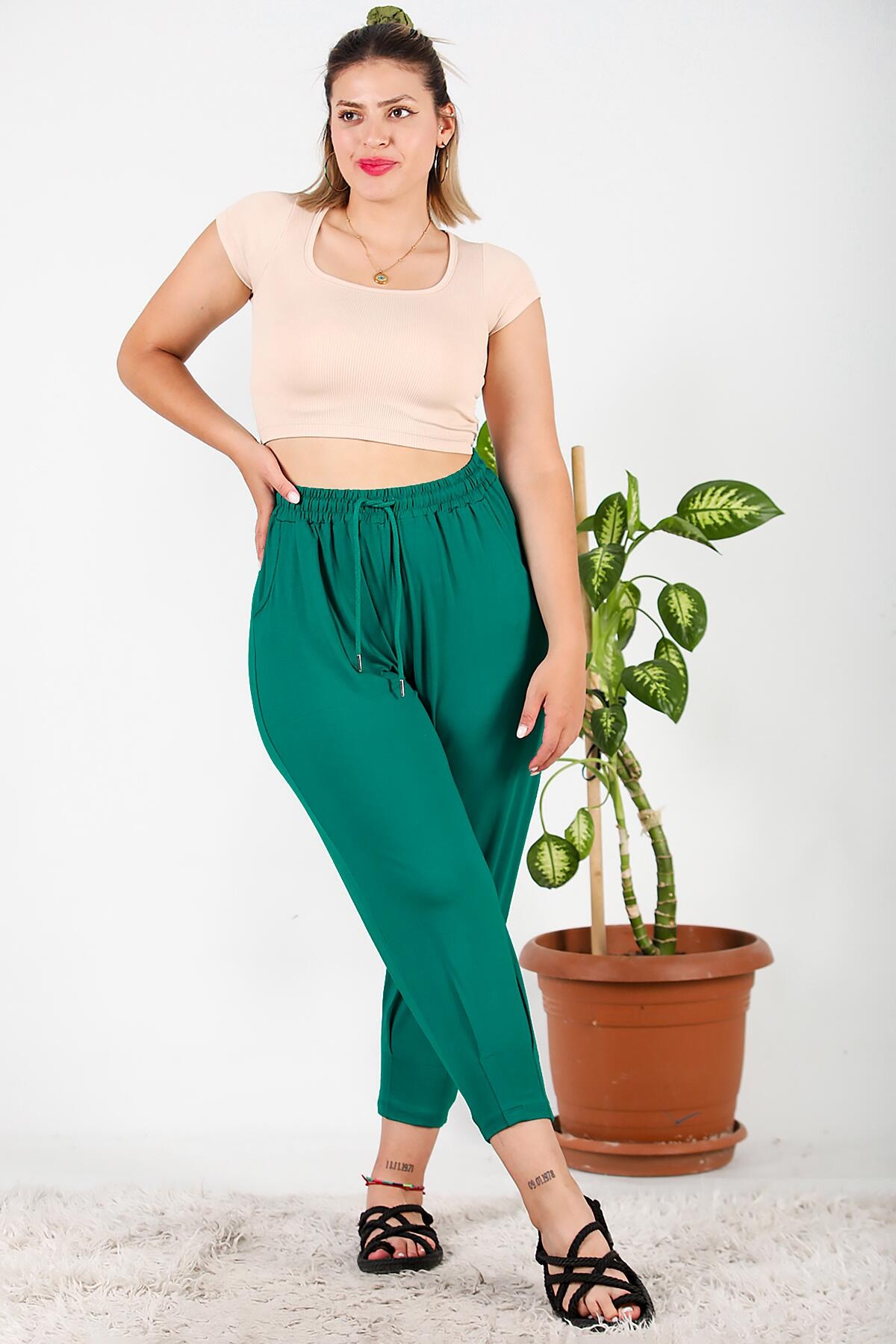 Numune Bedeni: 44 Numune Boyu: 85 cm Kumaş Tipi: %100 Pamuk Paça: Dikişli Bel: Lastikli ve Bağlamalı