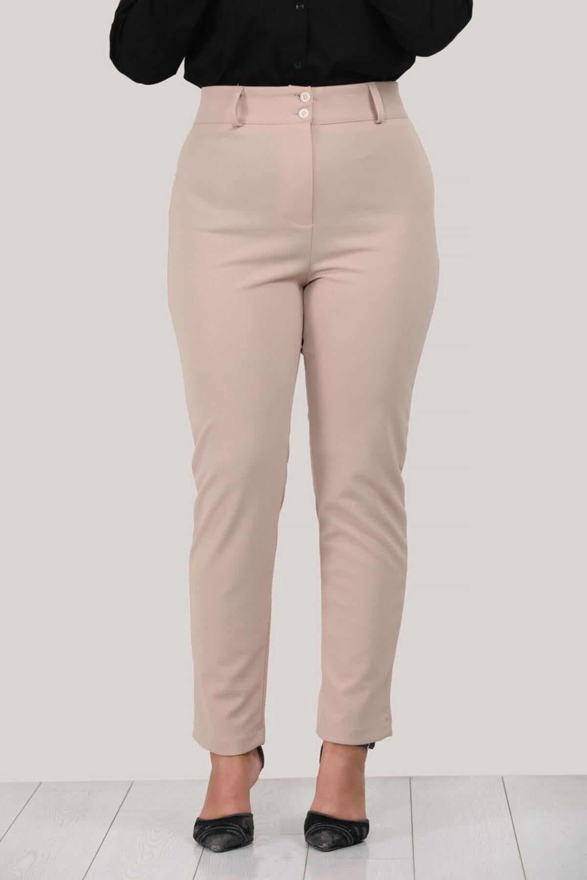 Büyük Beden Düğmeli Bol Paça Pantolon