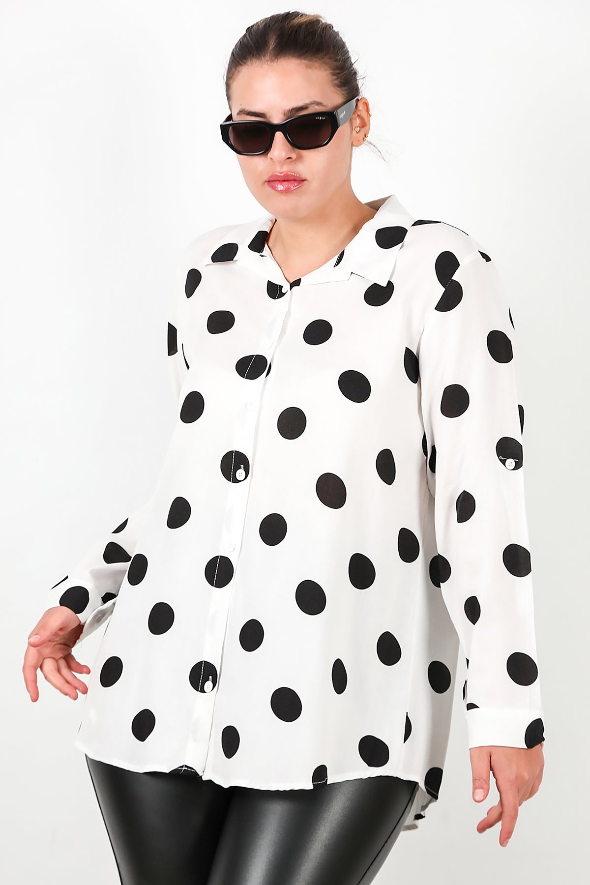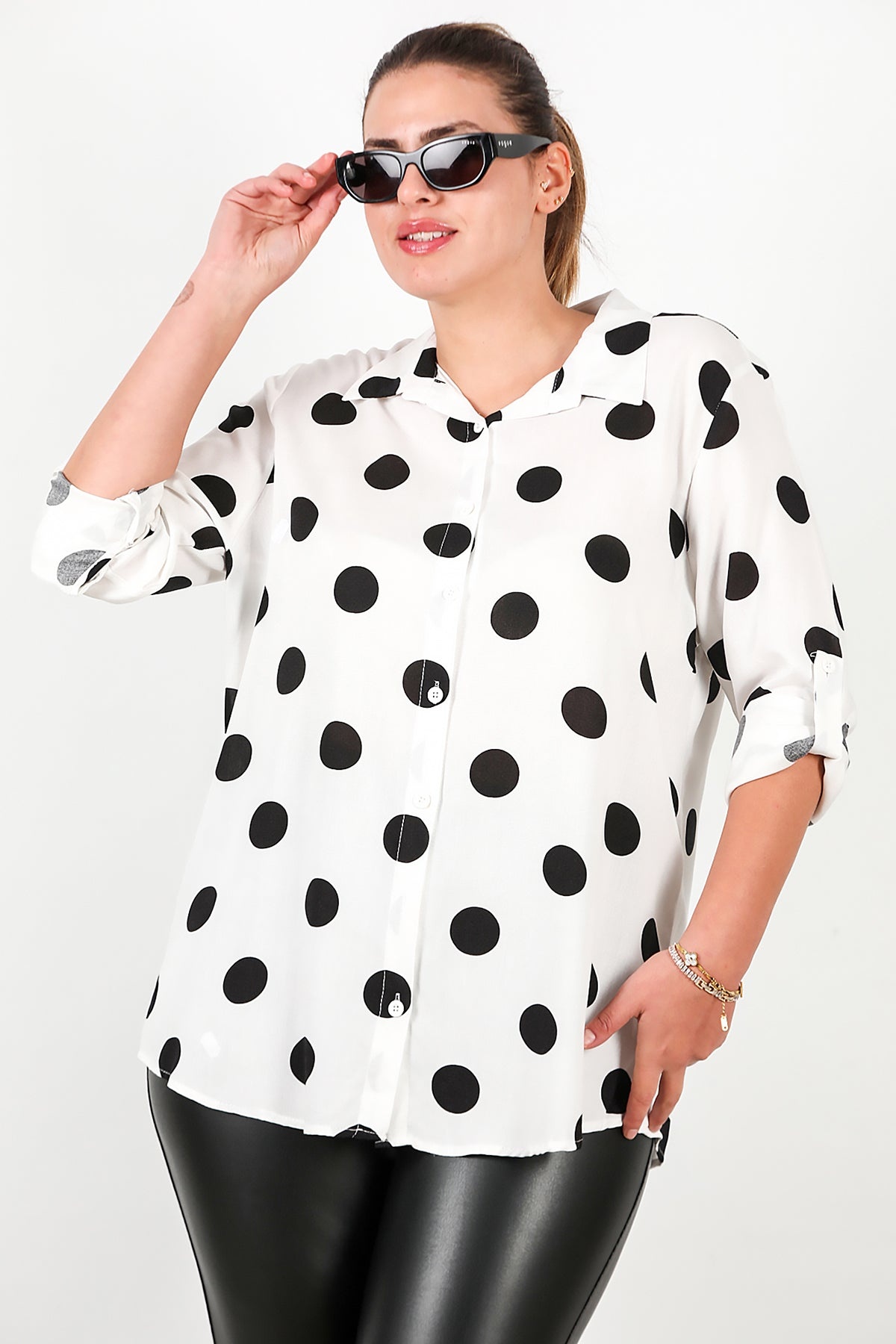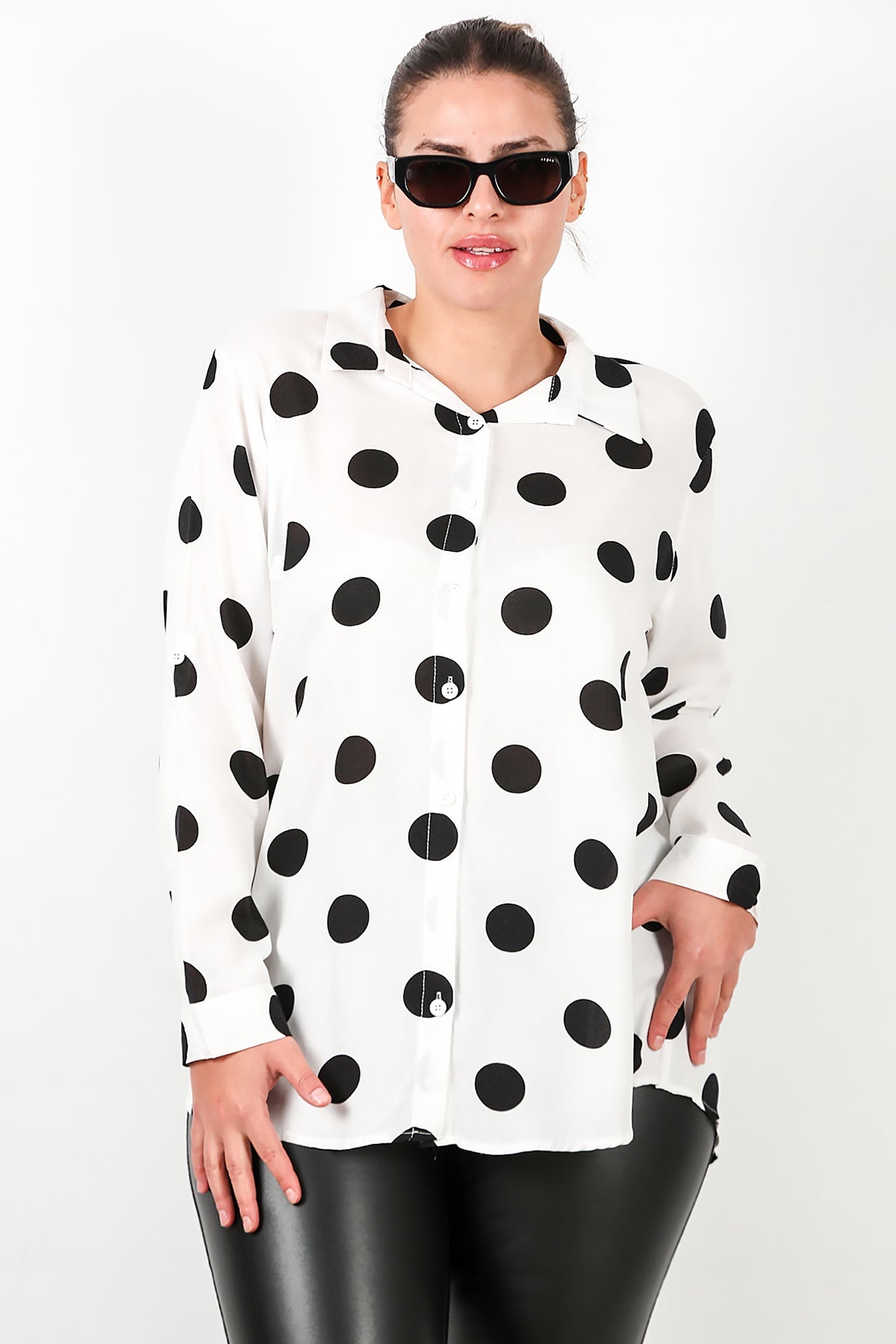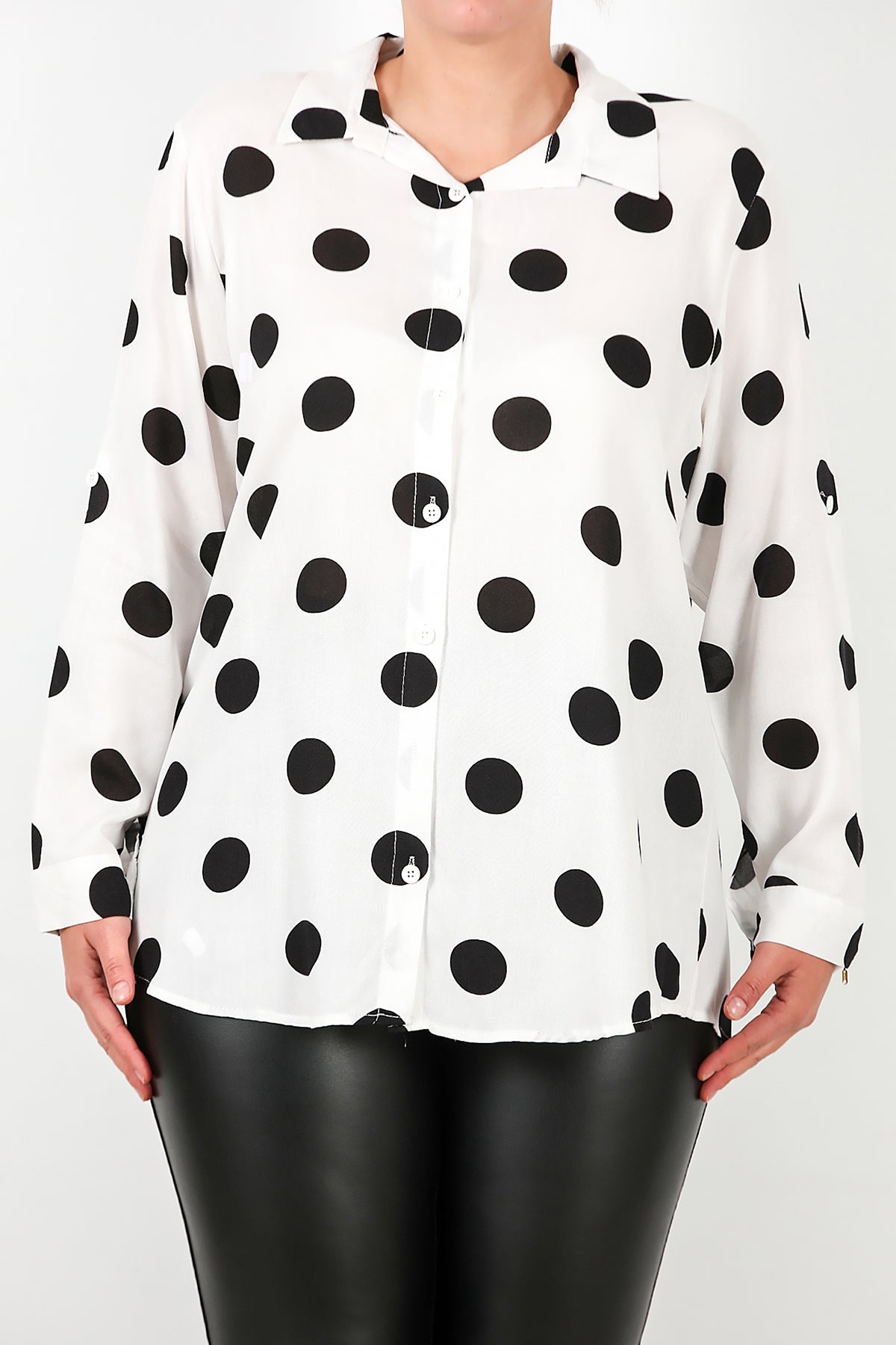Büyük Beden Puantiyeli Viskon Gömlek Beyaz