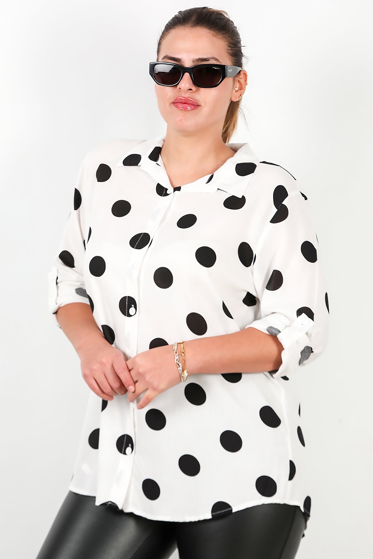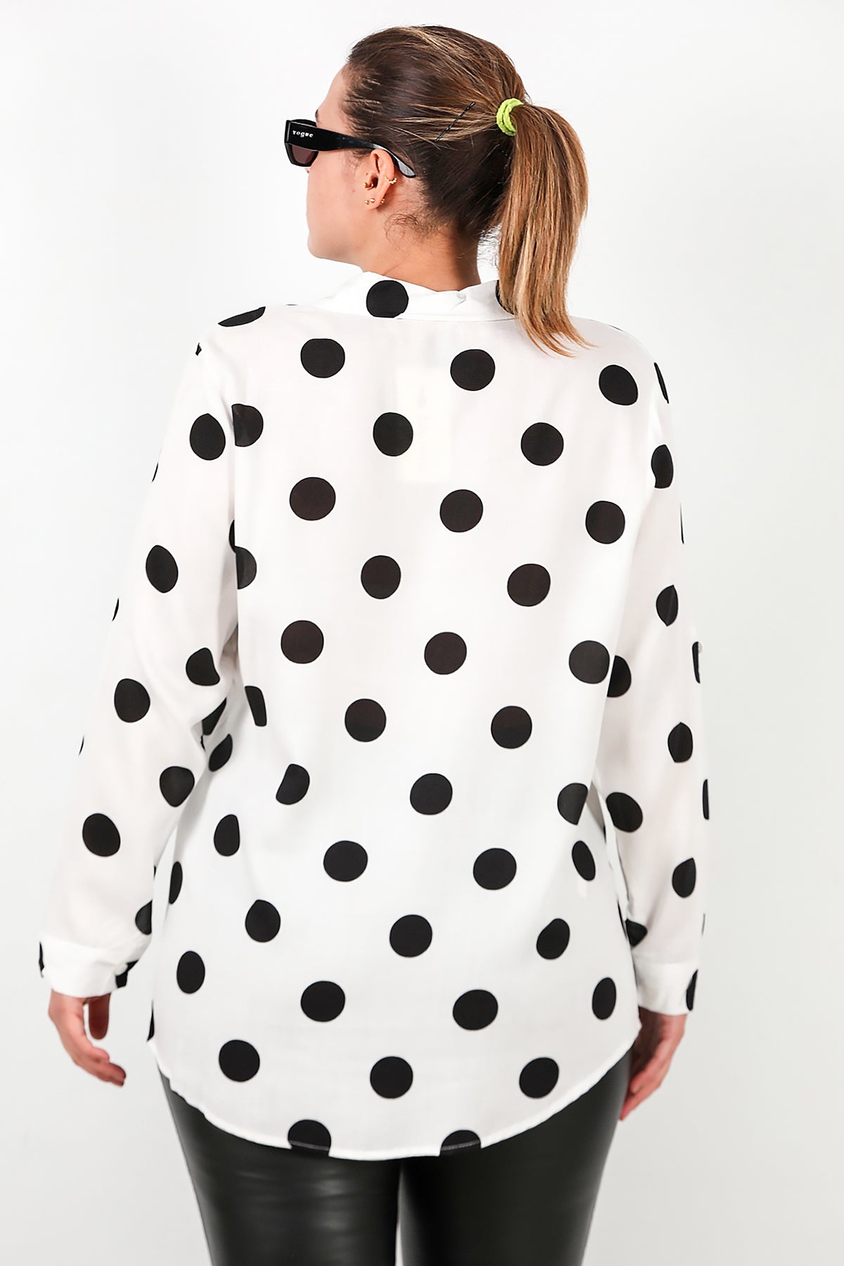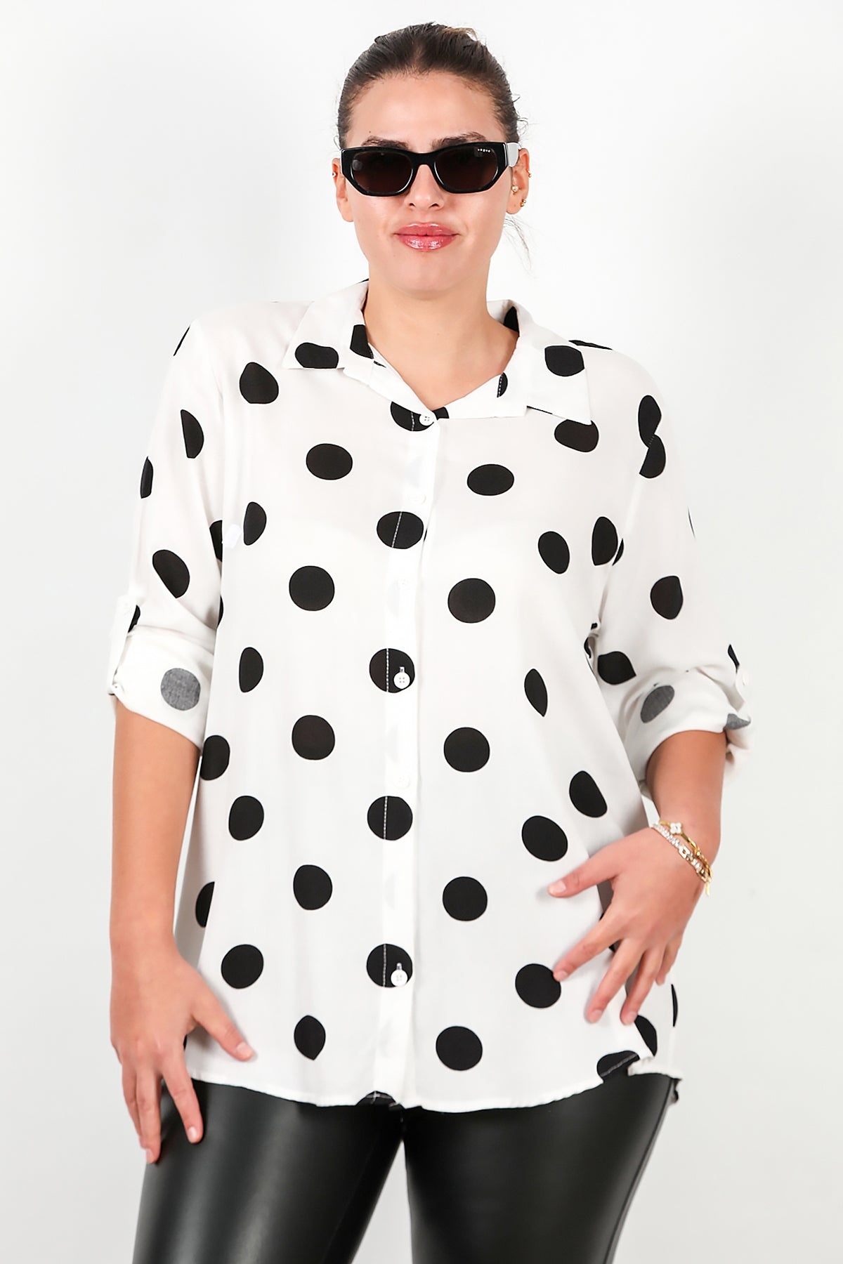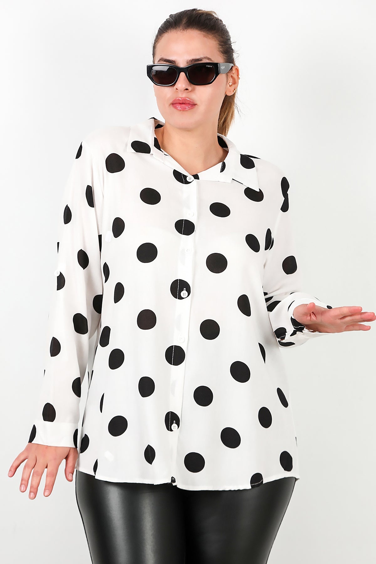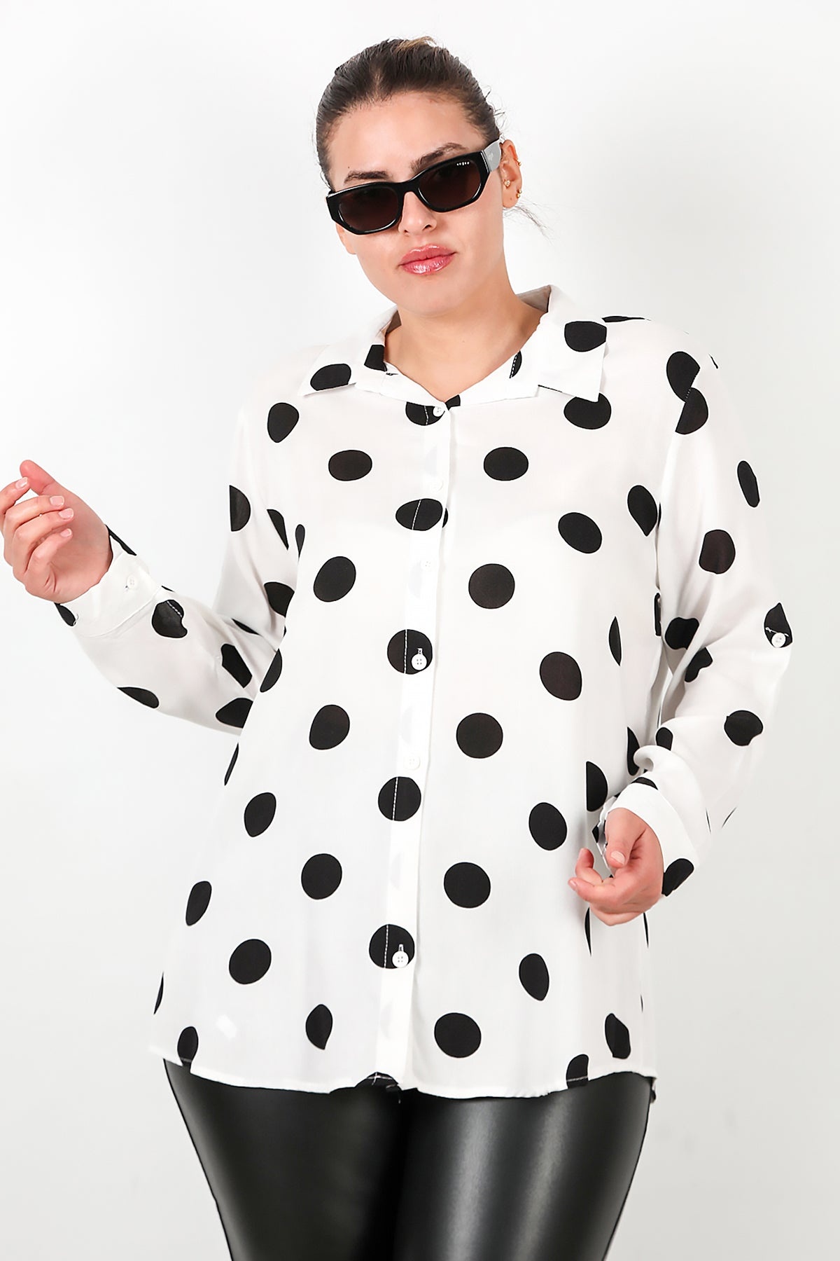 Büyük Beden Puantiyeli Viskon Gömlek Beyaz