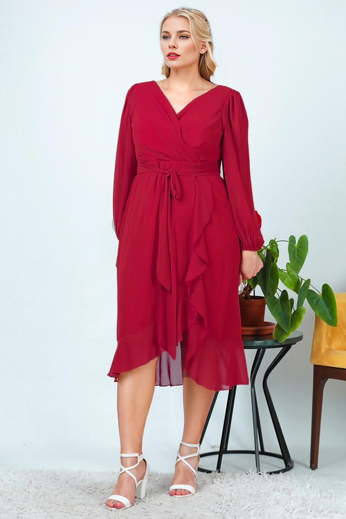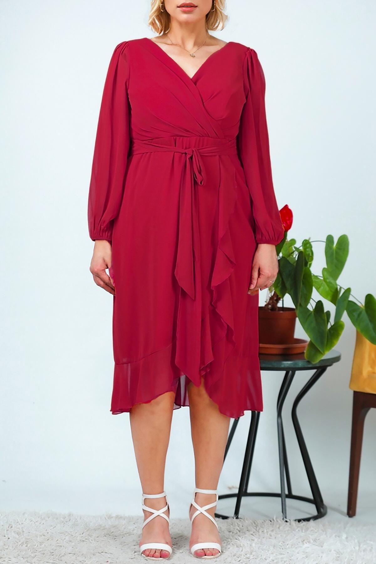 Büyük Beden Şifon Abiye Elbise Kırmızı