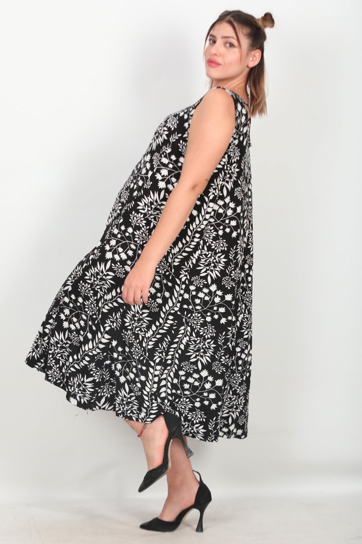 Büyük Beden Sırtı Çapraz Elbise Siyah