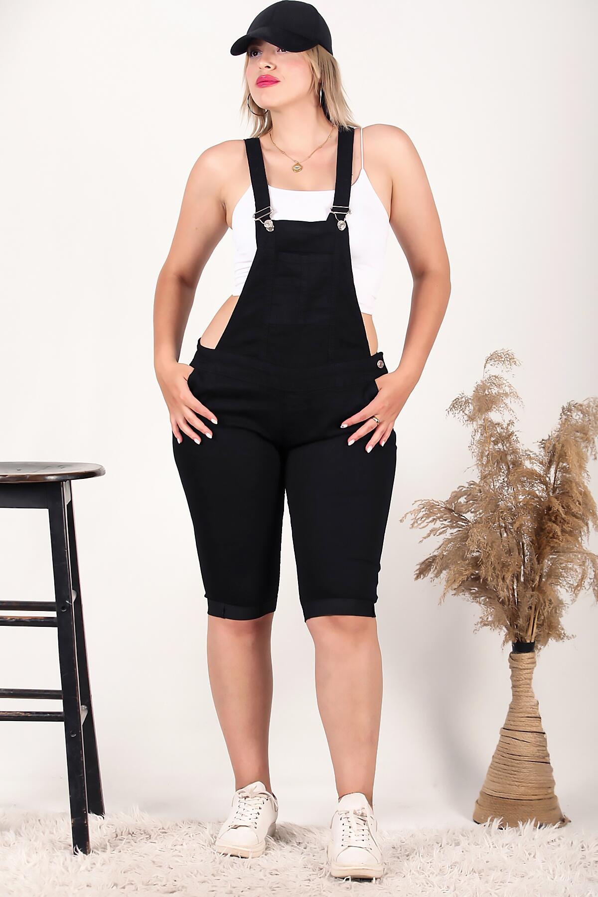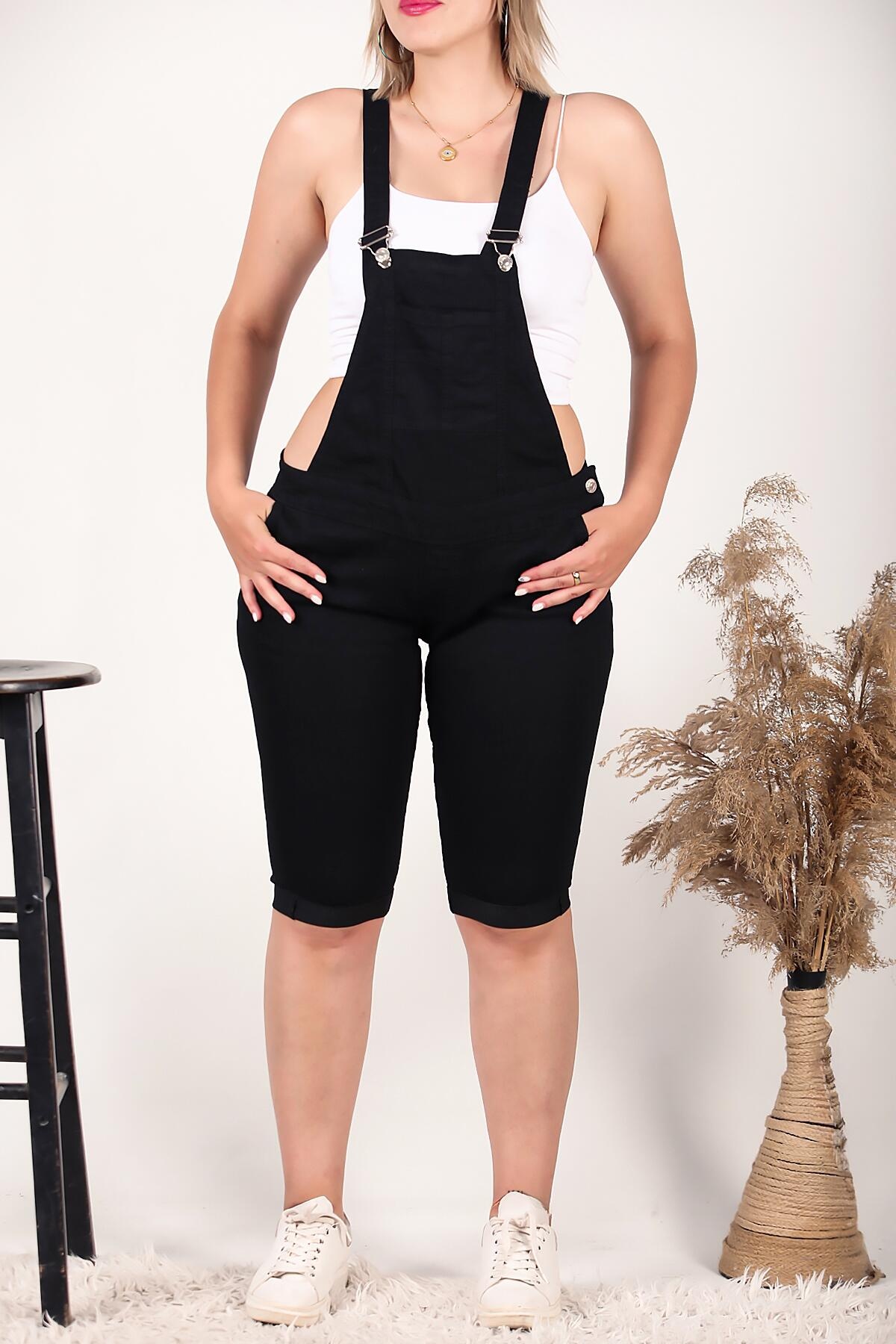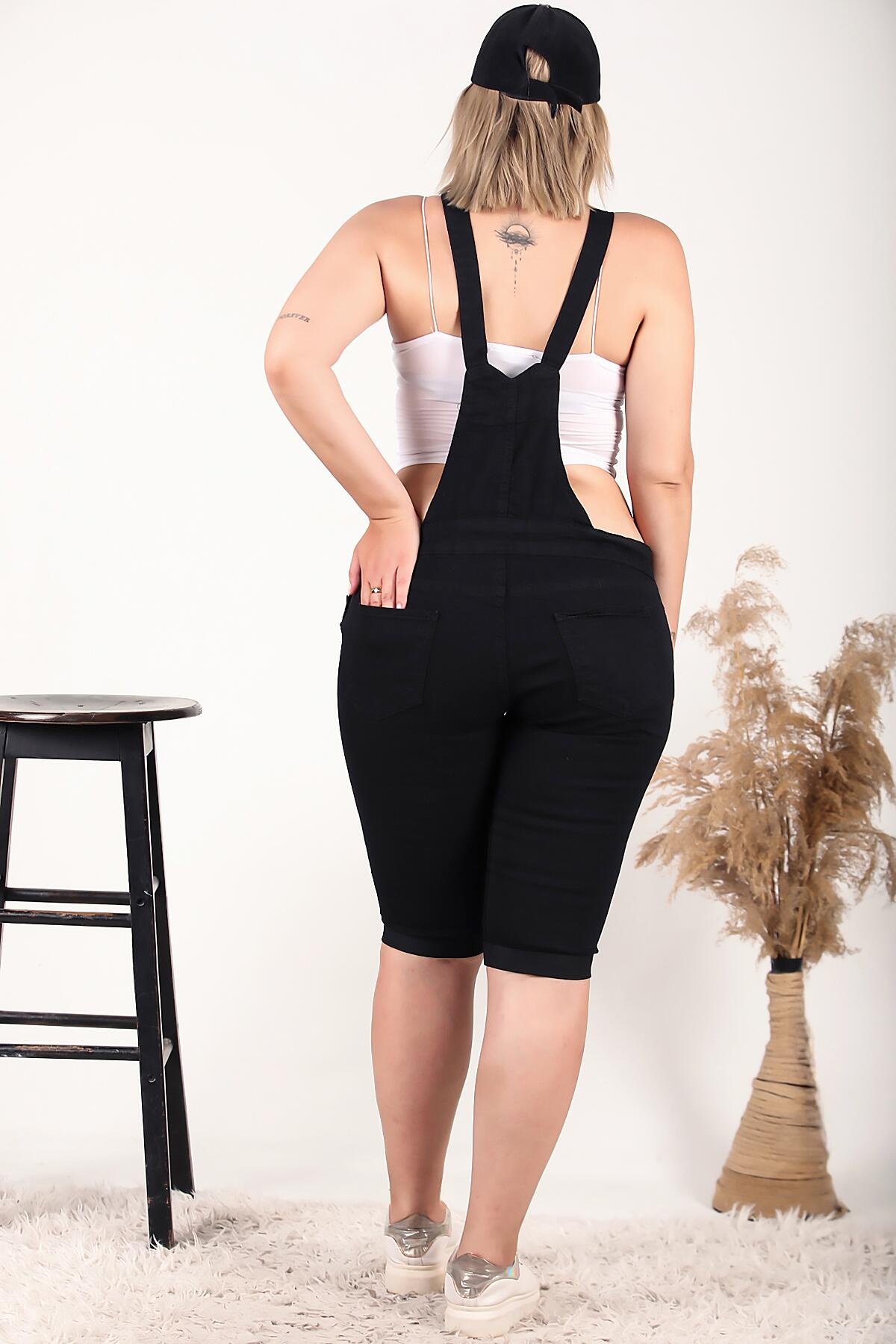 Büyük Beden Şort Tulum Siyah