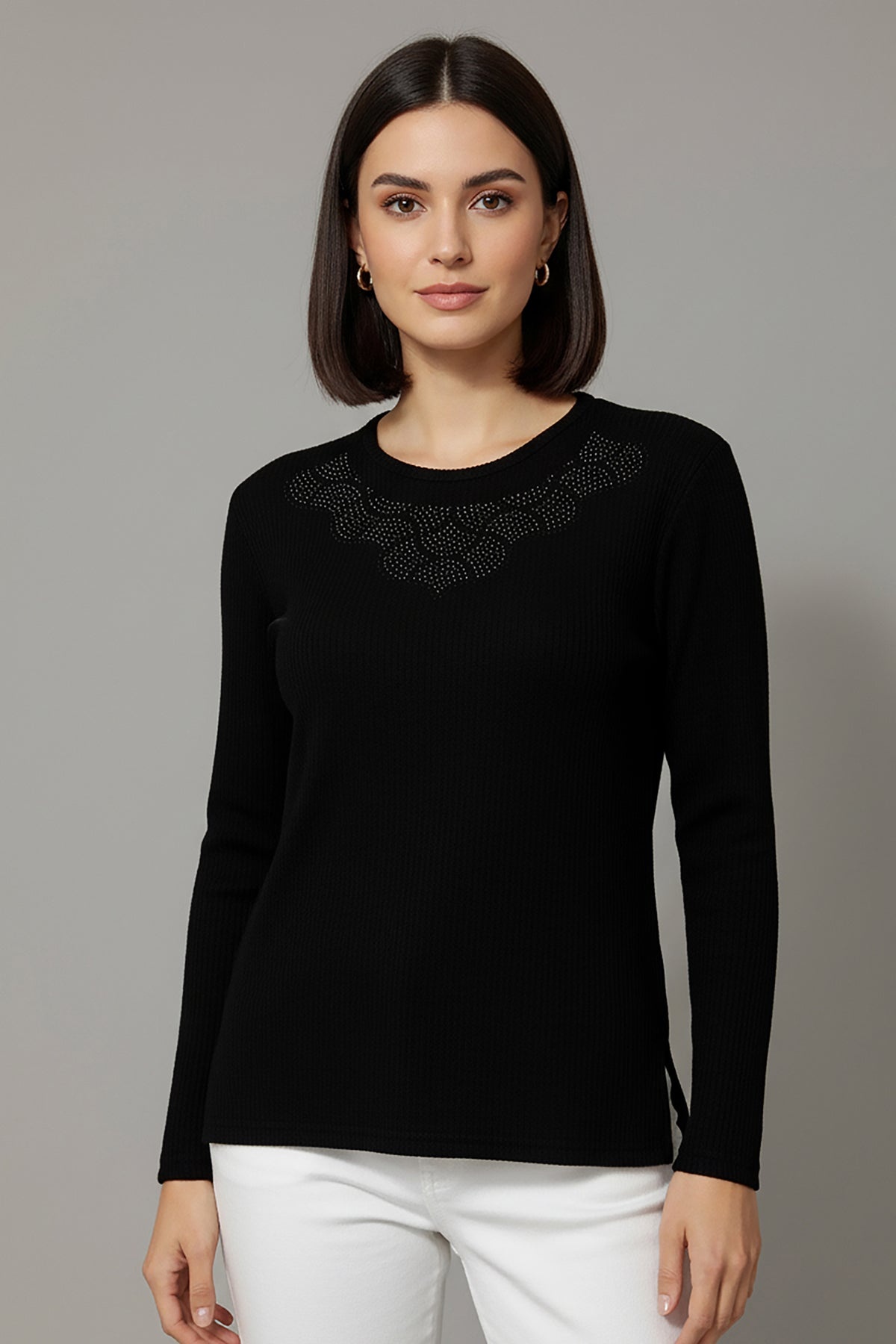 Büyük Beden Taş İşlemeli Bluz Siyah