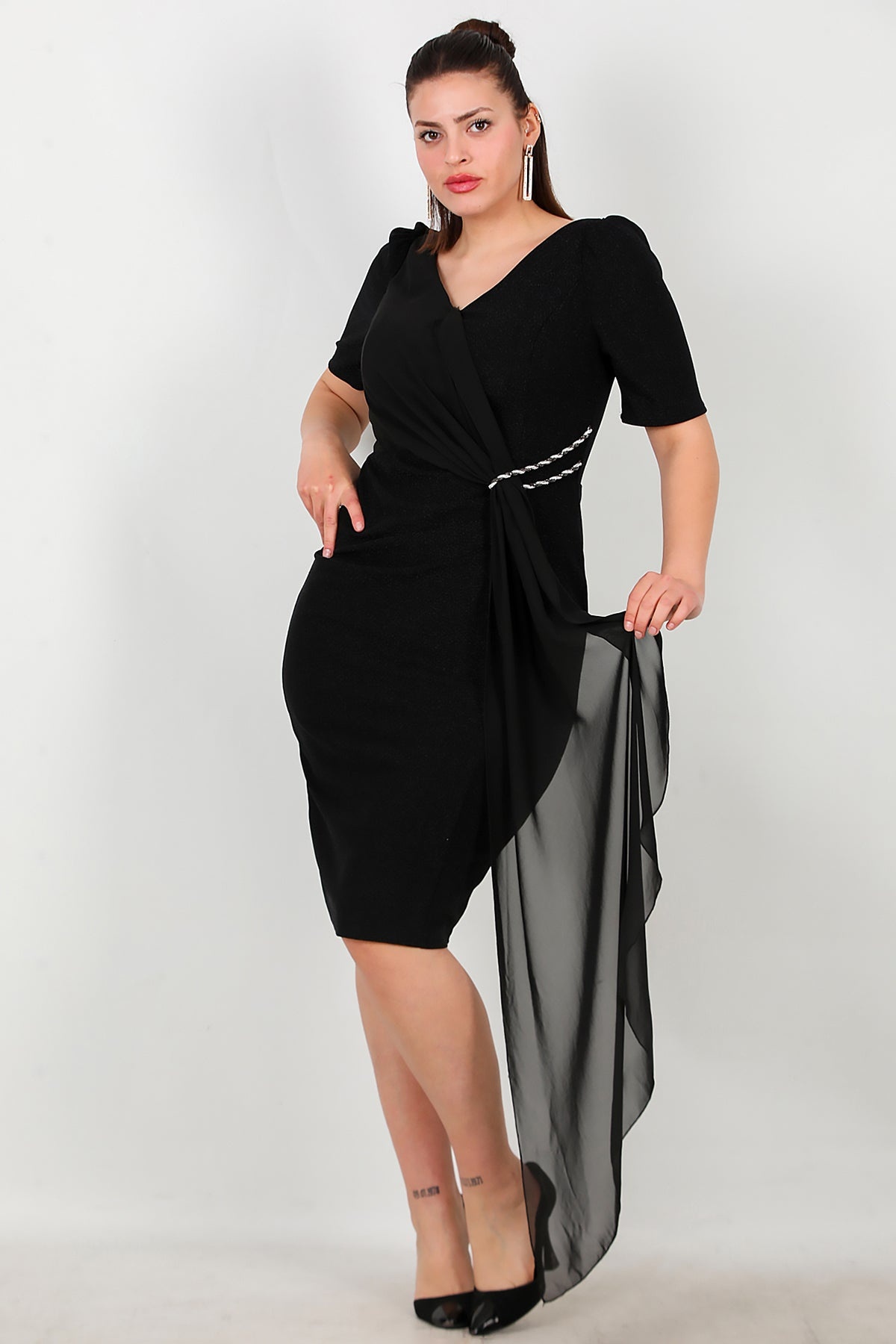 MODEL BİLGİLERİ Boy: 175 cm Göğüs:94 cm Bel: 75 cm Kalça: 112 cm