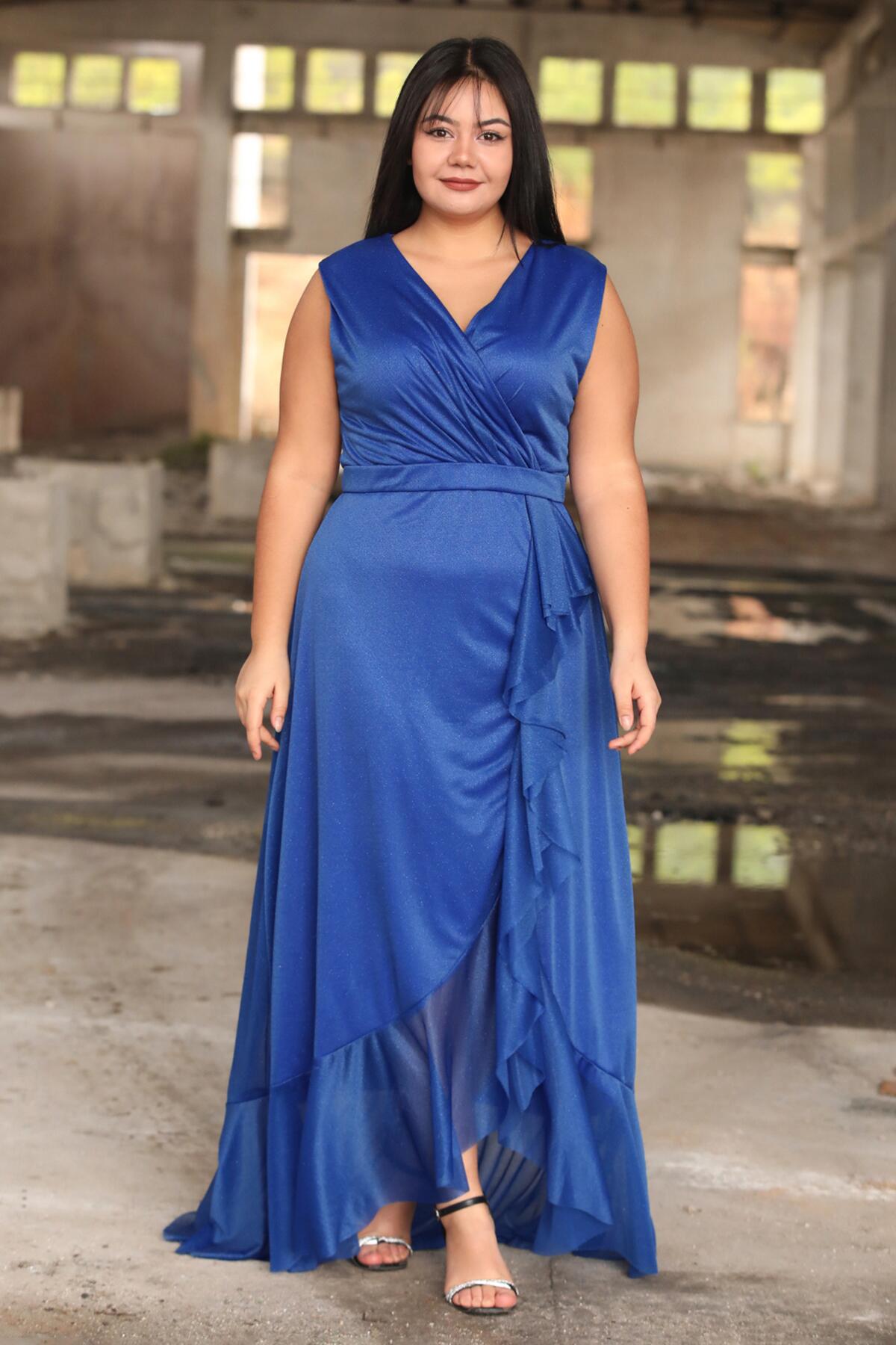Büyük Beden Uzun Abiye Saks