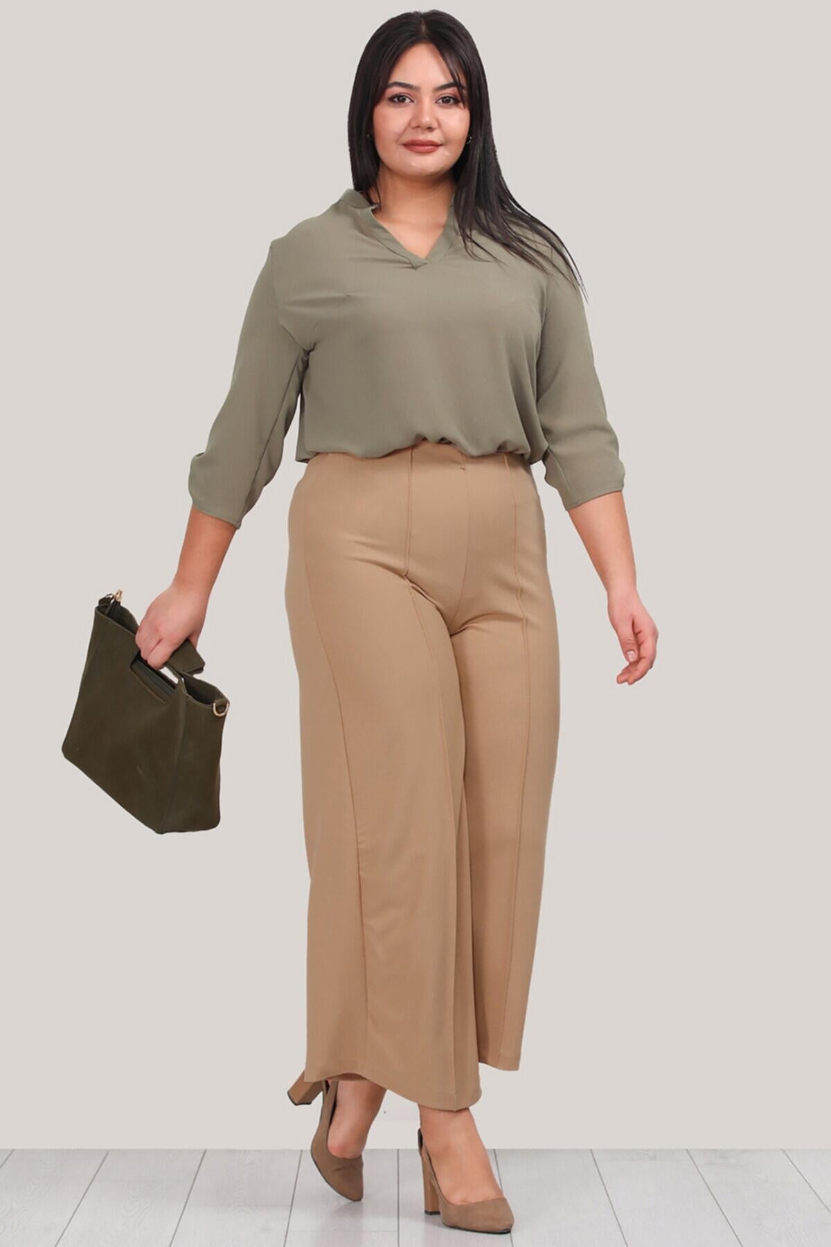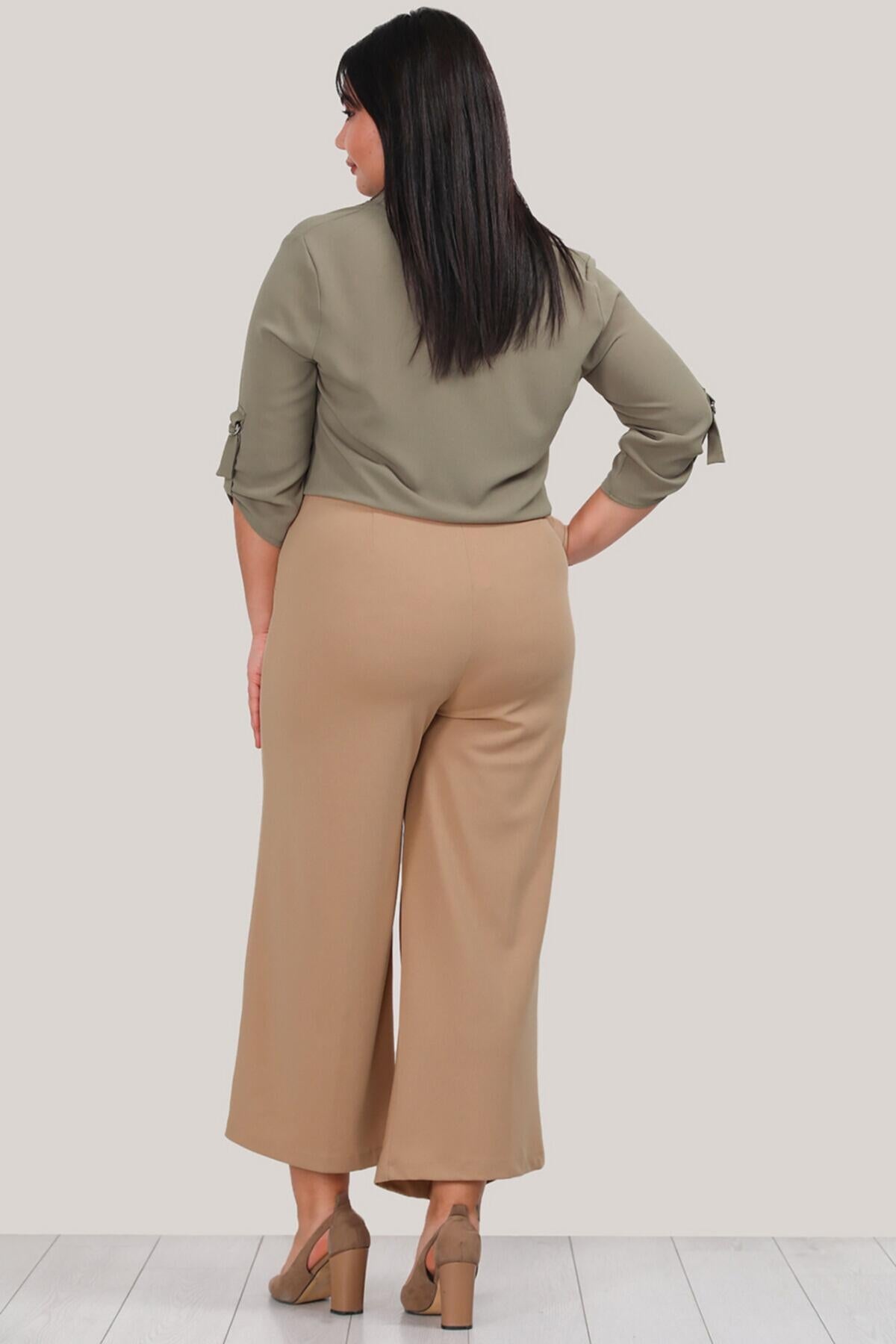 Büyük Beden Çıt Çıt Düğmeli Önden Cepli Gömlek Bej