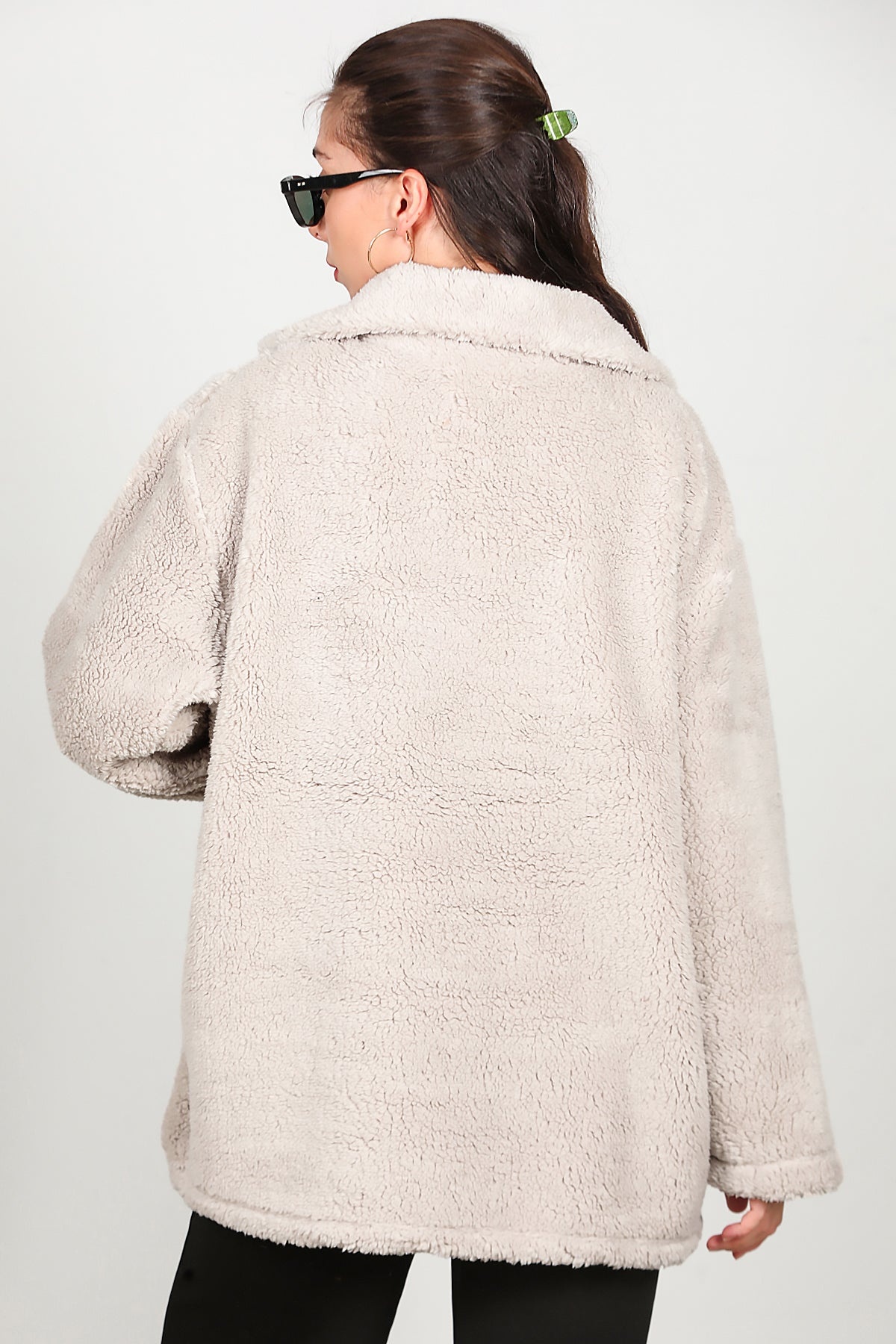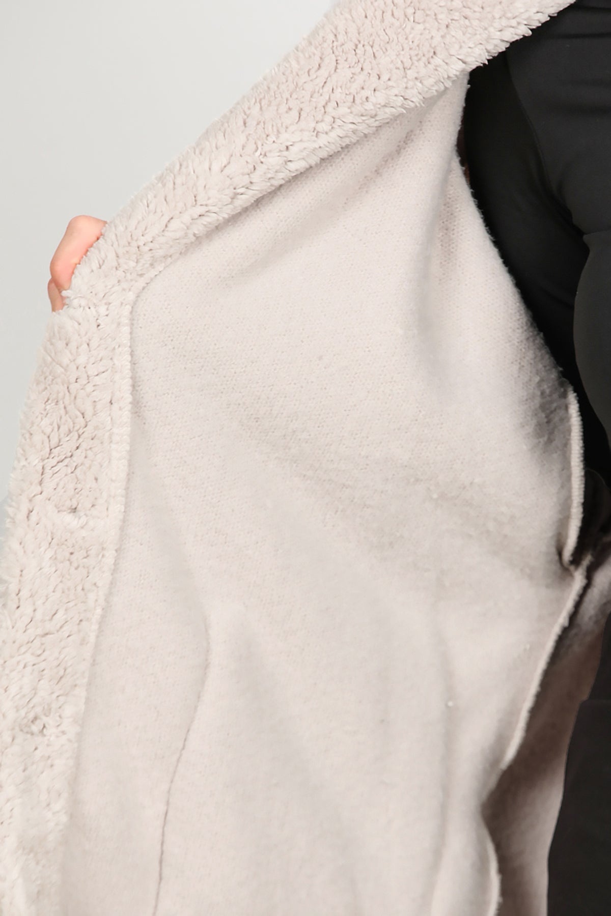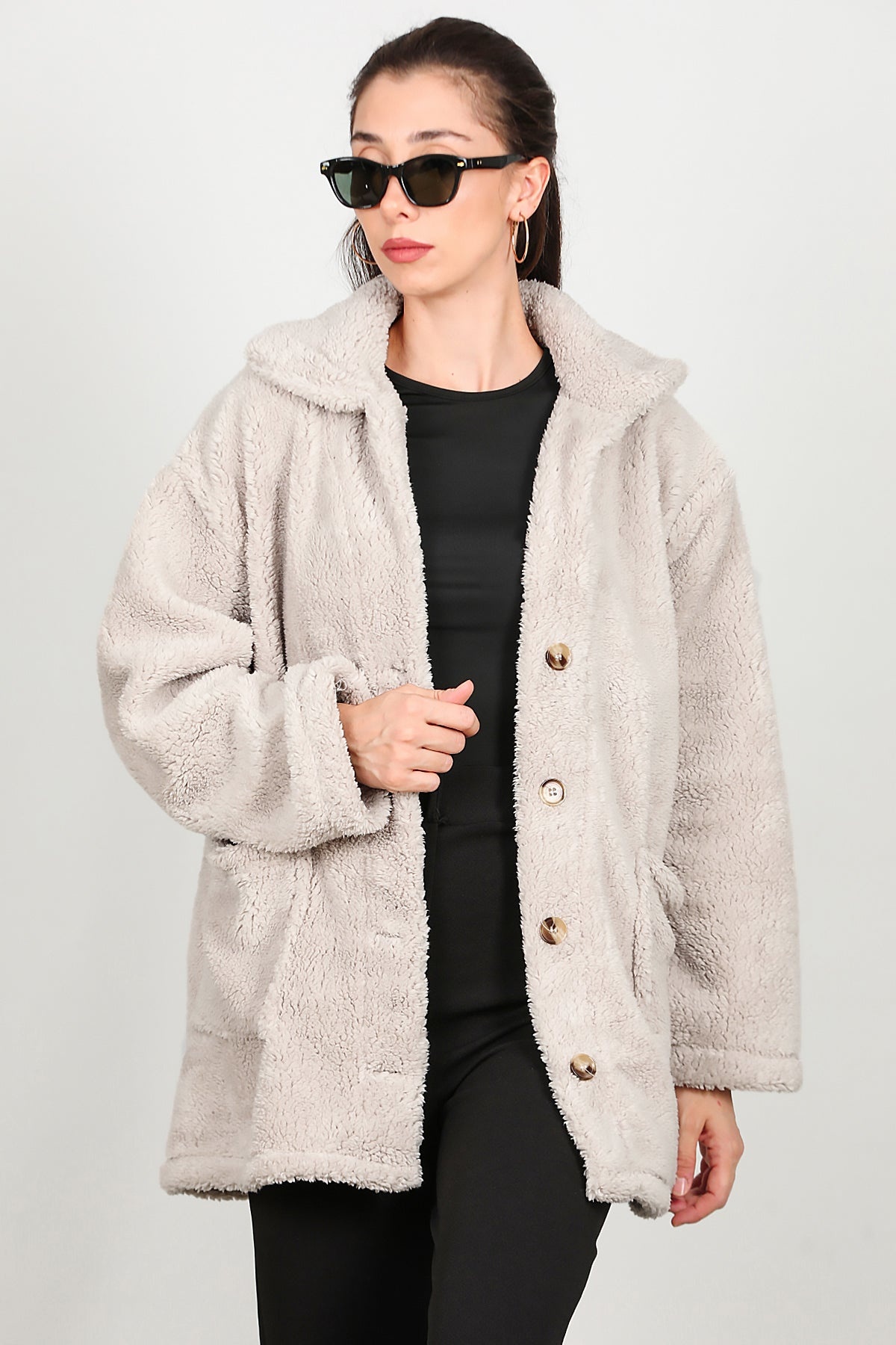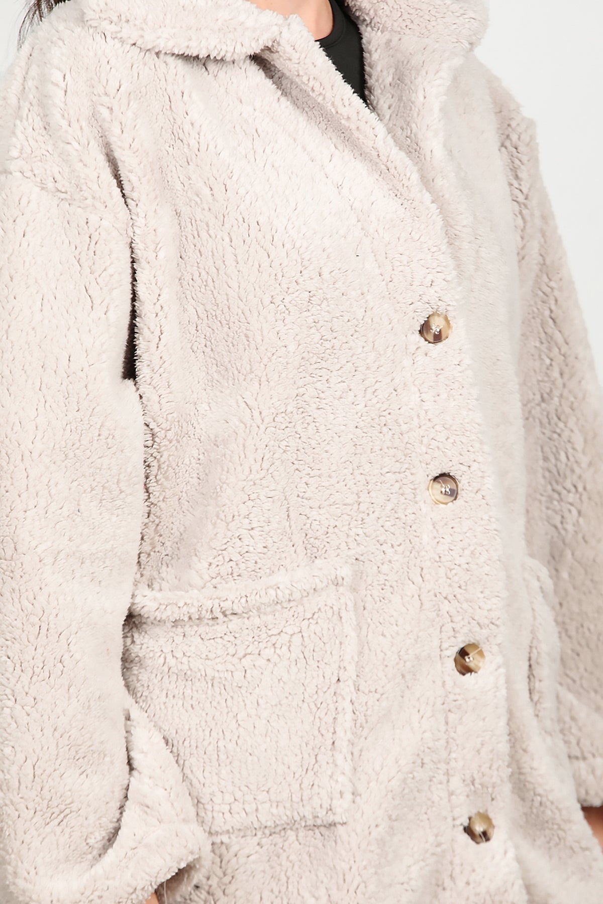 Kadın Önü Düğmeli Peluş Ceket Taş