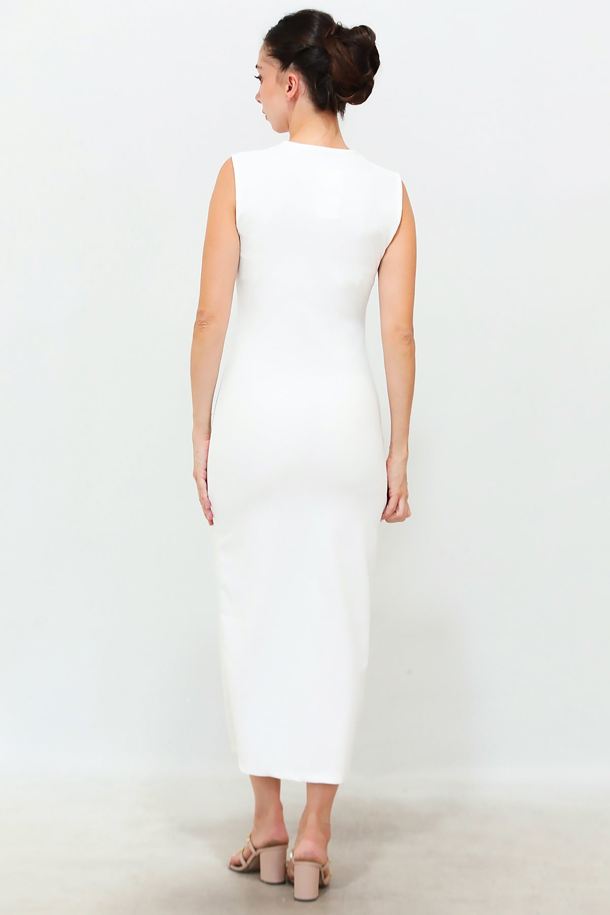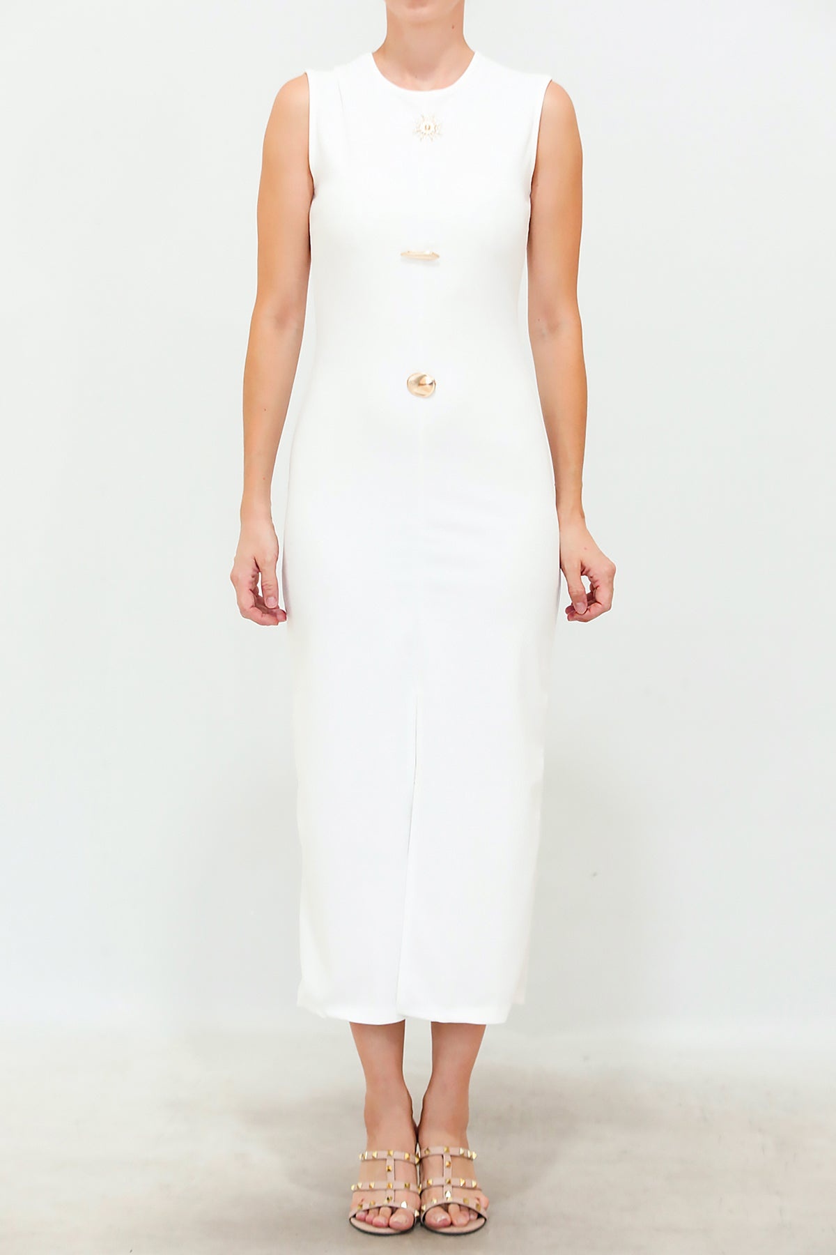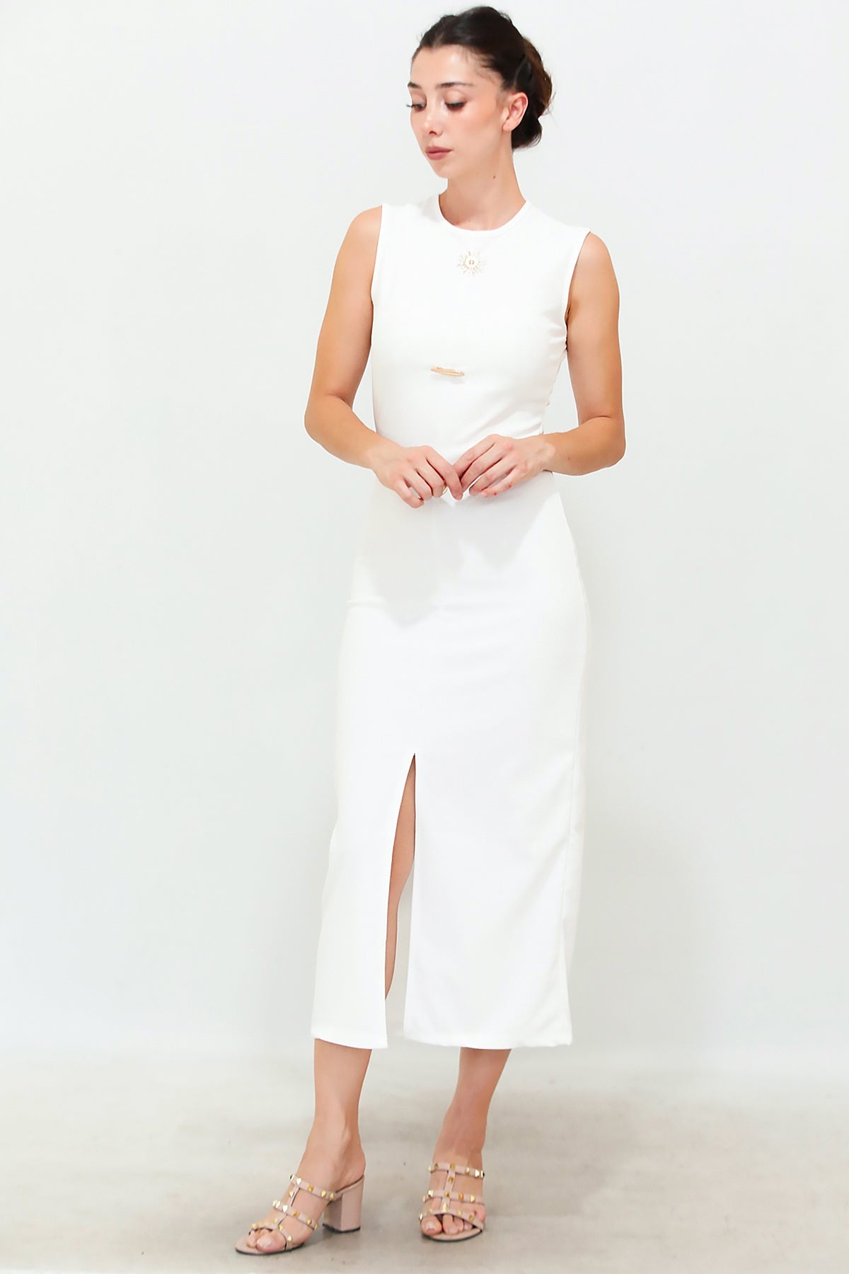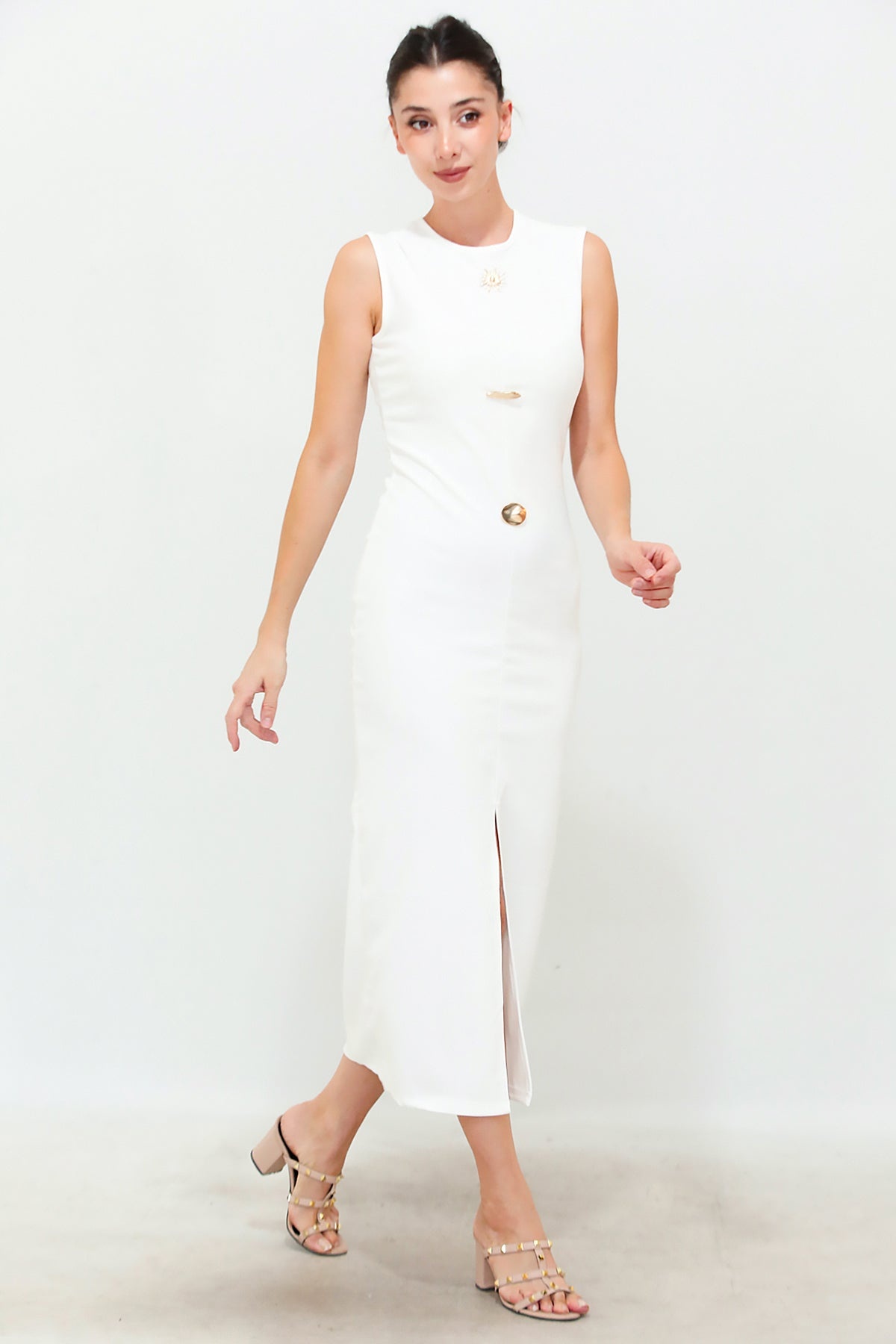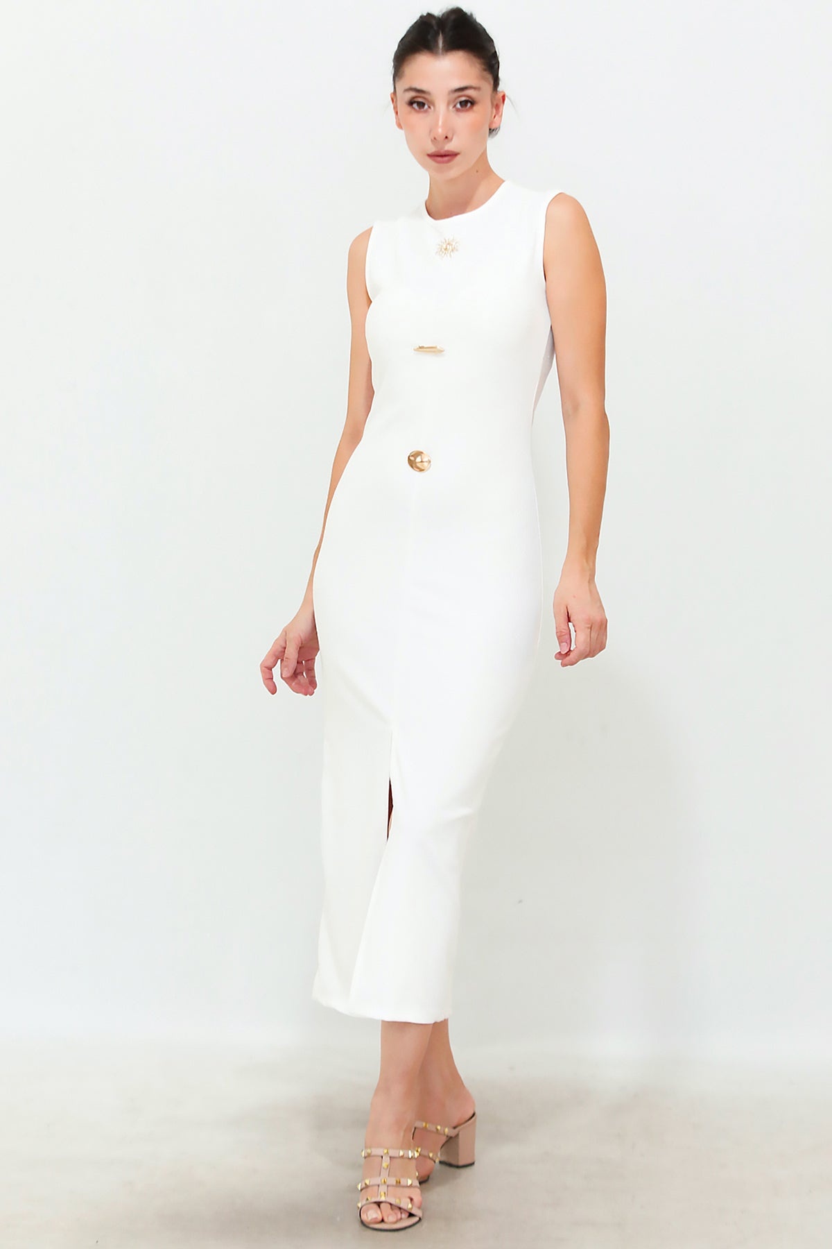 Kadın Gold Düğmeli Ottoman Elbise Ekru