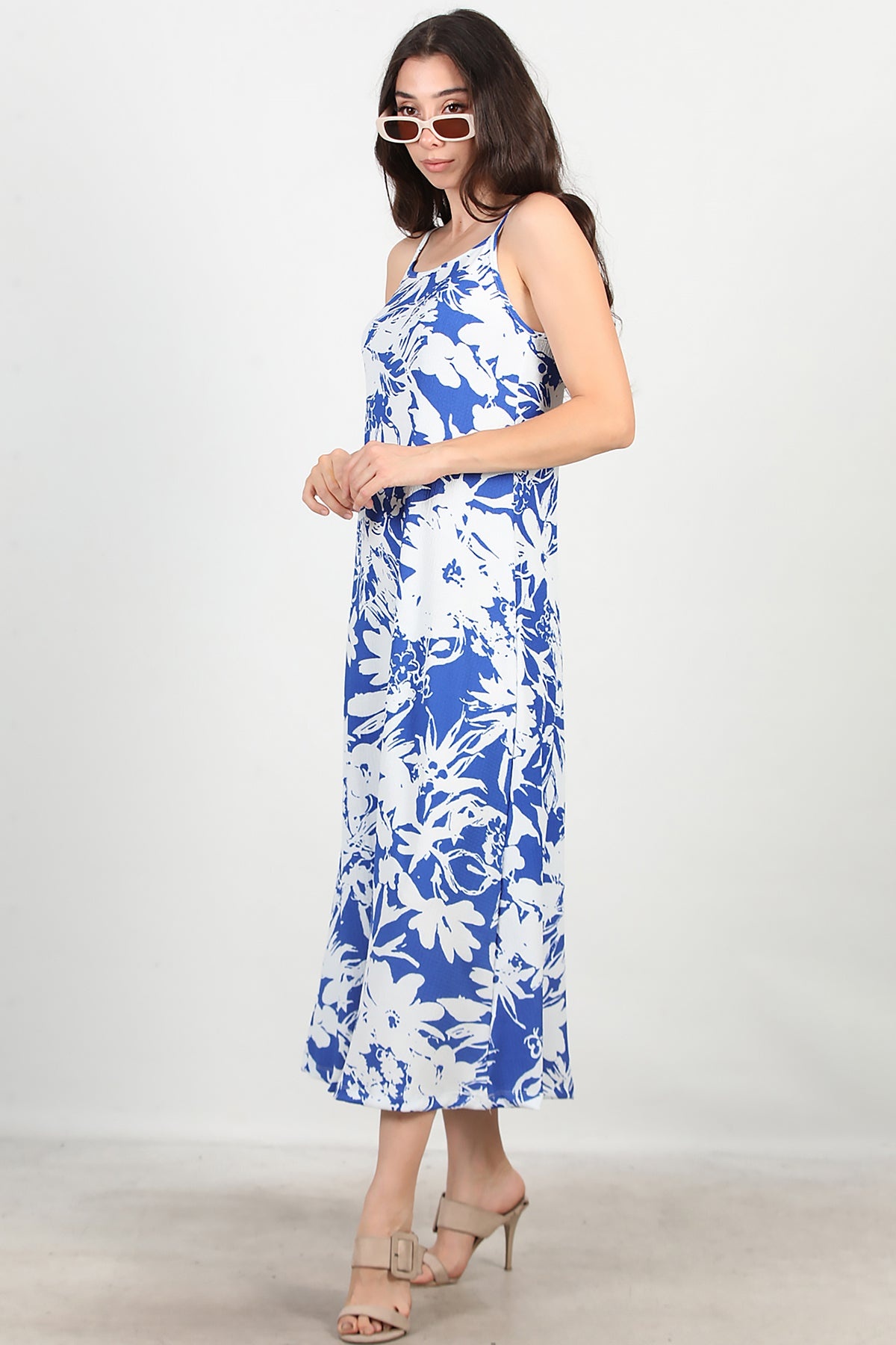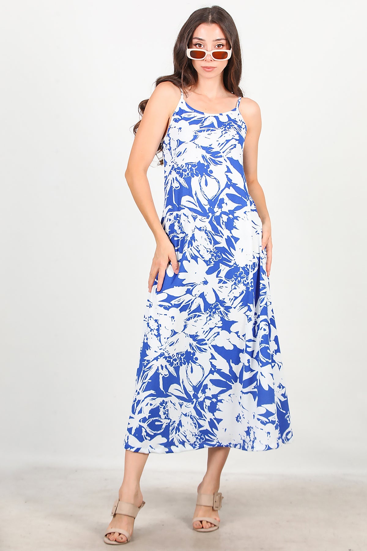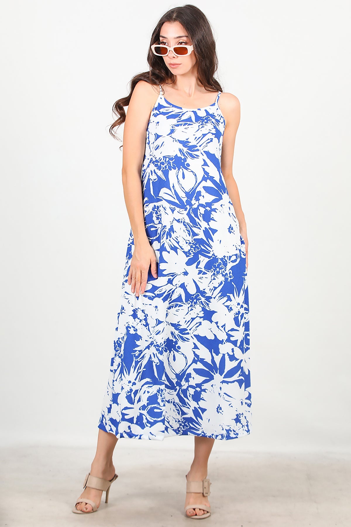 Kadın İp Askılı Desenli Uzun Elbise Çok Renkli