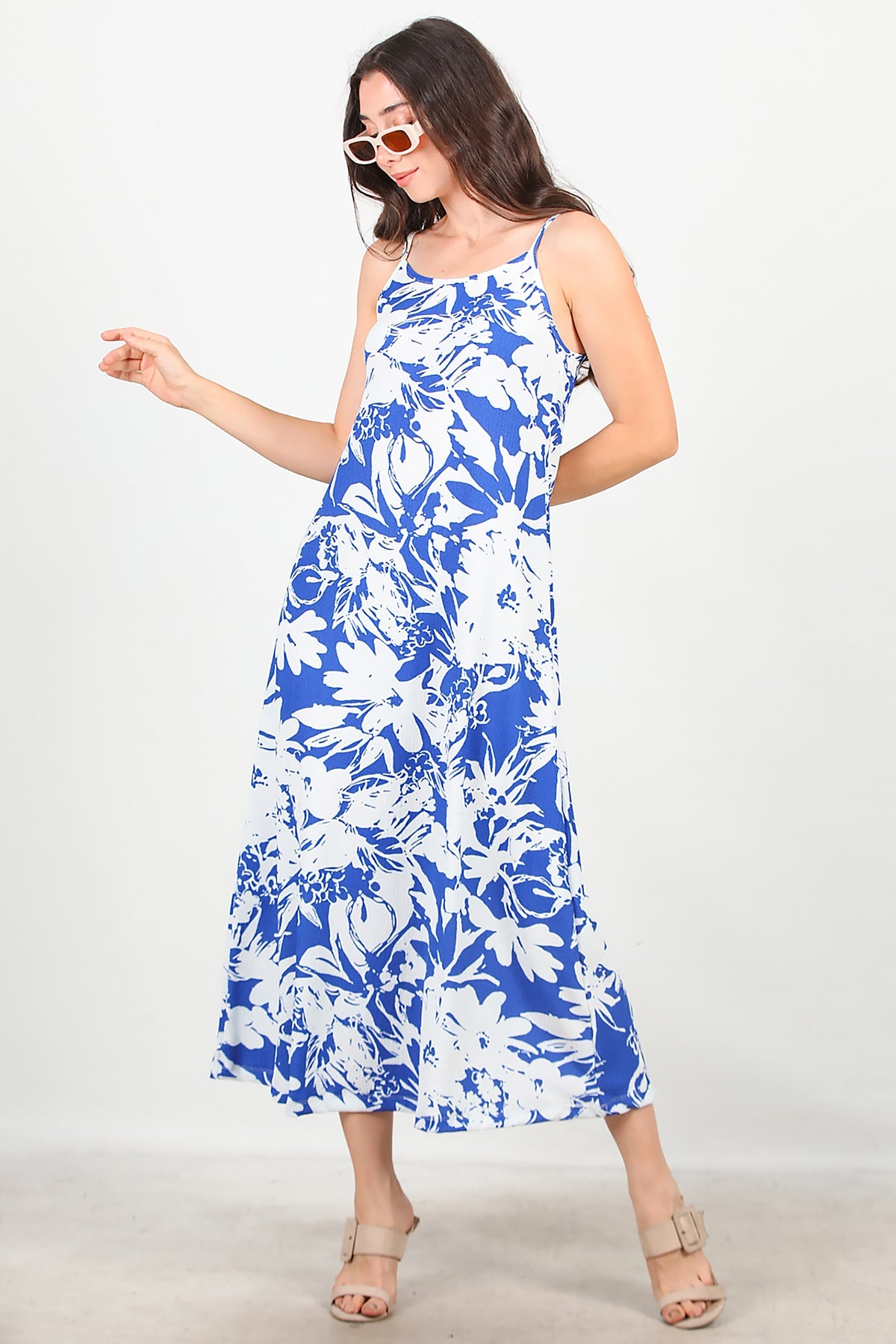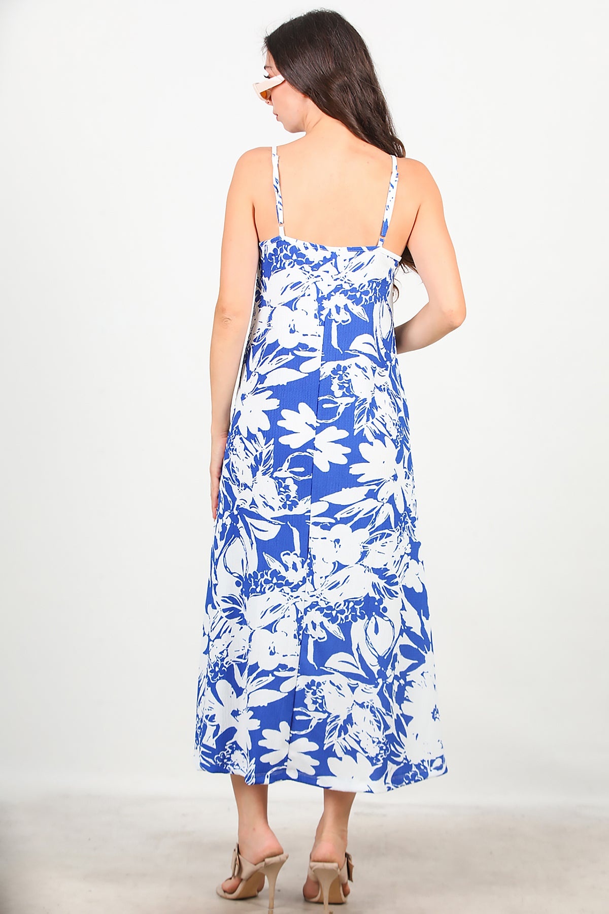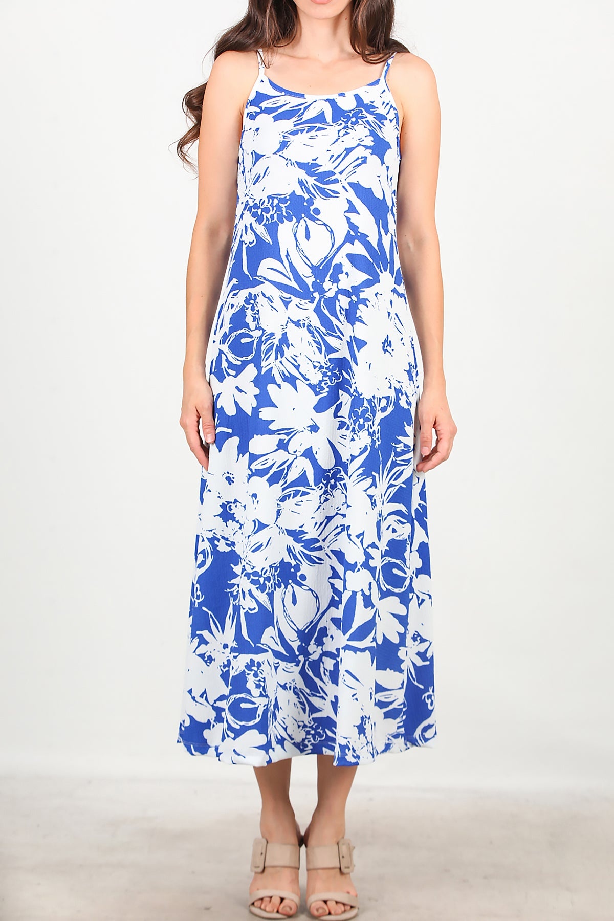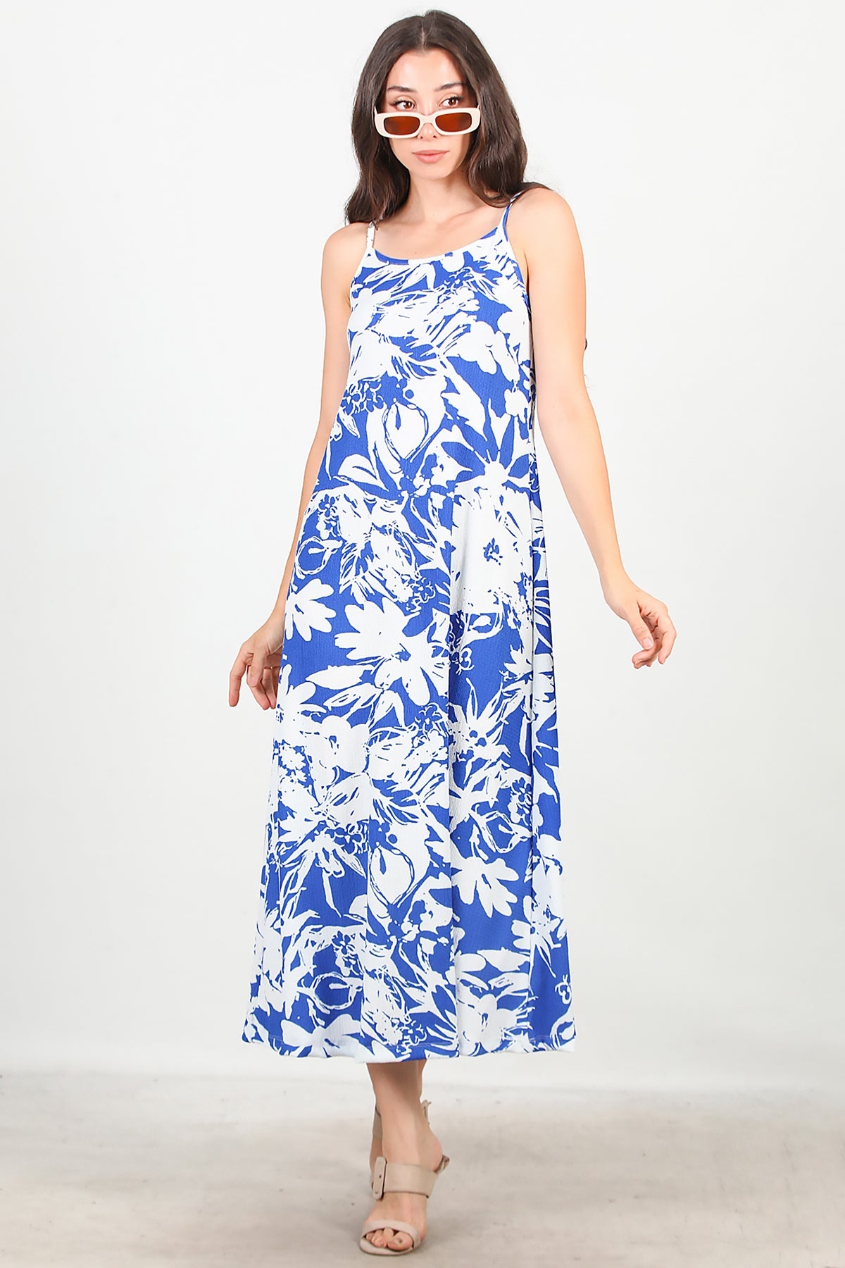 Kadın İp Askılı Desenli Uzun Elbise Çok Renkli