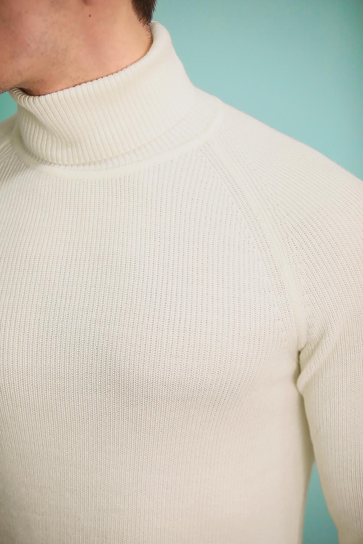 Erkek Balıkçı Yaka Triko Kazak Ekru