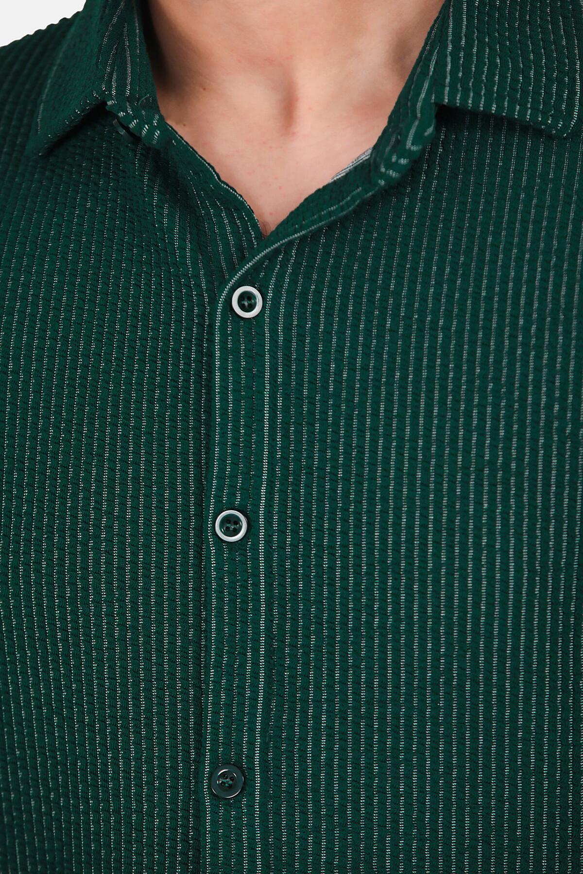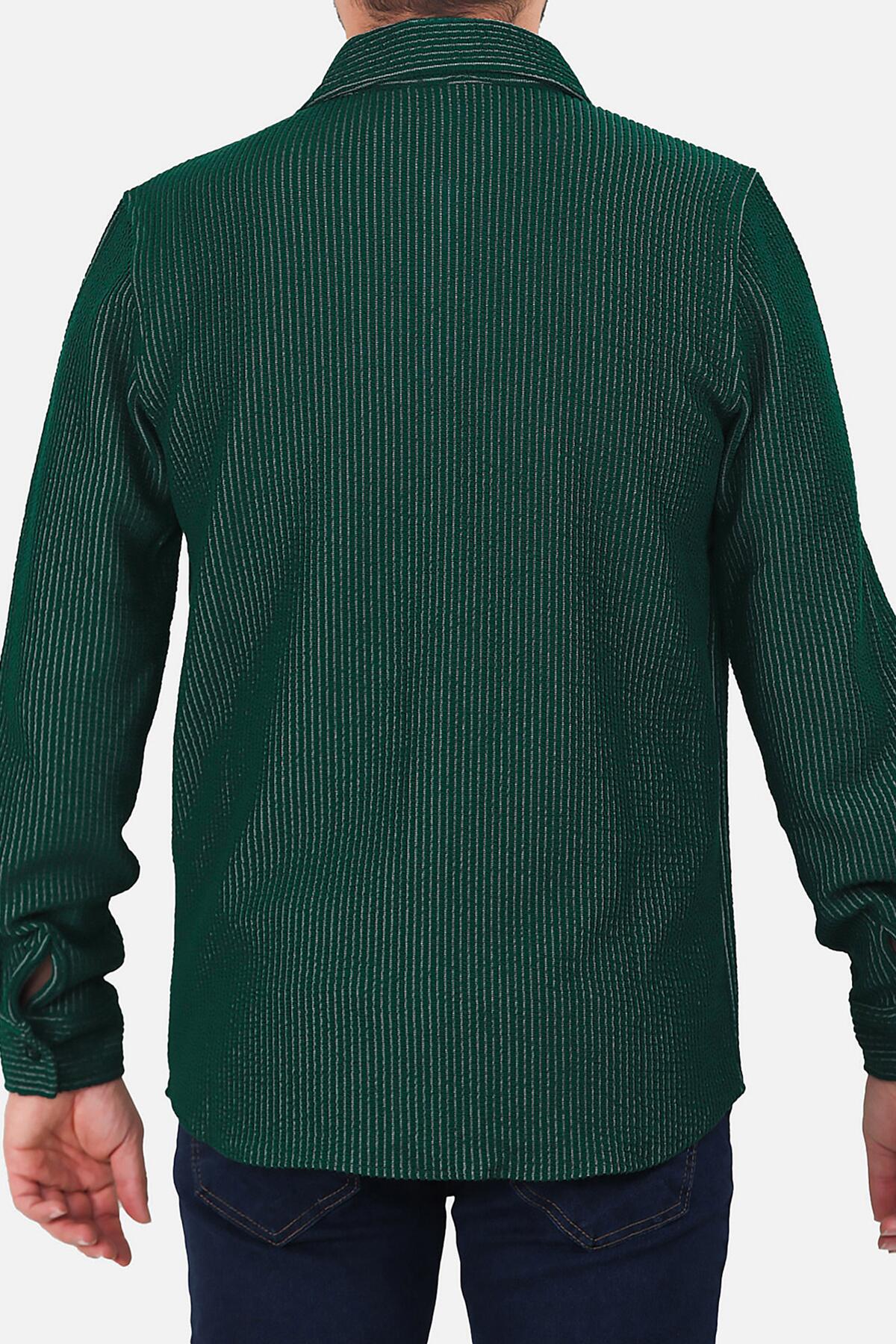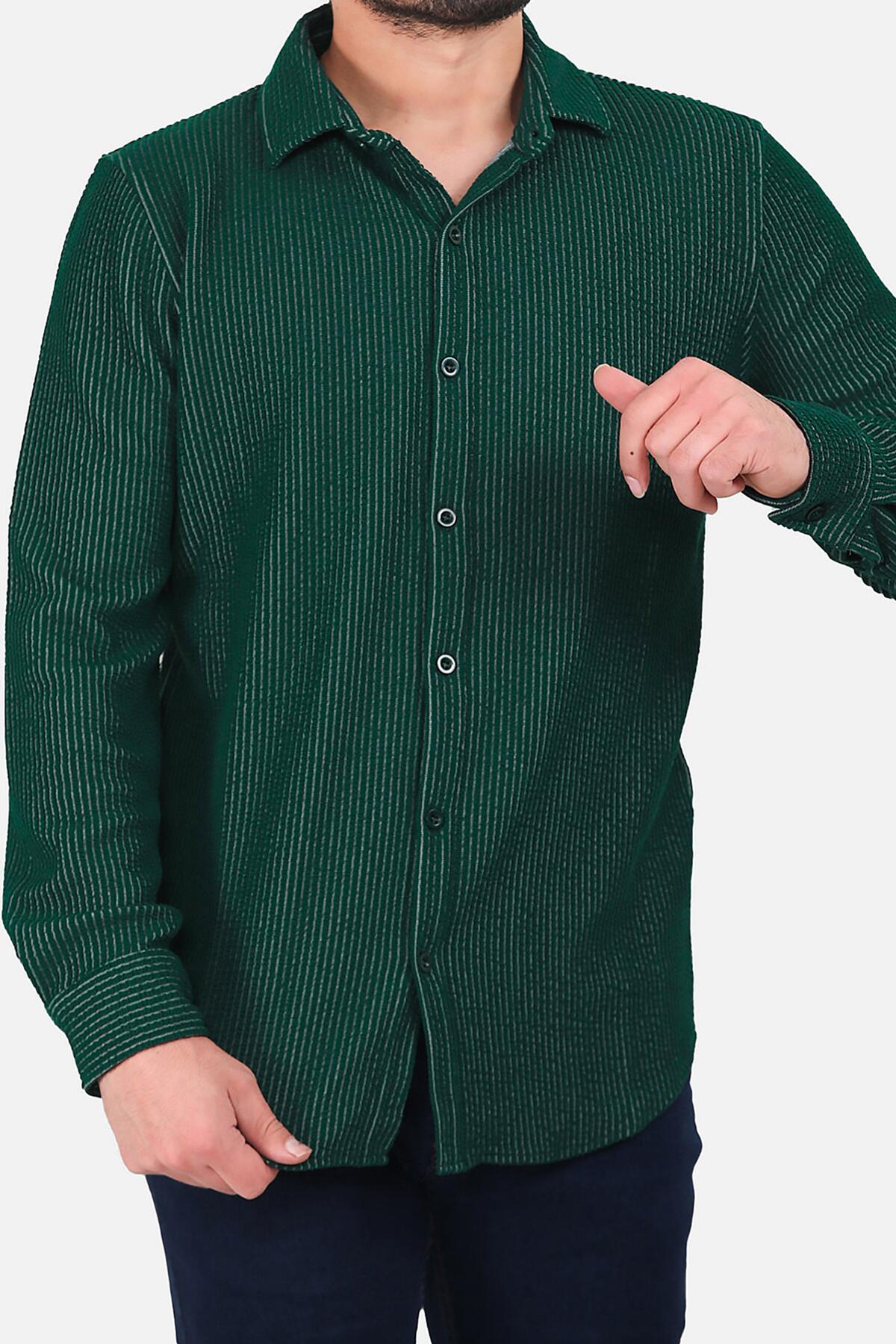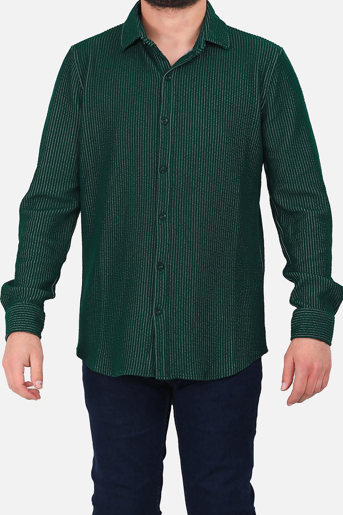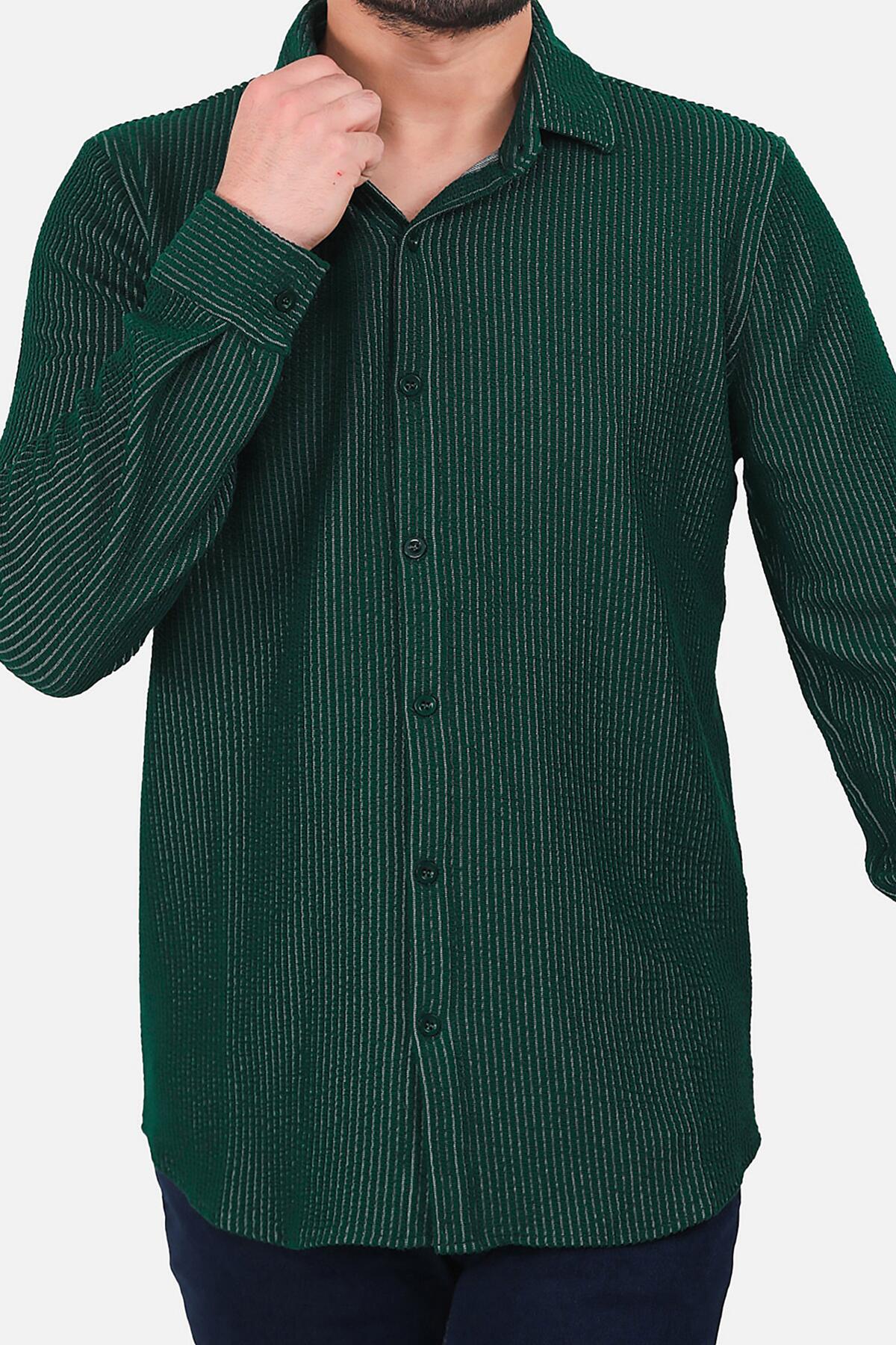 Erkek Çizgili Uzun Kol Düğmeli Gömlek Yeşil