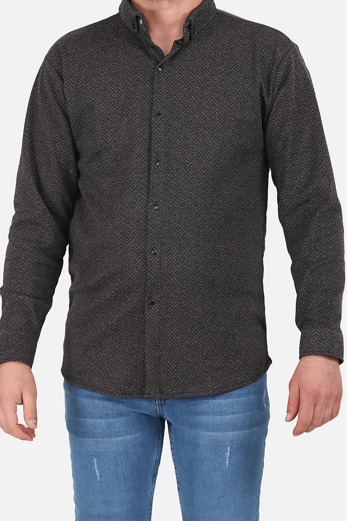Erkek Desenli Uzun Kollu Gömlek Kahverengi