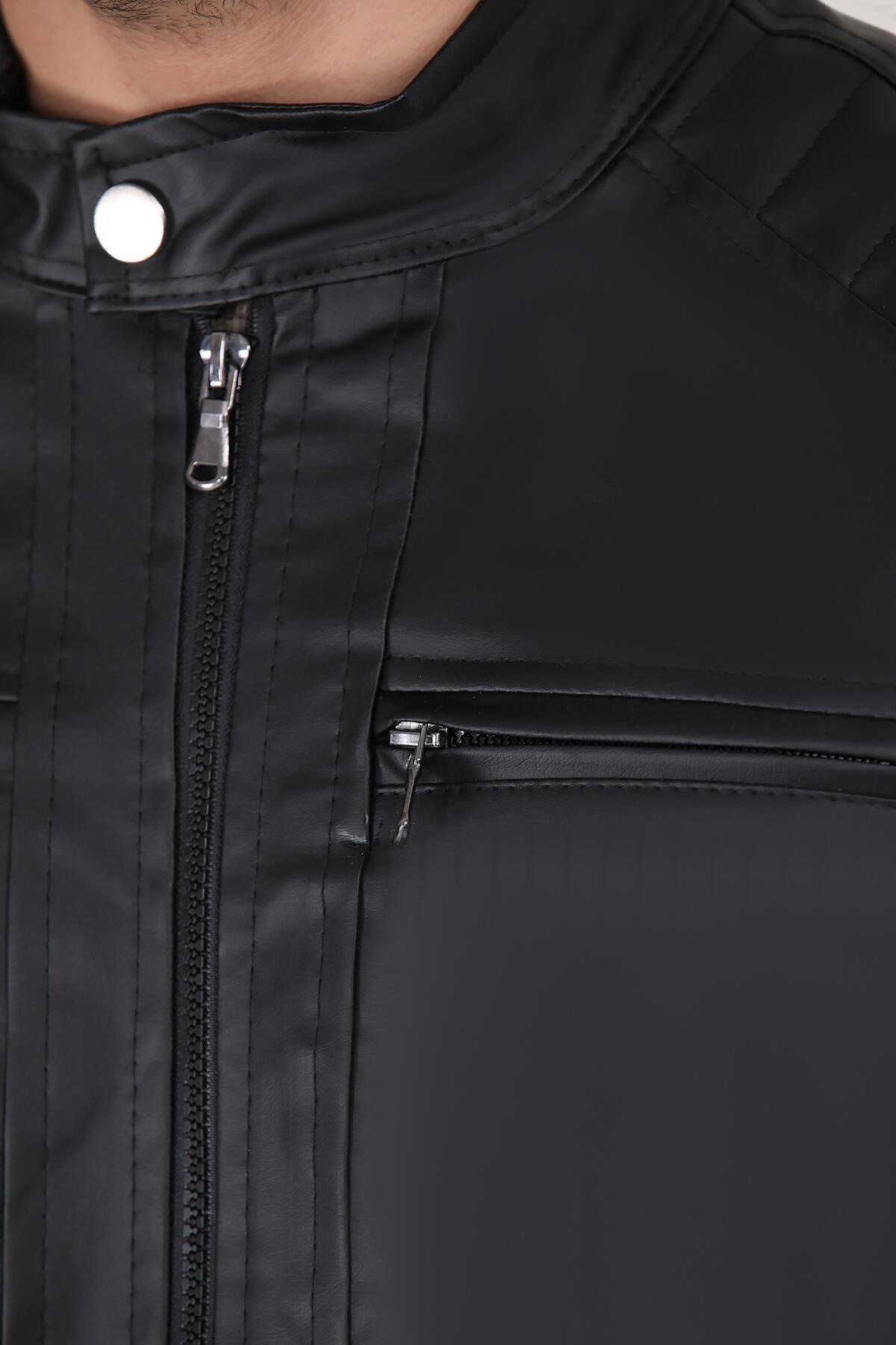 Erkek Hakim Yaka Deri Mont Siyah