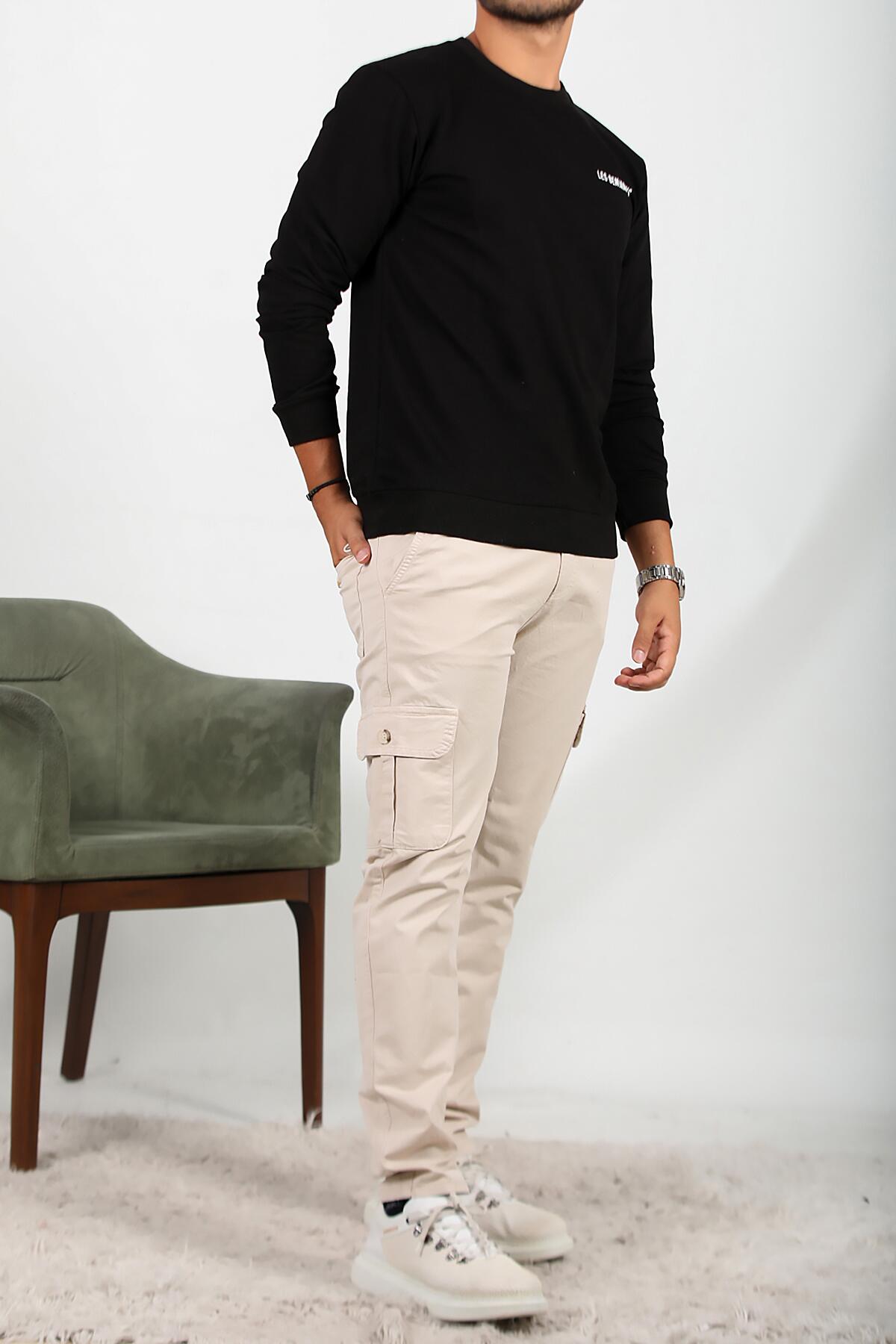 Erkek Kargo Cepli Düz Paça Pantolon Taş