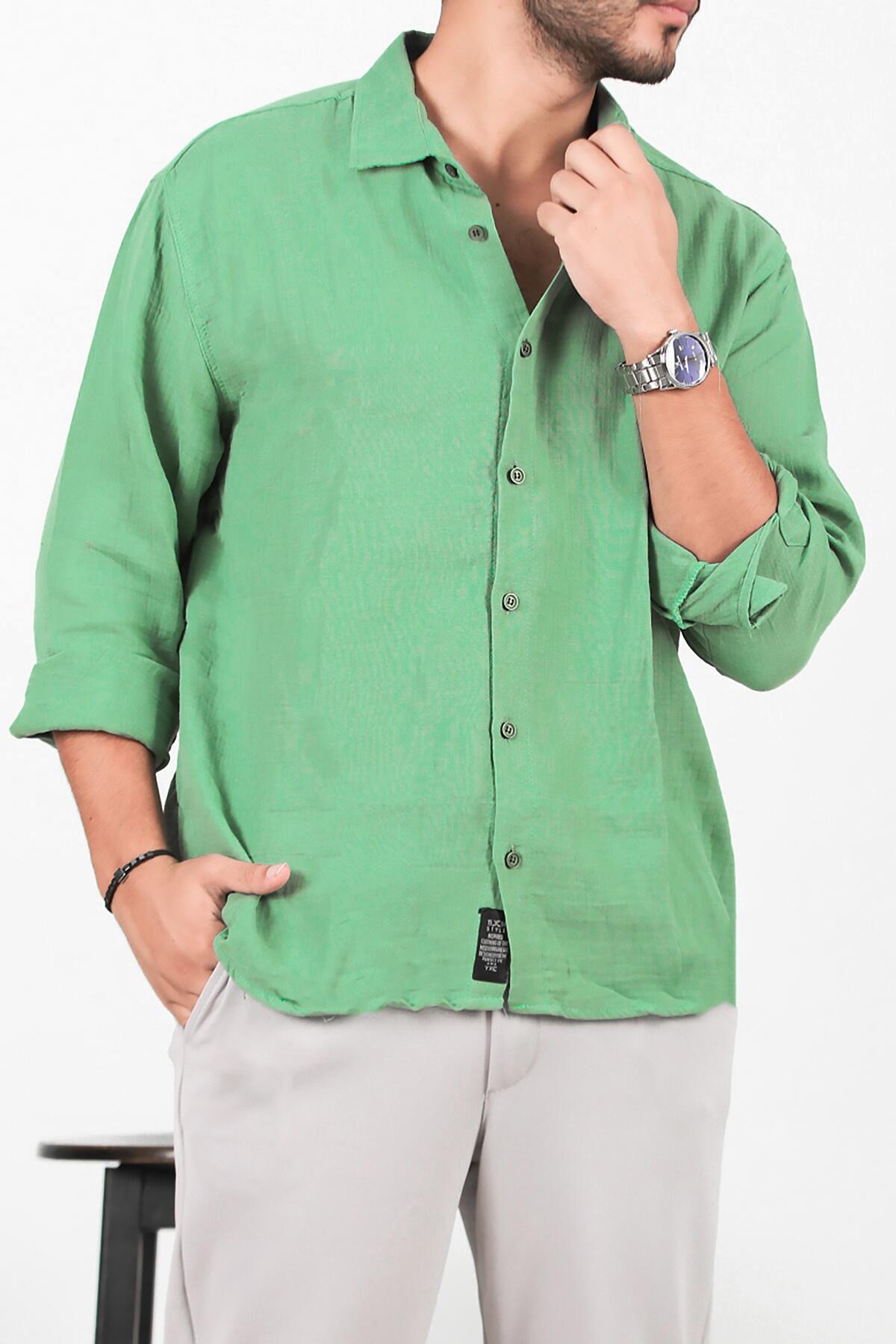 Erkek Oversize Uzun Kol Gömlek Yeşil