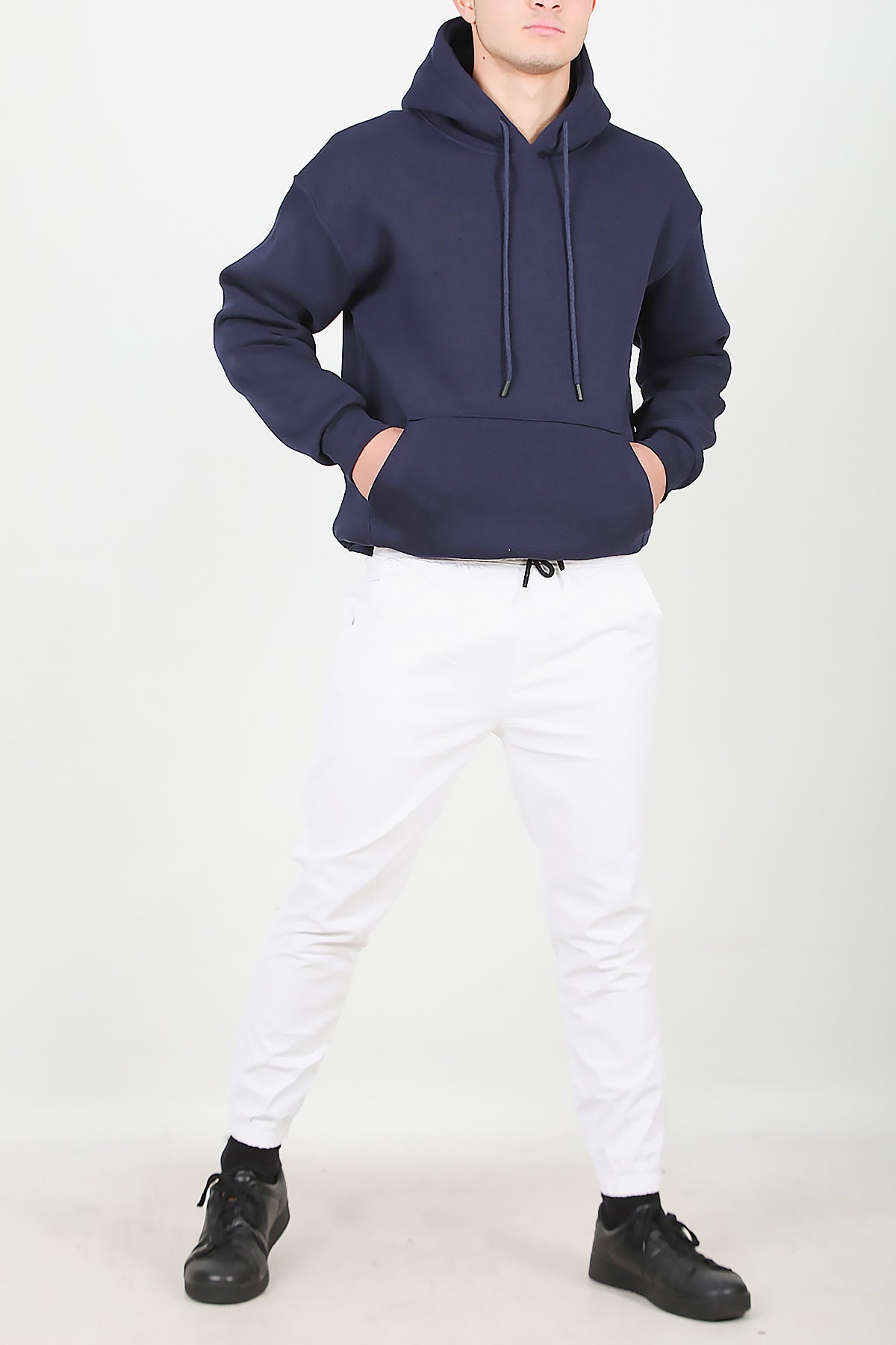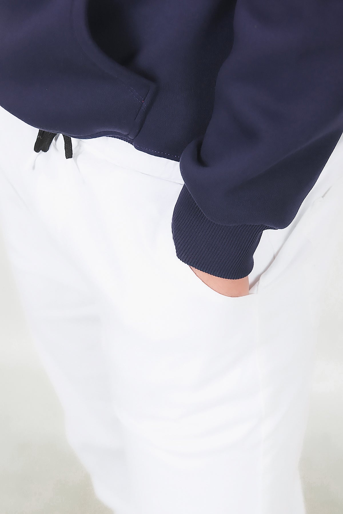 Erkek Paça Ve Bel Lastikli Pantolon Beyaz