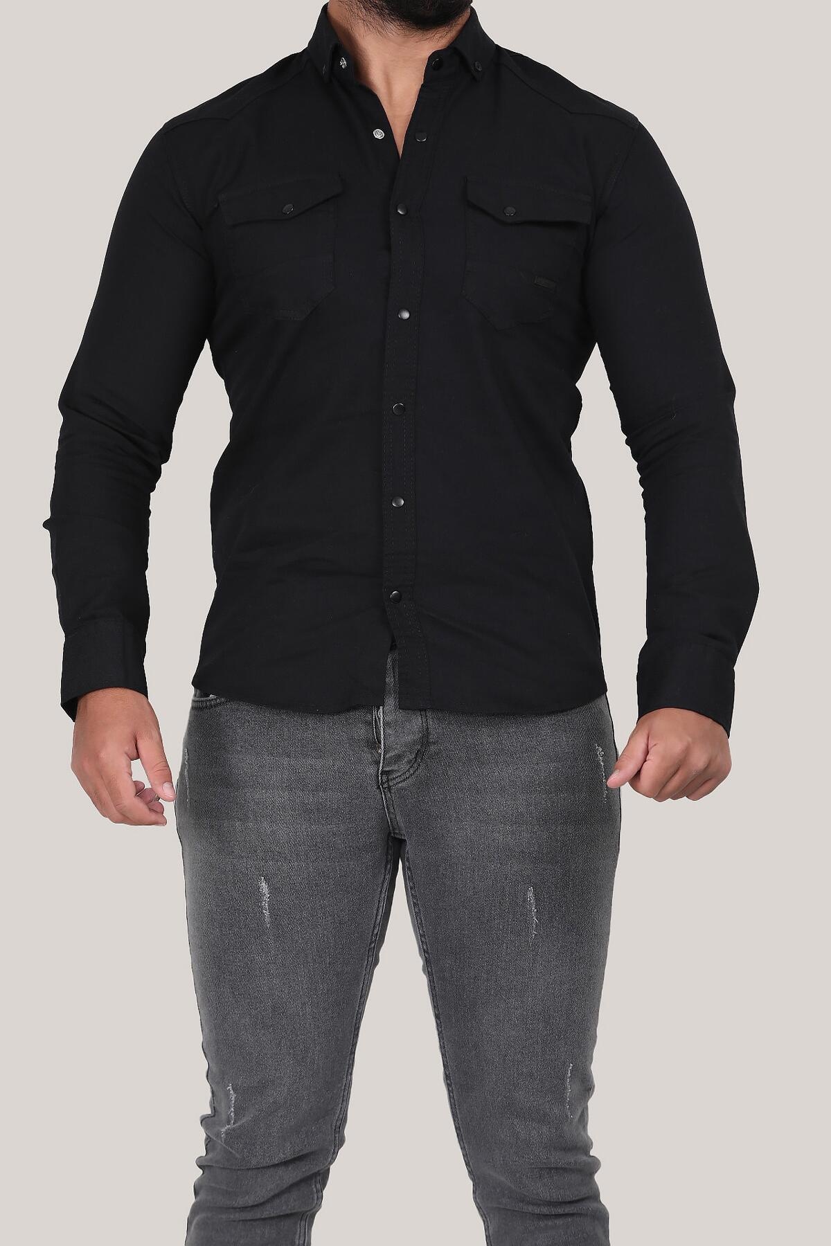 Erkek Uzun Kol Cepli Gömlek Siyah