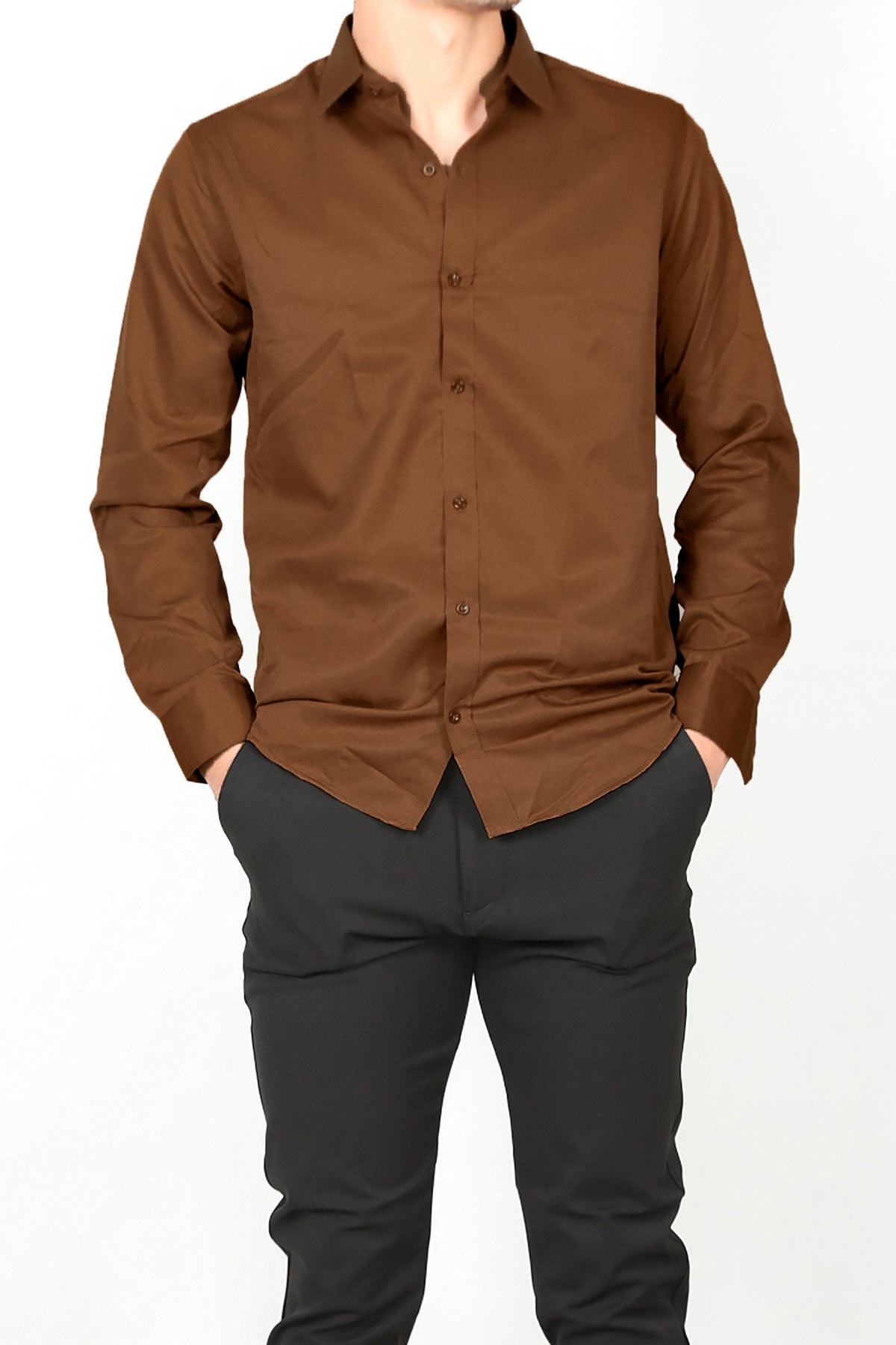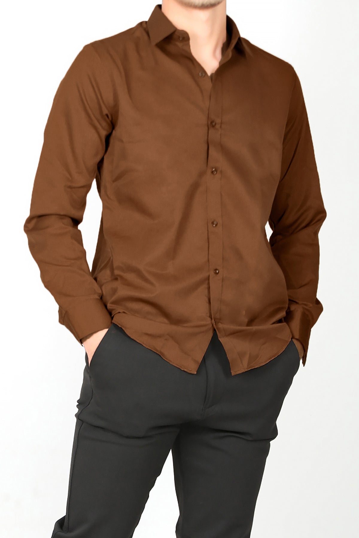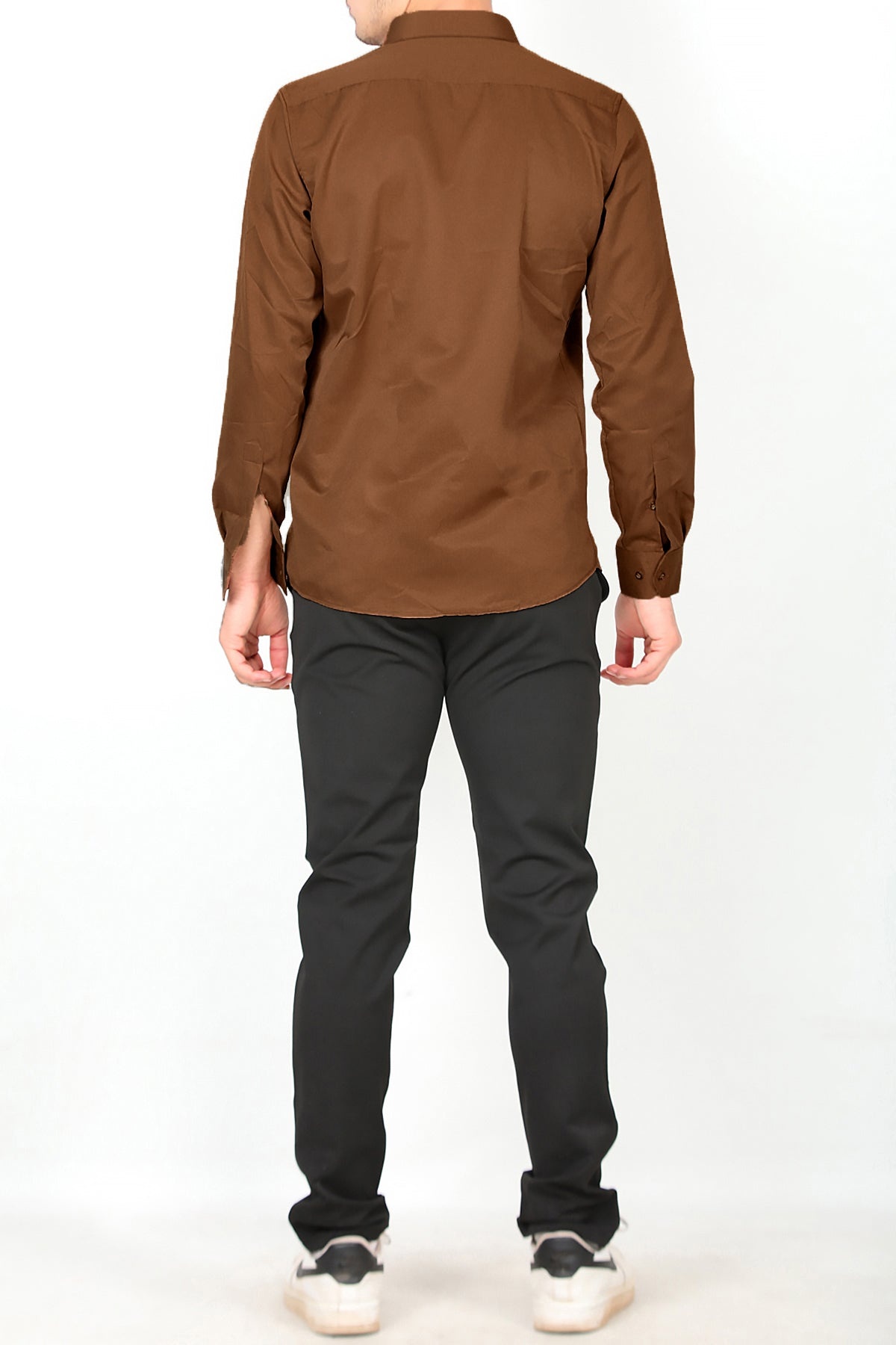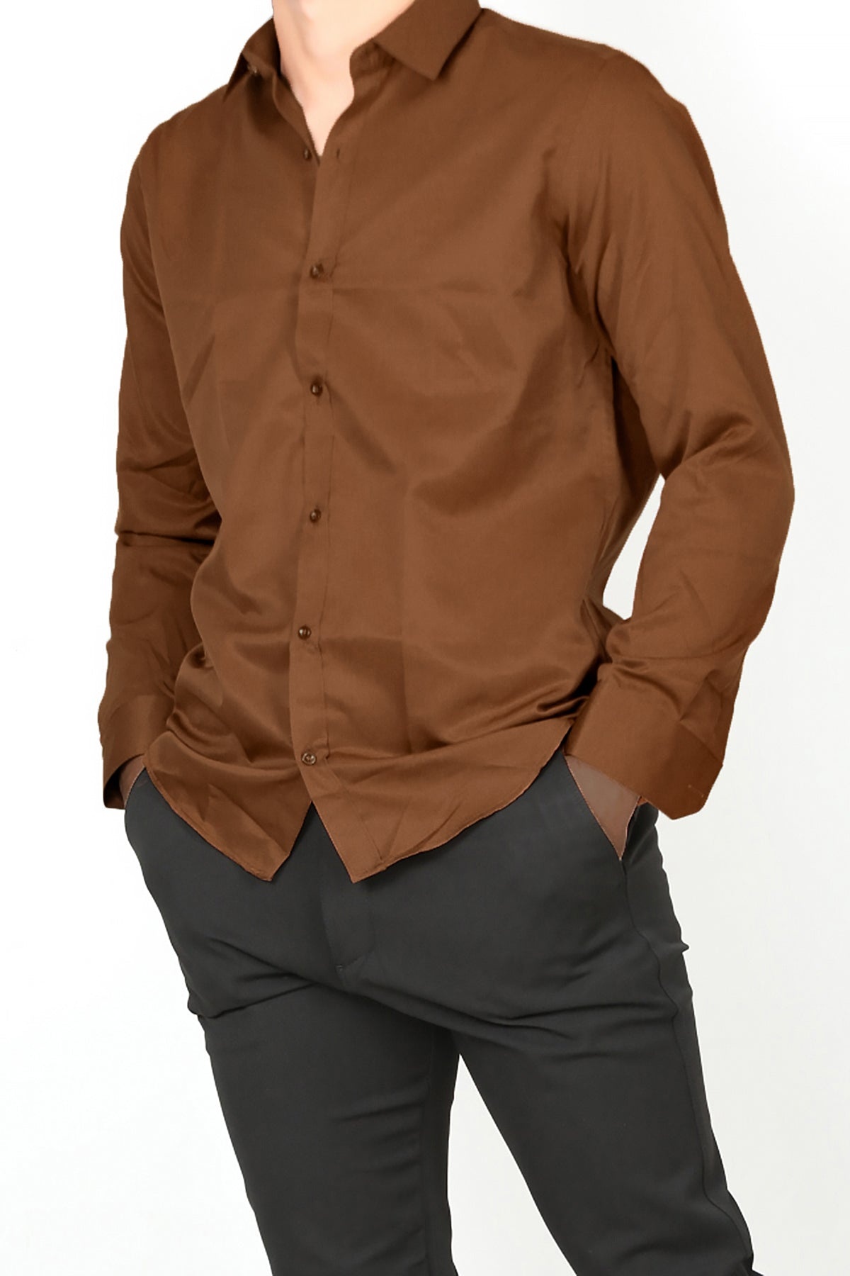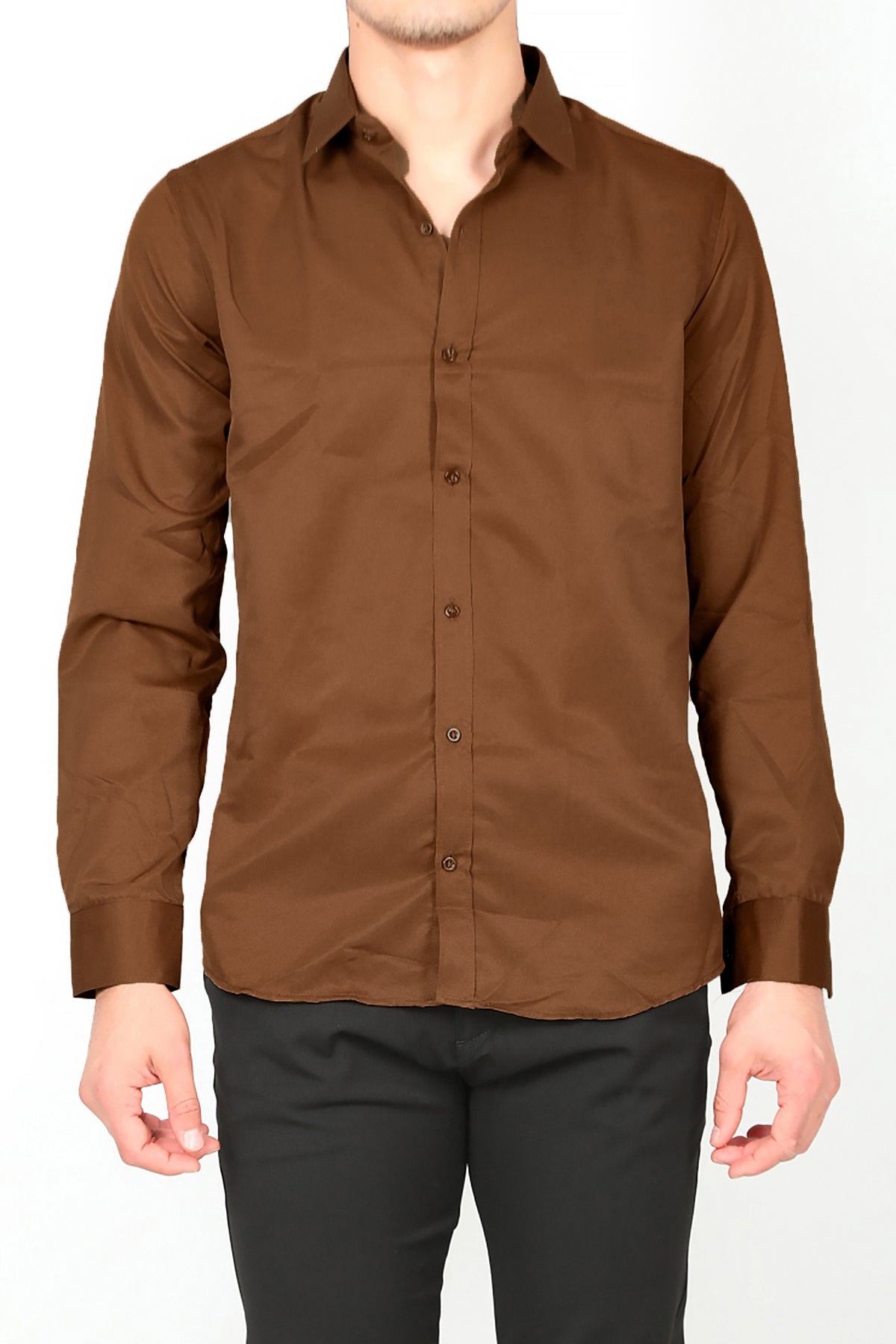 Erkek Uzun Kol Gömlek Kahverengi Kahverengi