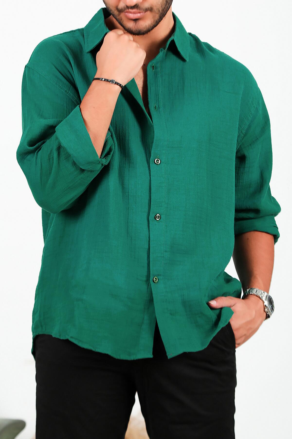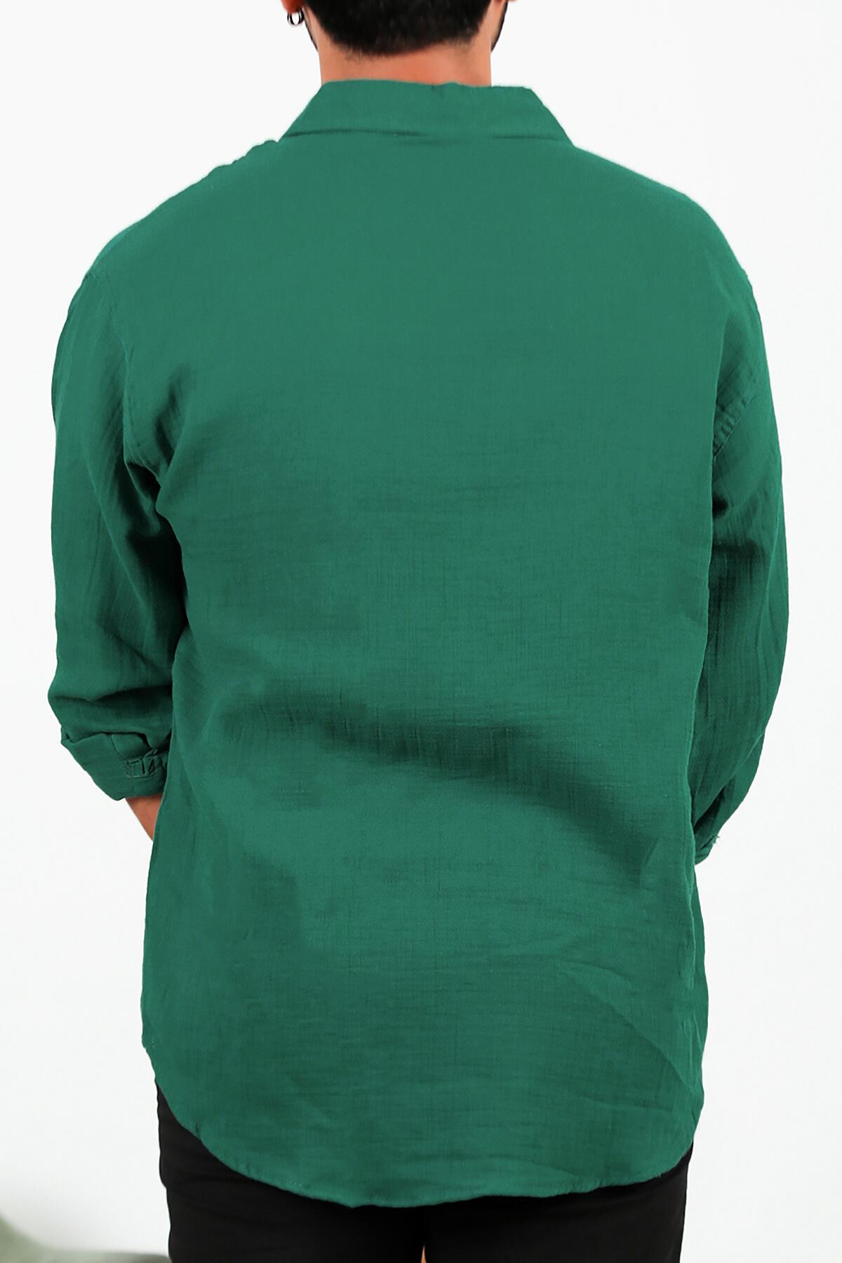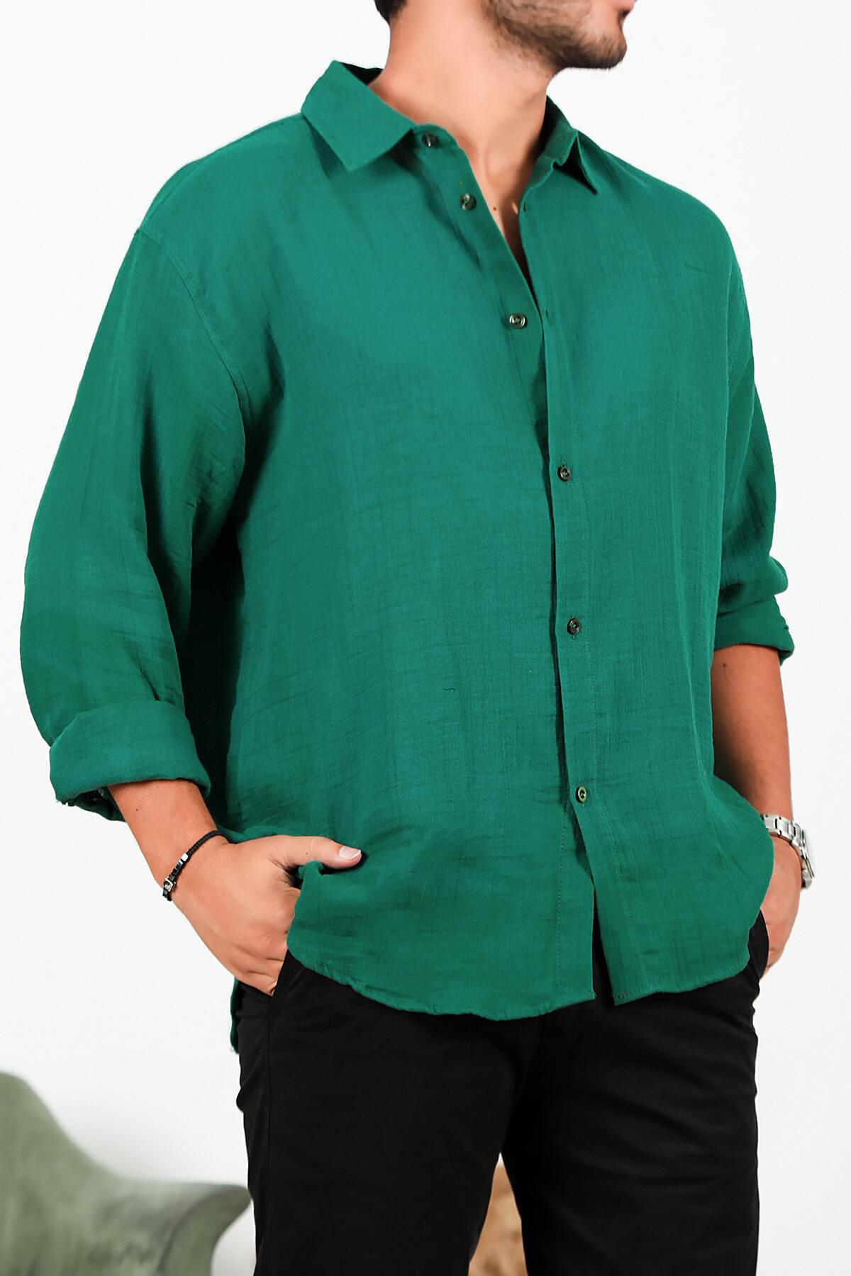 Erkek Uzun Kol Keten Gömlek Yeşil
