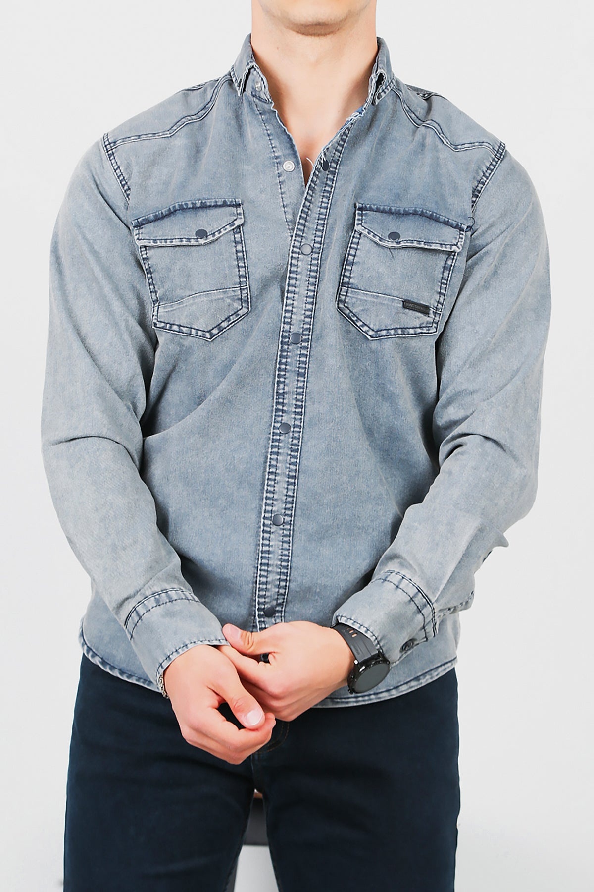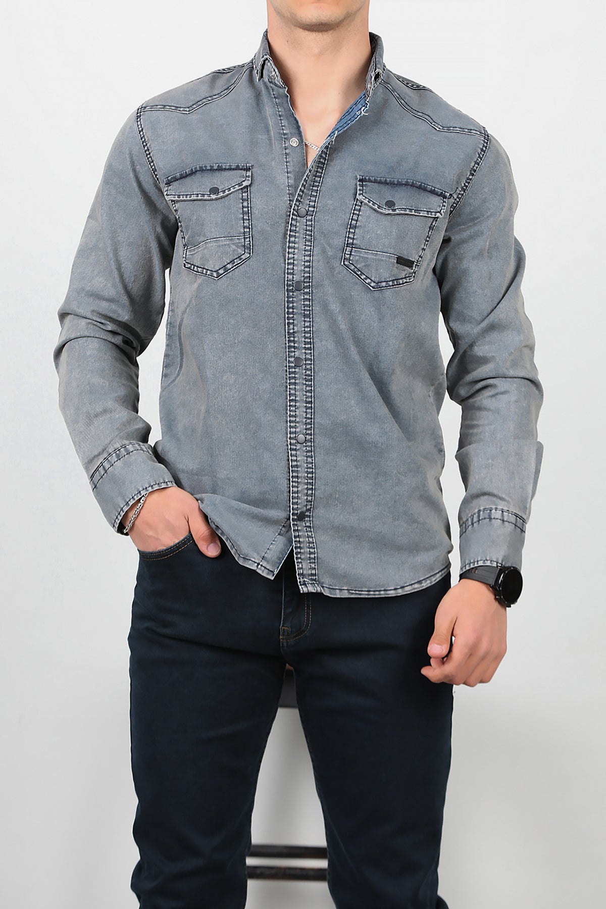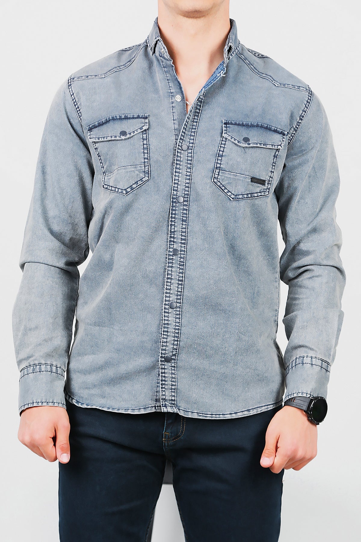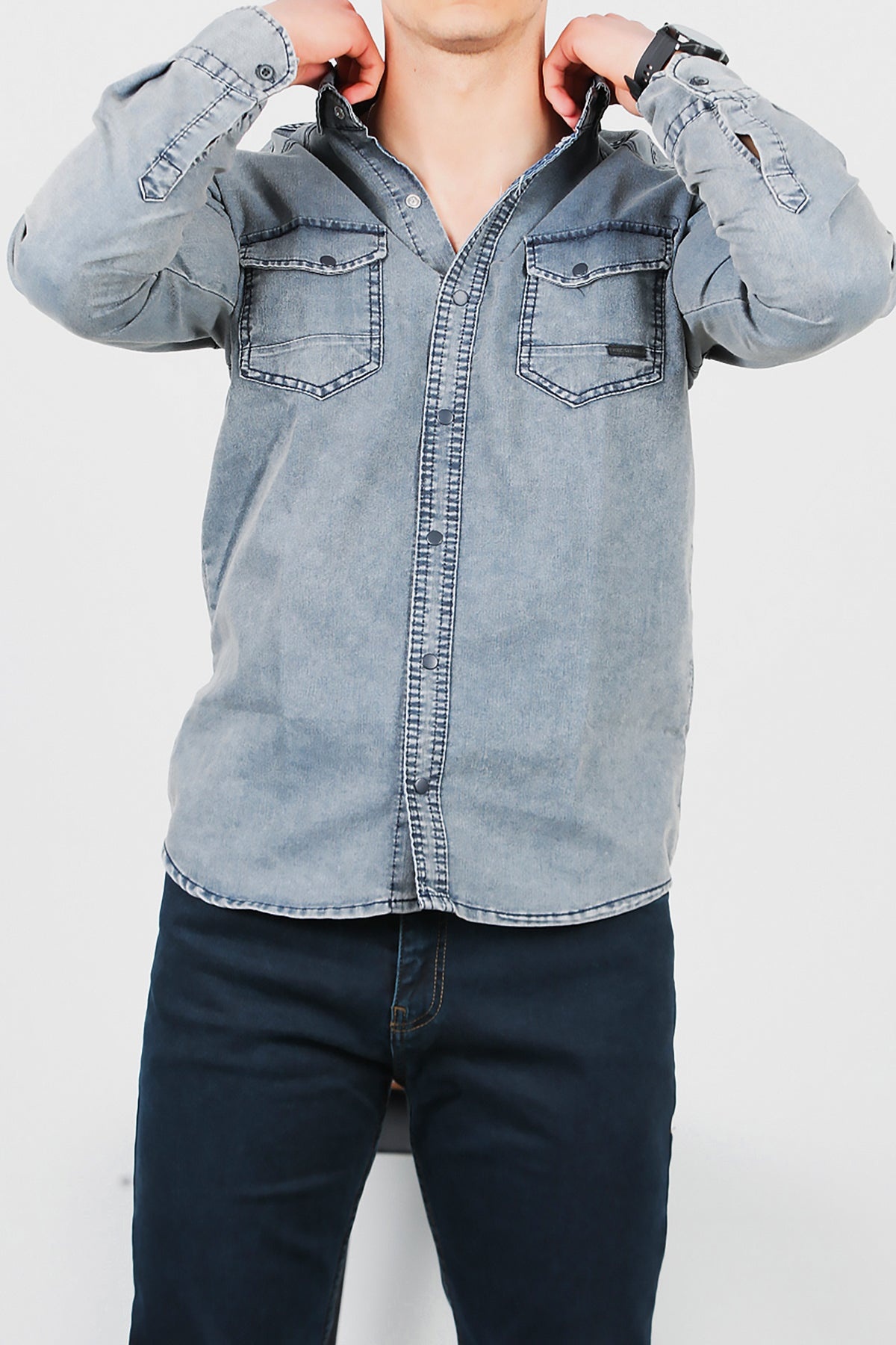 Numune Bedeni: LNumune Boyu: 73 cmKumaş Tipi: %97 Pamuk %3 LikraÜrün Özelliği: Yıkamalı Kot Gömlek