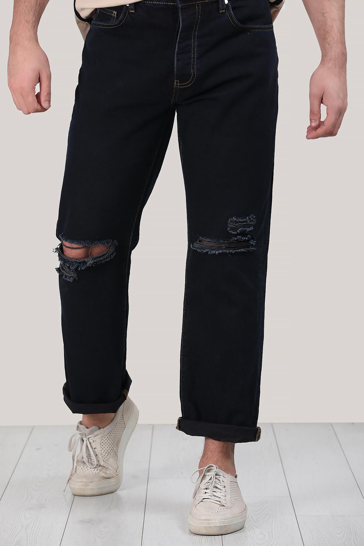 Erkek Yırtık Detaylı Pantolon Lacivert