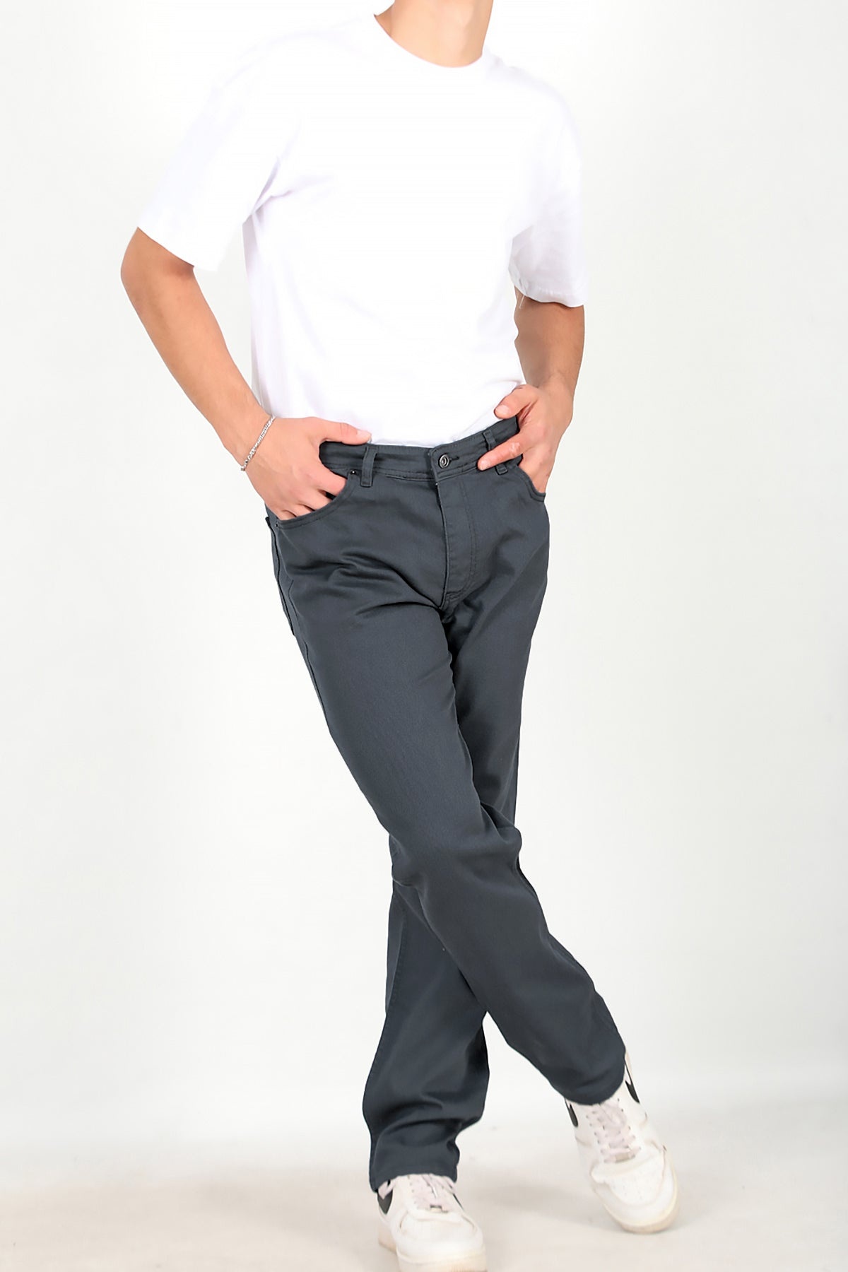 Erkek Boru Paça Kot Pantolon Füme Füme