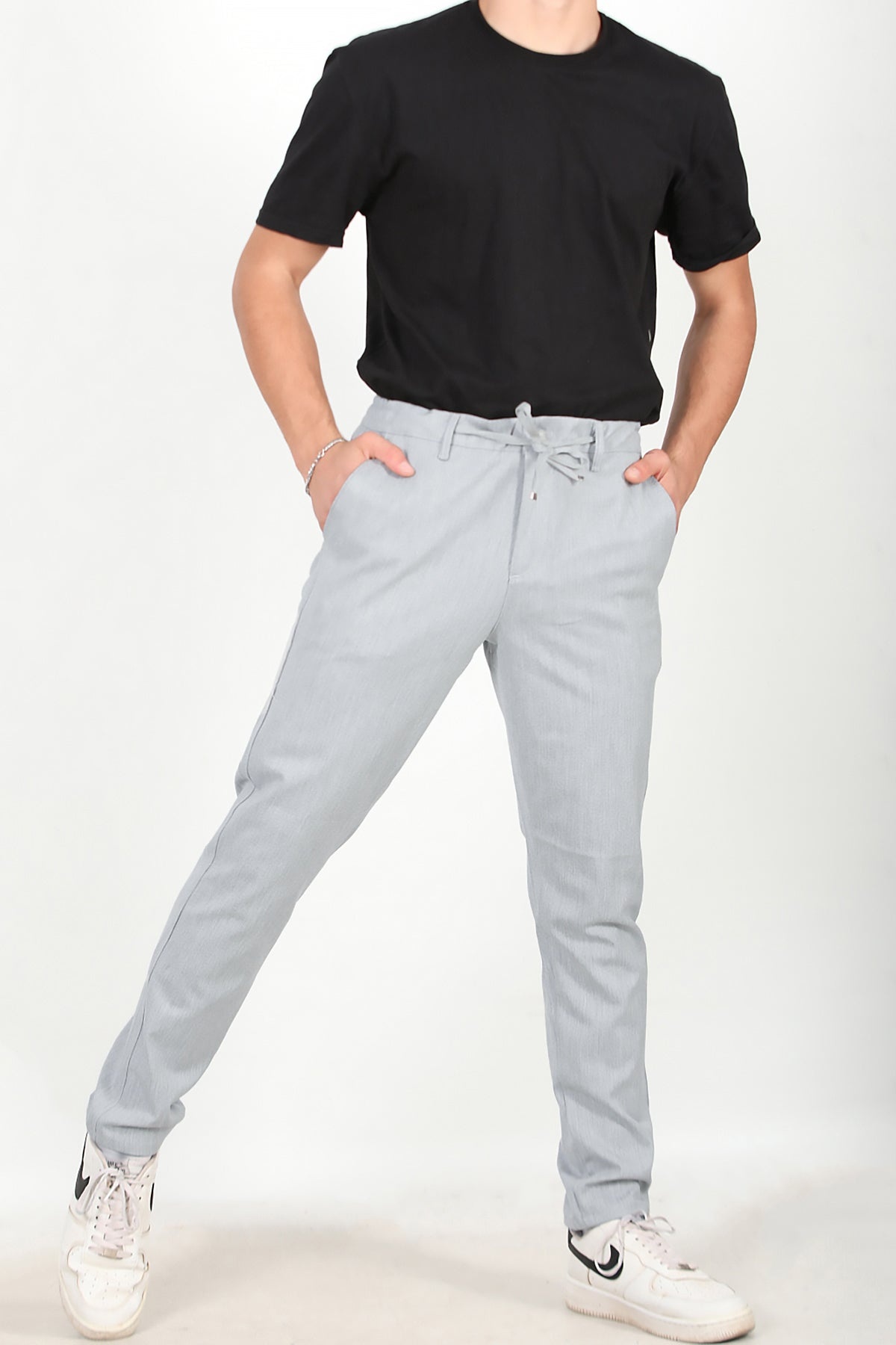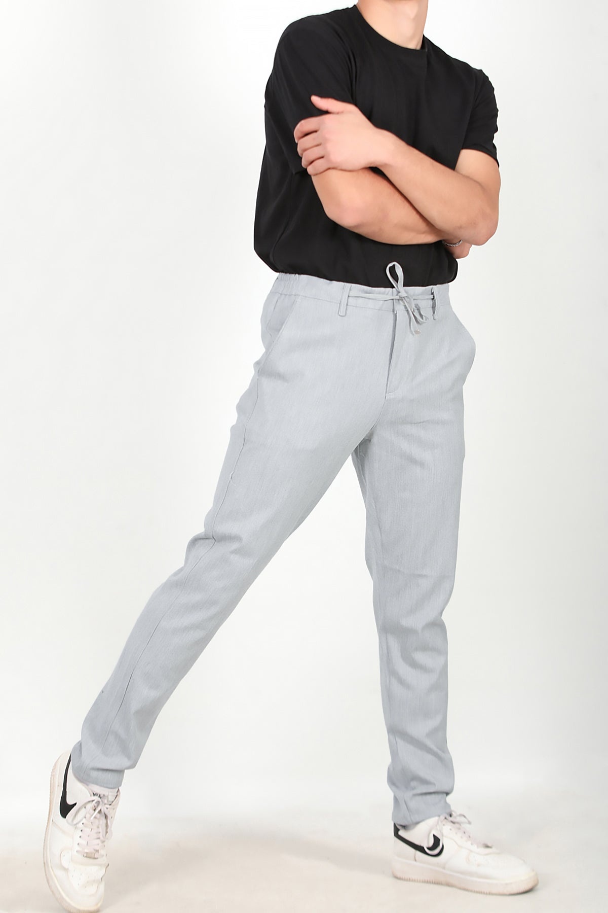 Erkek Bel Lastikli Kumaş Pantolon Gri Gri
