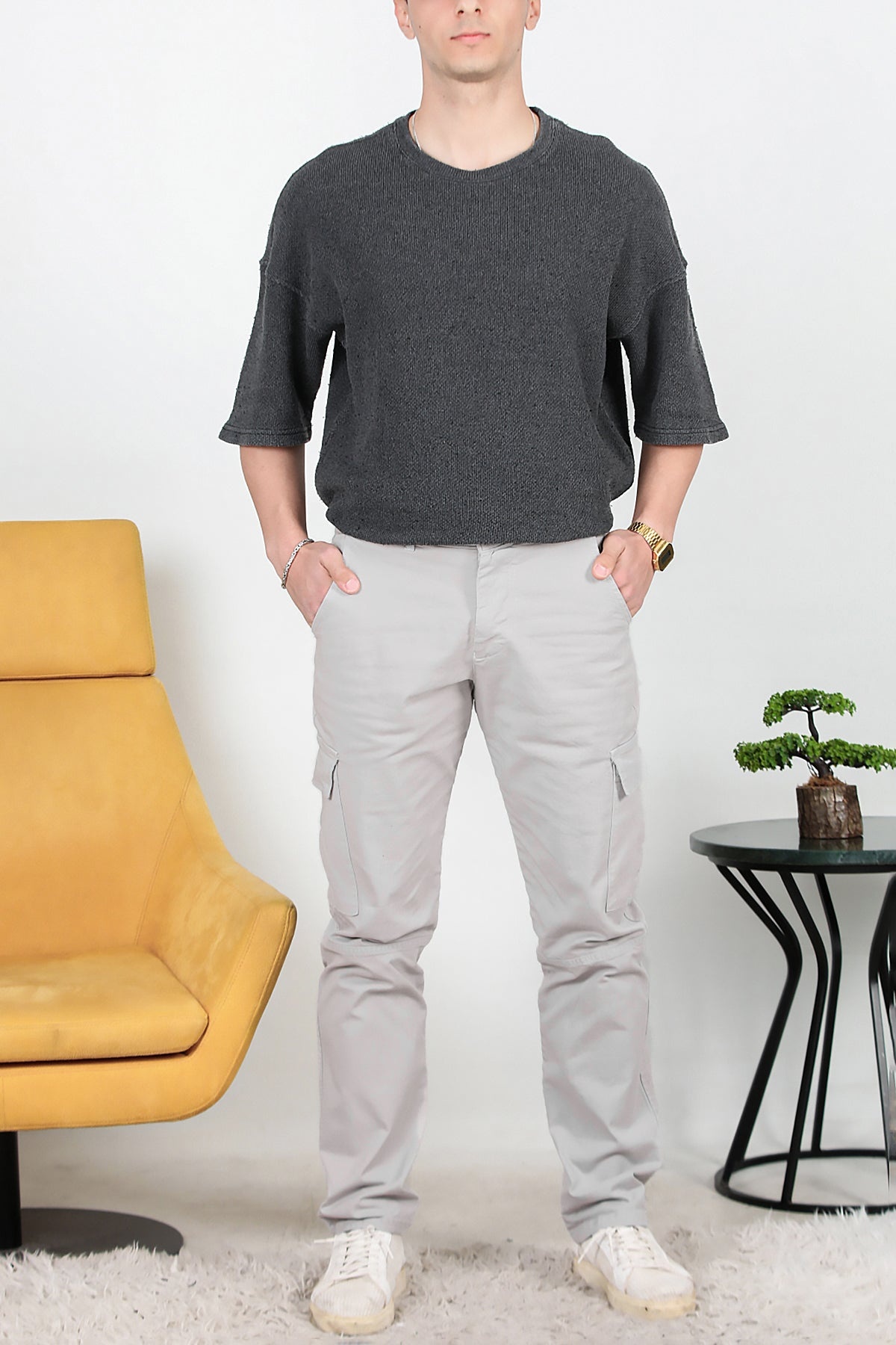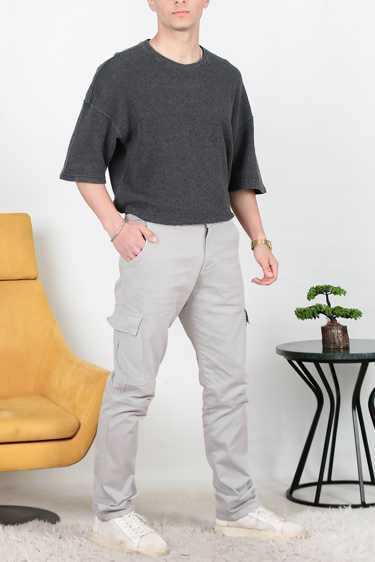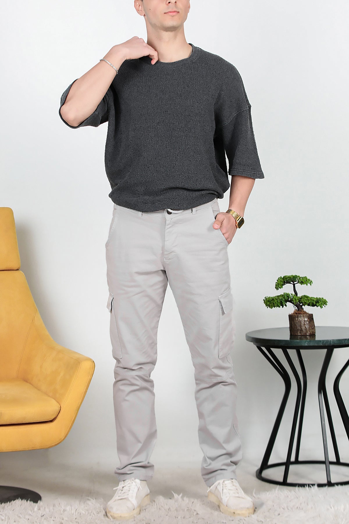 Erkek Kargo Cepli Bol Paça Pantolon Taş