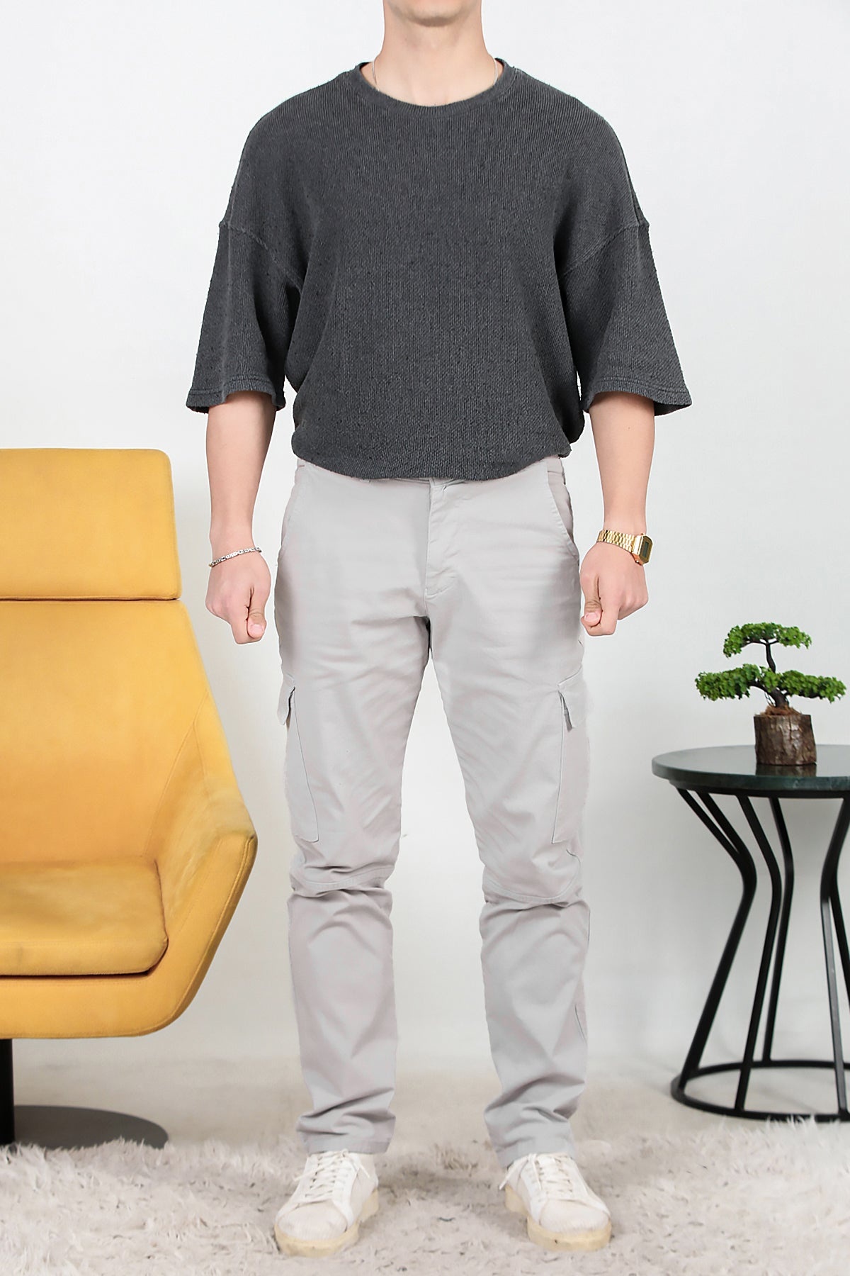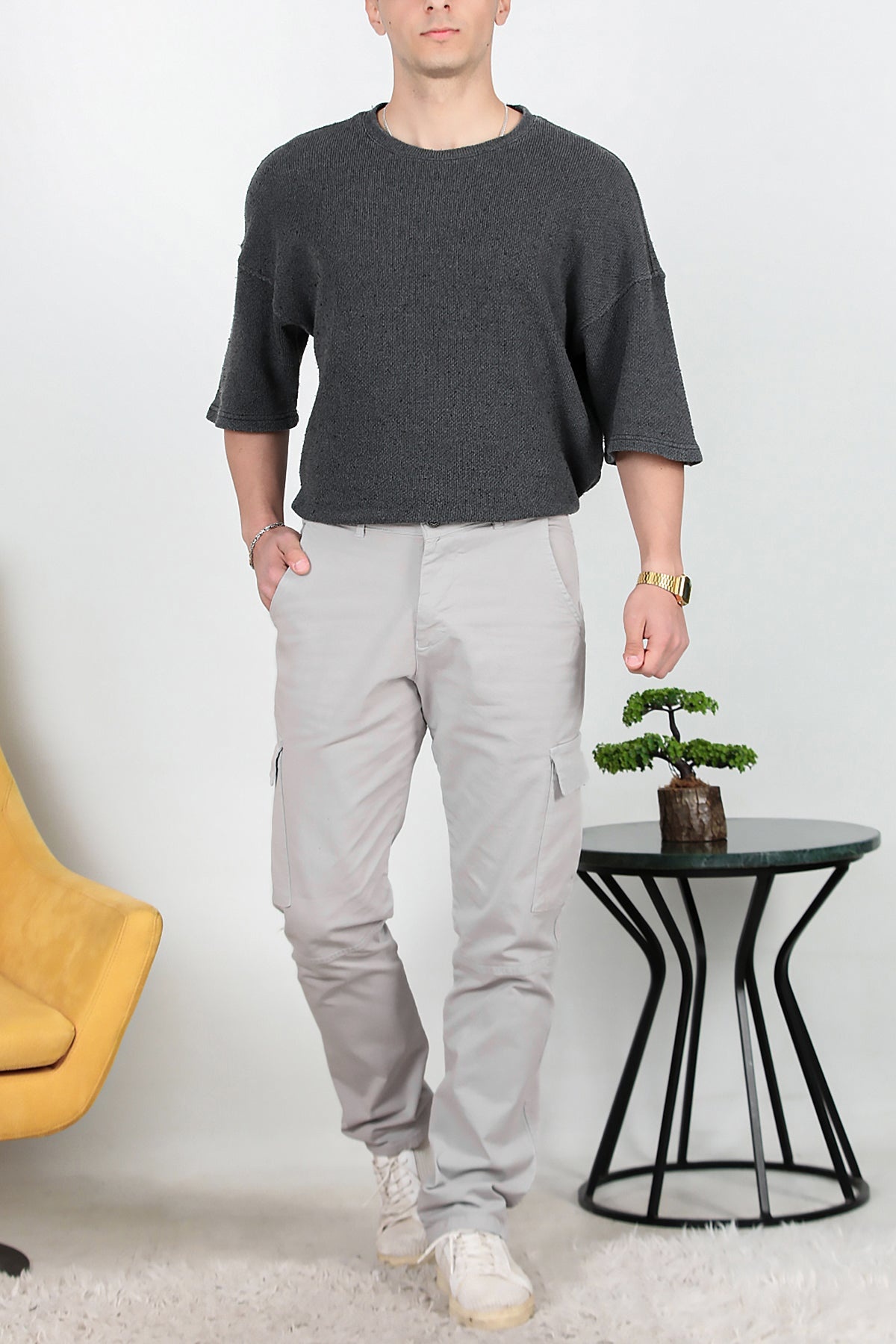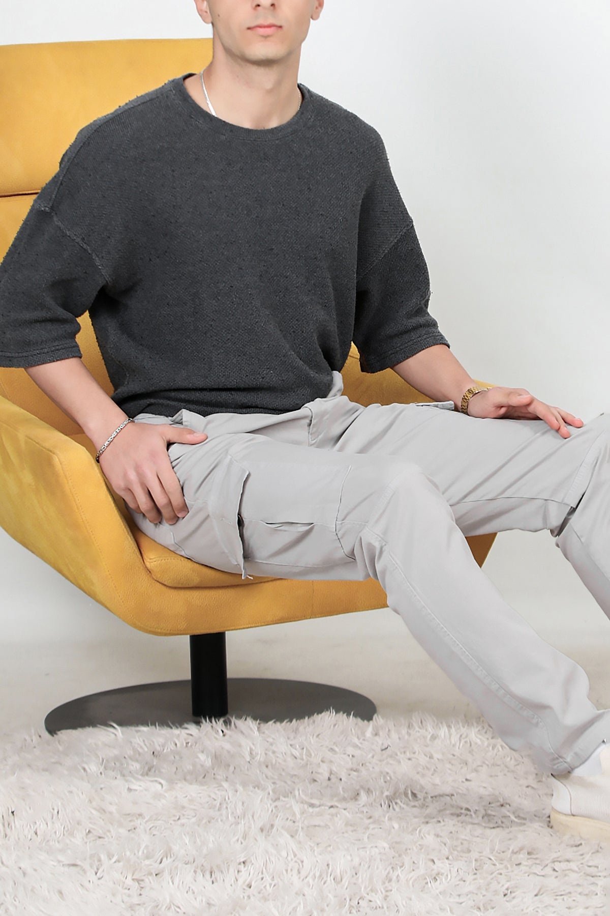 Erkek Kargo Cepli Bol Paça Pantolon Taş