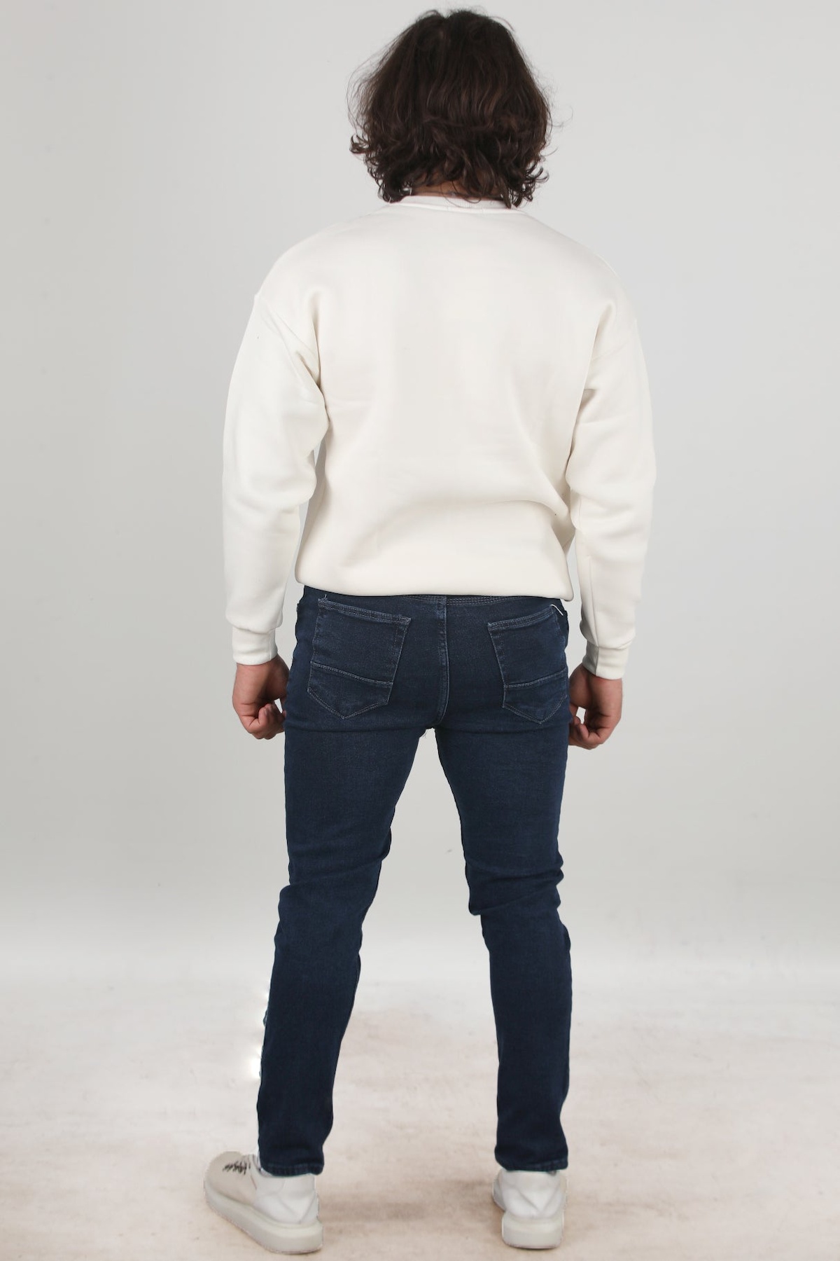 Erkek Likrali Düz Paça Kot Pantolon Mavi