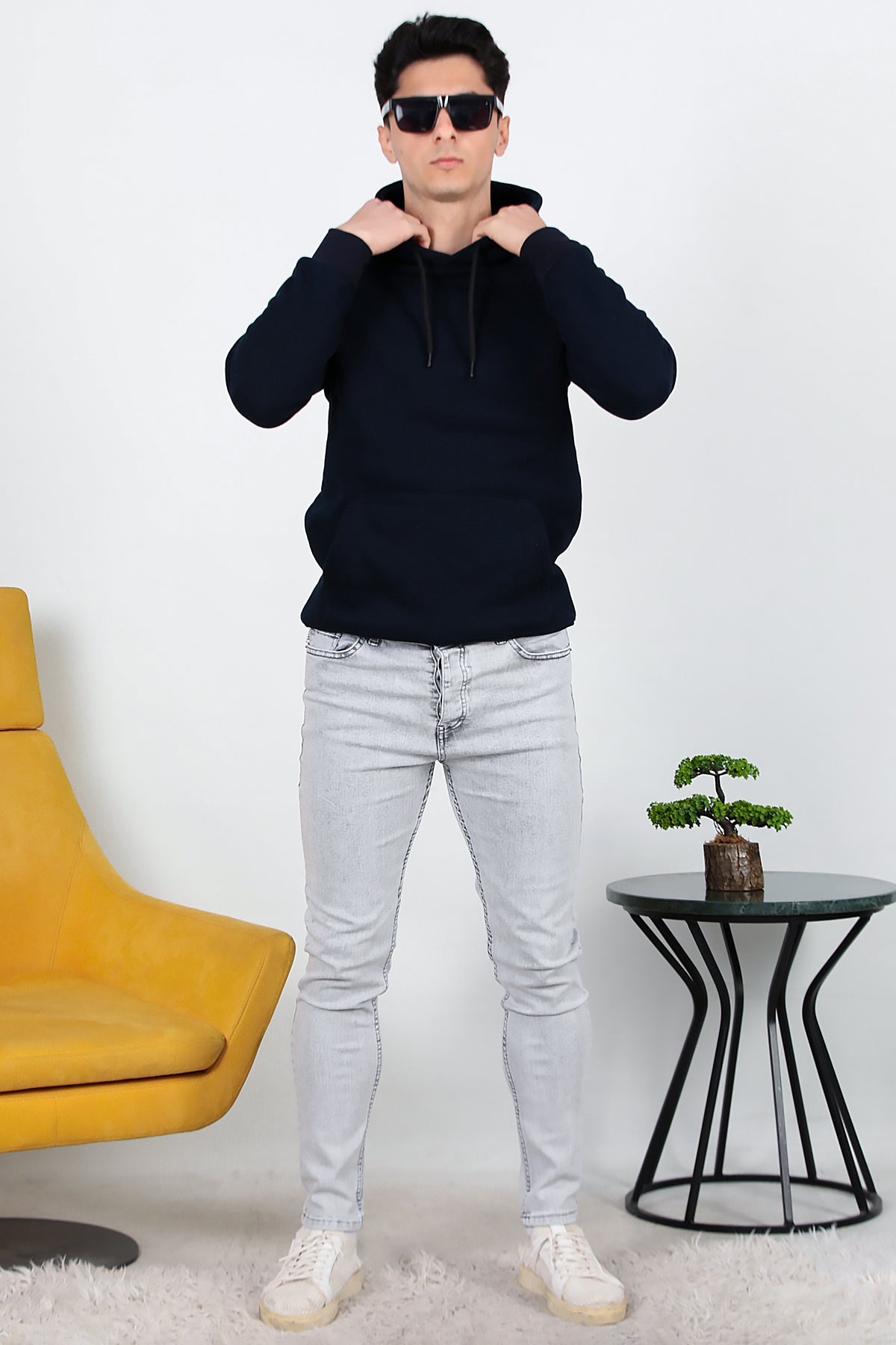 Erkek Sliim Fit Dar Paça Kot Pantolon Gri