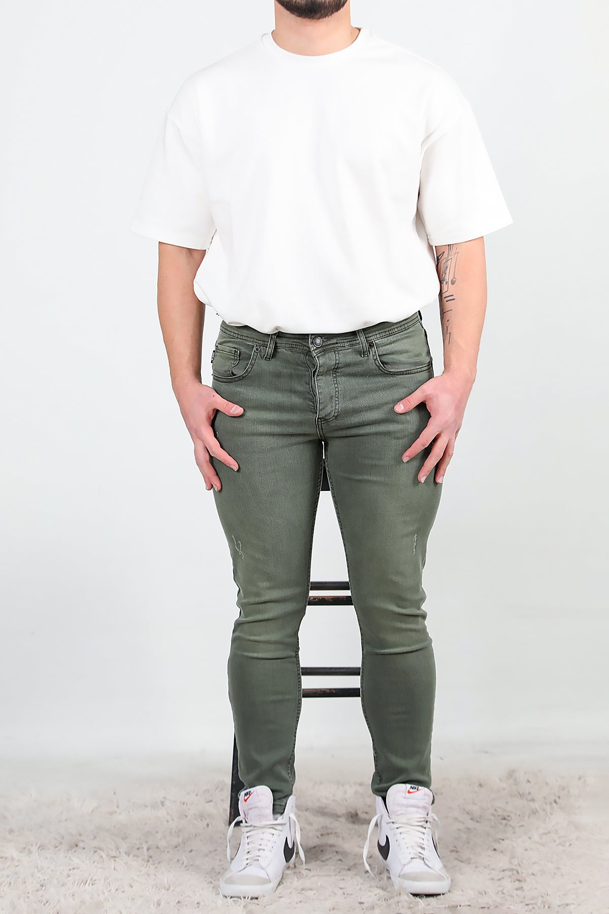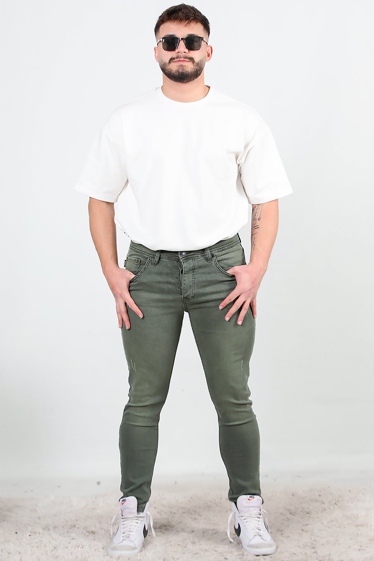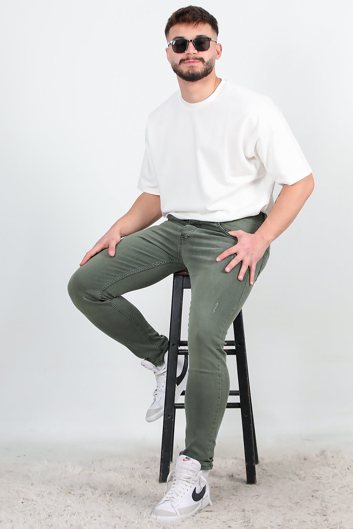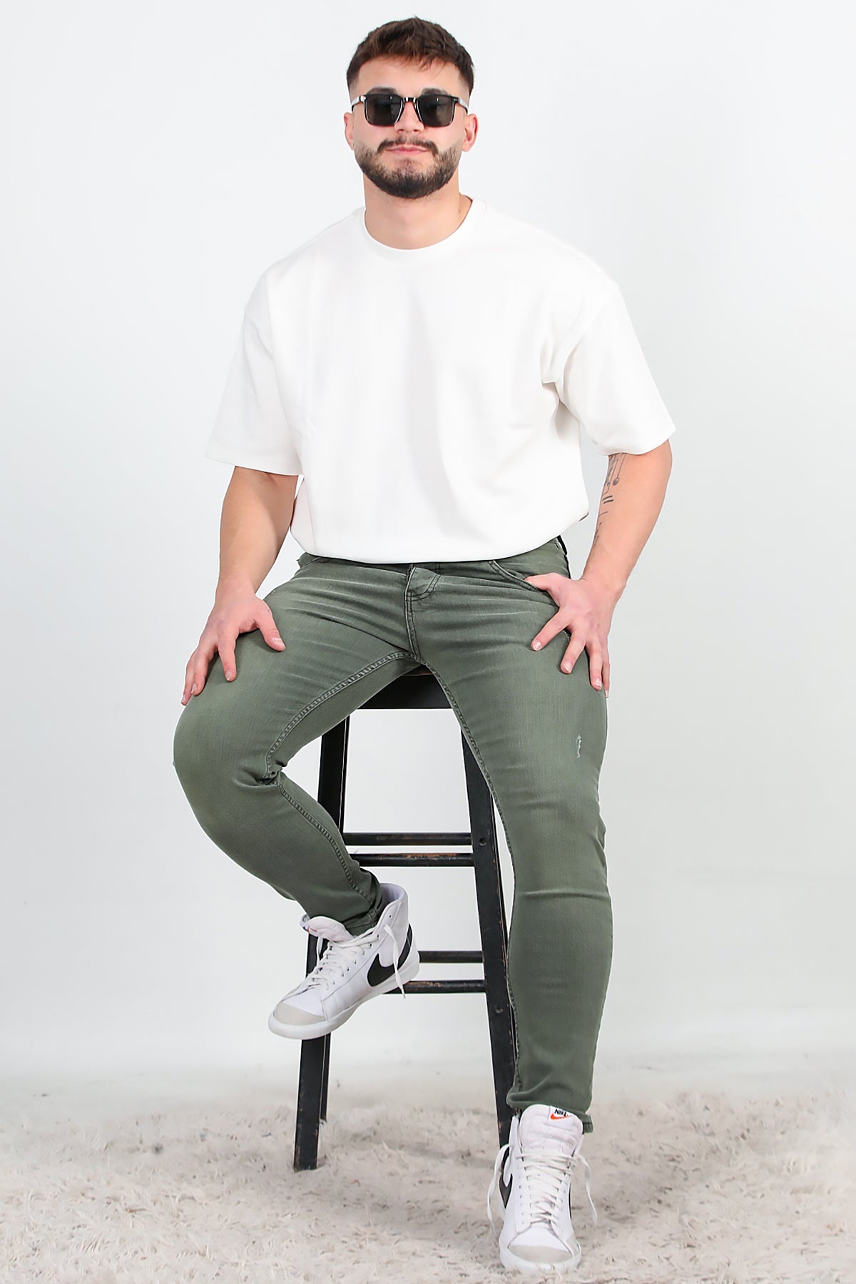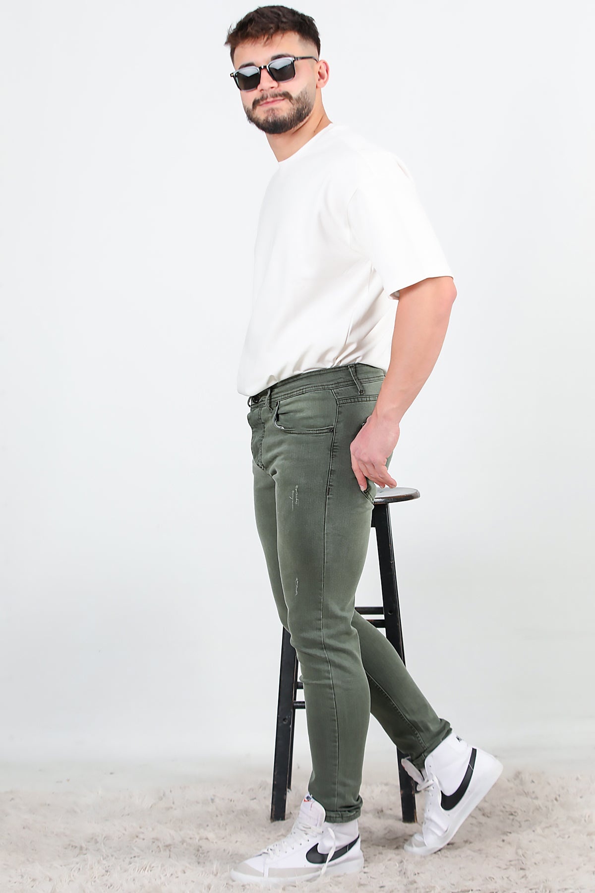 Erkek Tırnaklı Dar Paça Pantolon Yeşil
