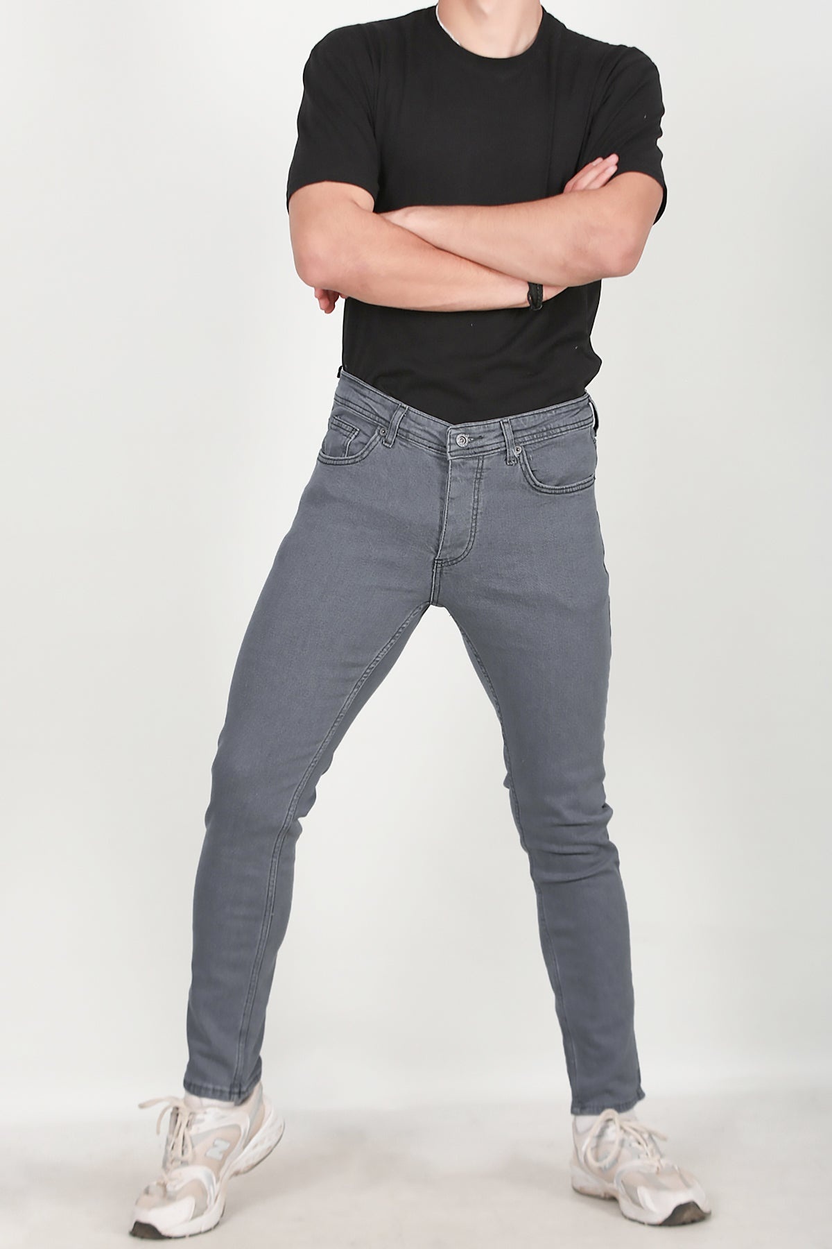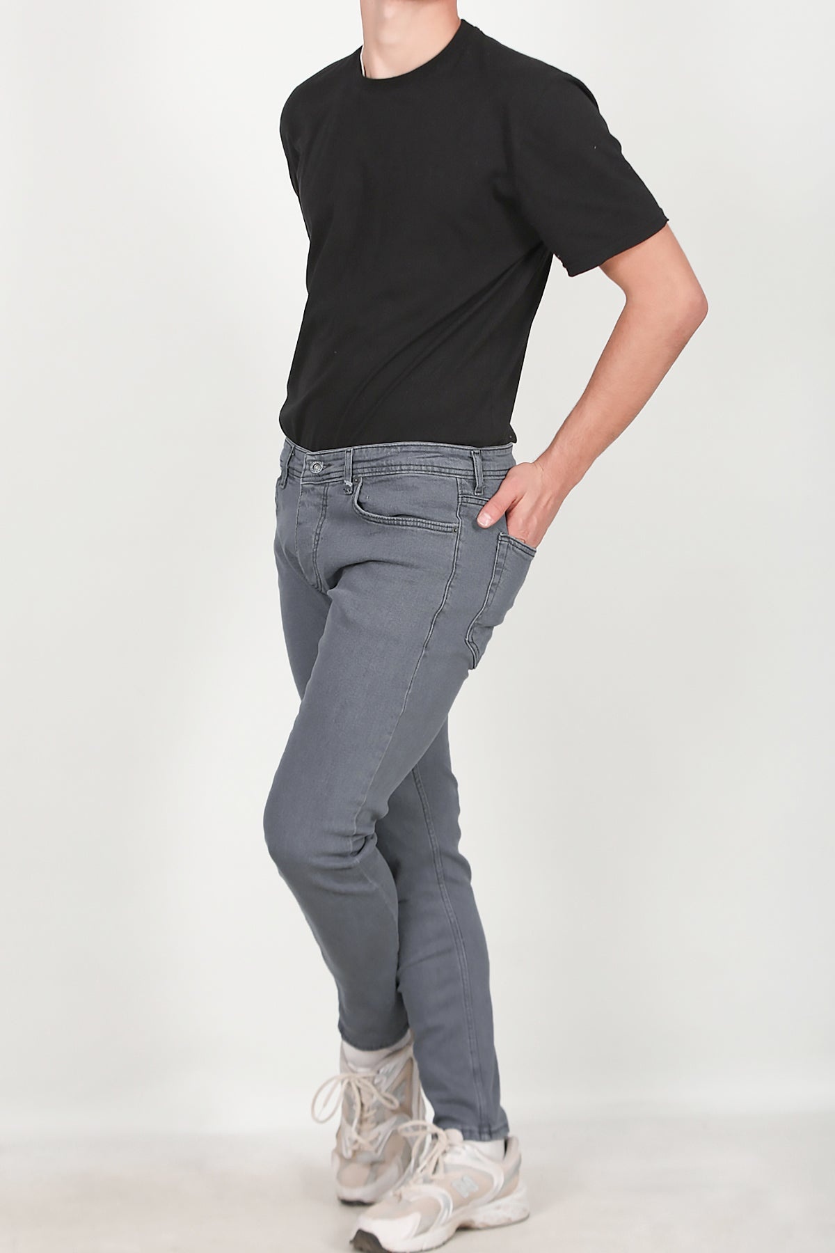 Erkek Tırnaklı Kot Pantolon Gri Gri