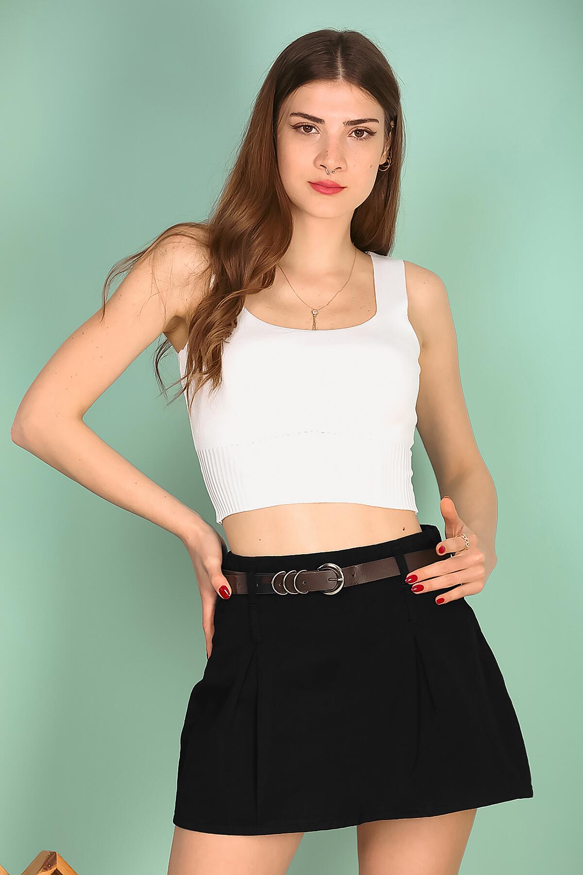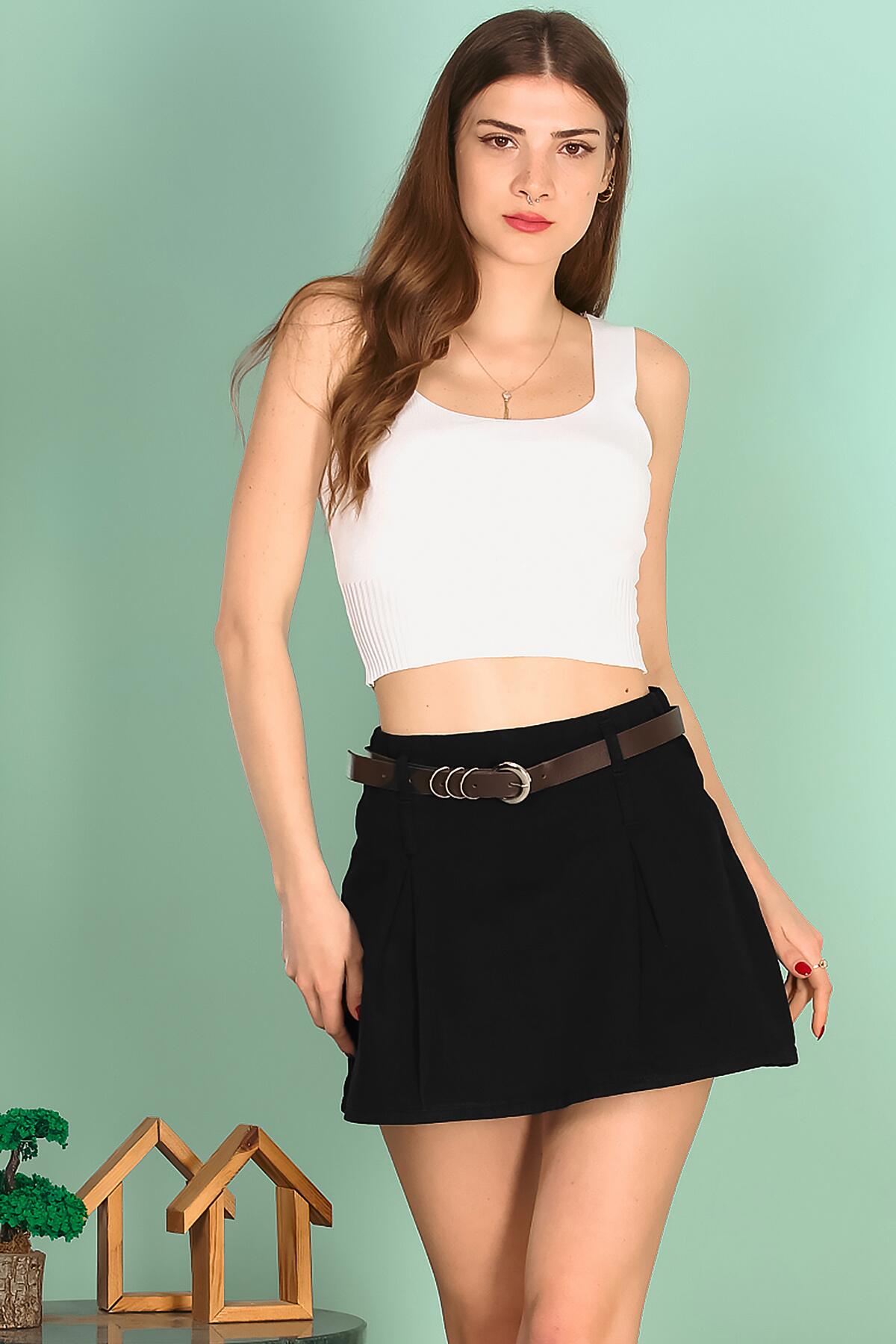 Kadın Kemerli Mini Etek Siyah