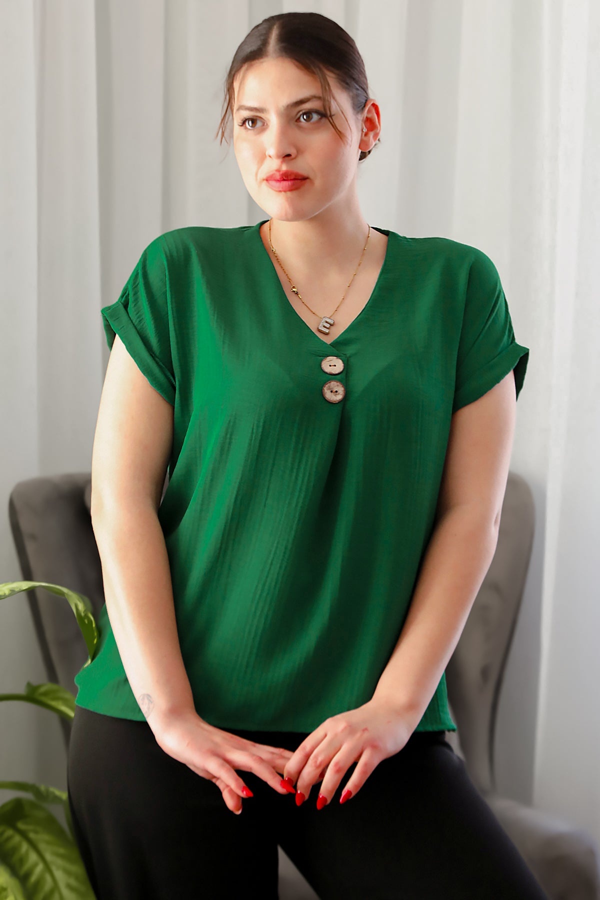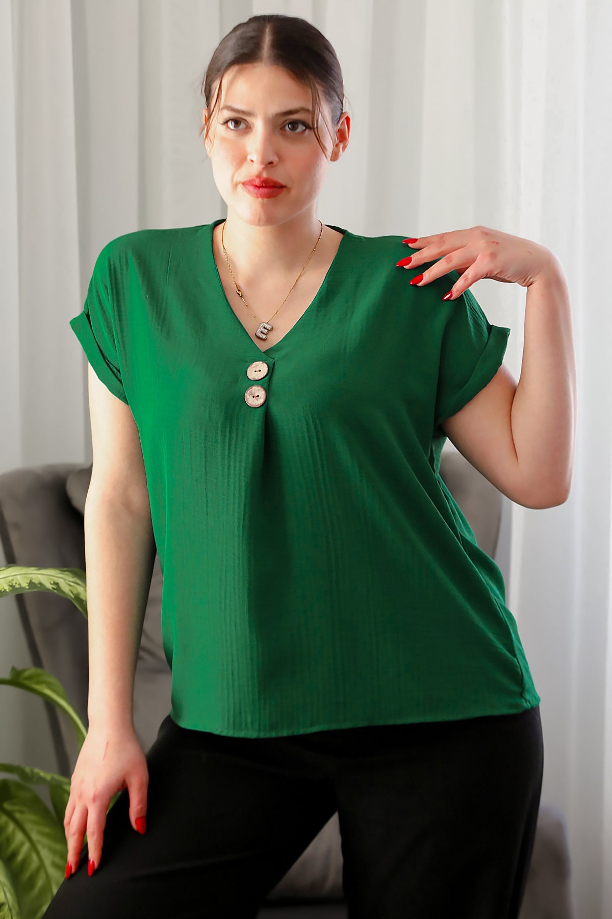 Numune Bedeni: 38Numune Boyu: 62 cmKumaş Tipi: %100 ViskonKol: Kısa Kol