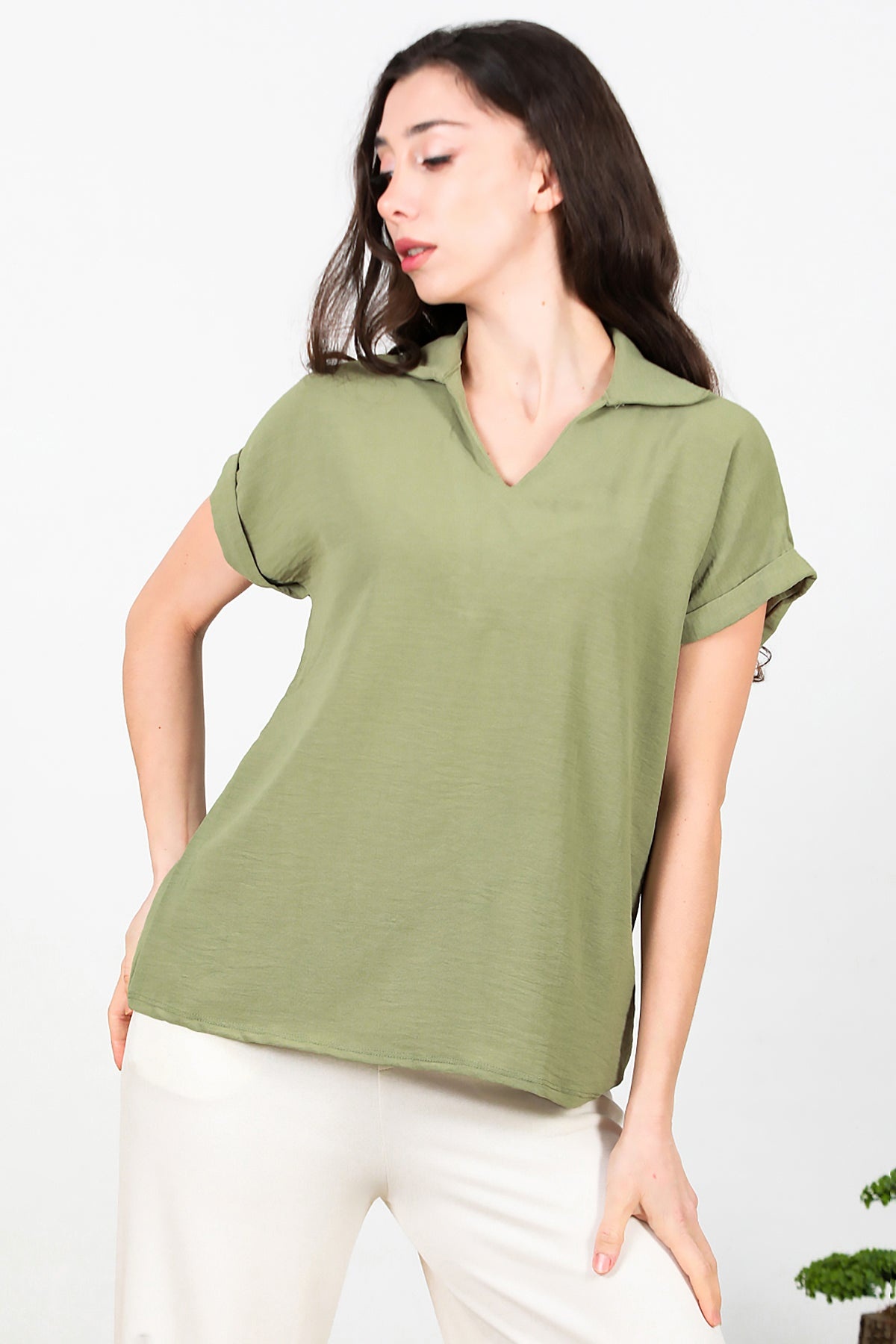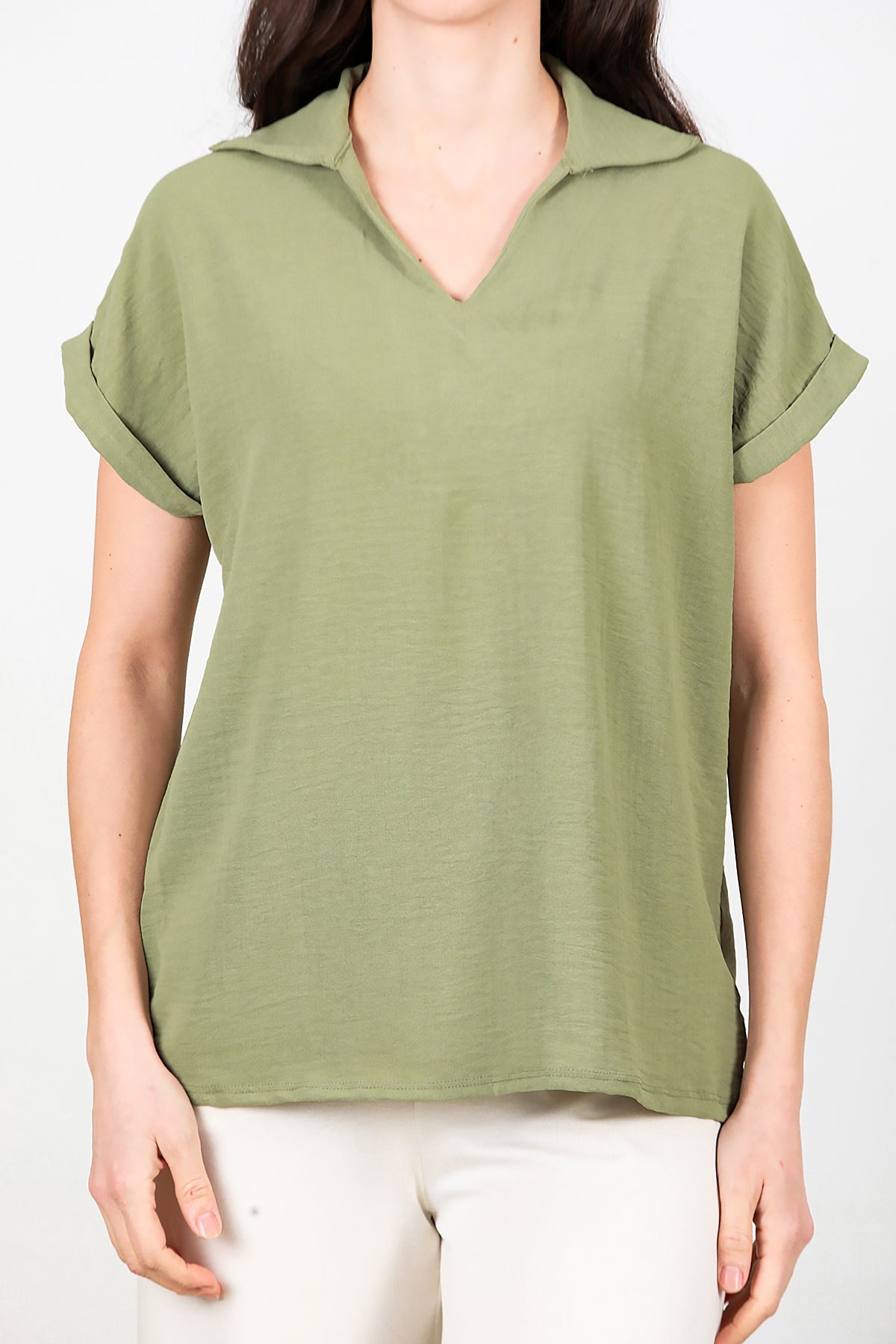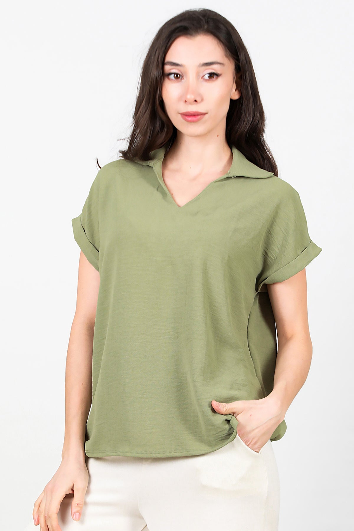 Kadın Ayrobin V Yaka Yakalı Bluz Haki