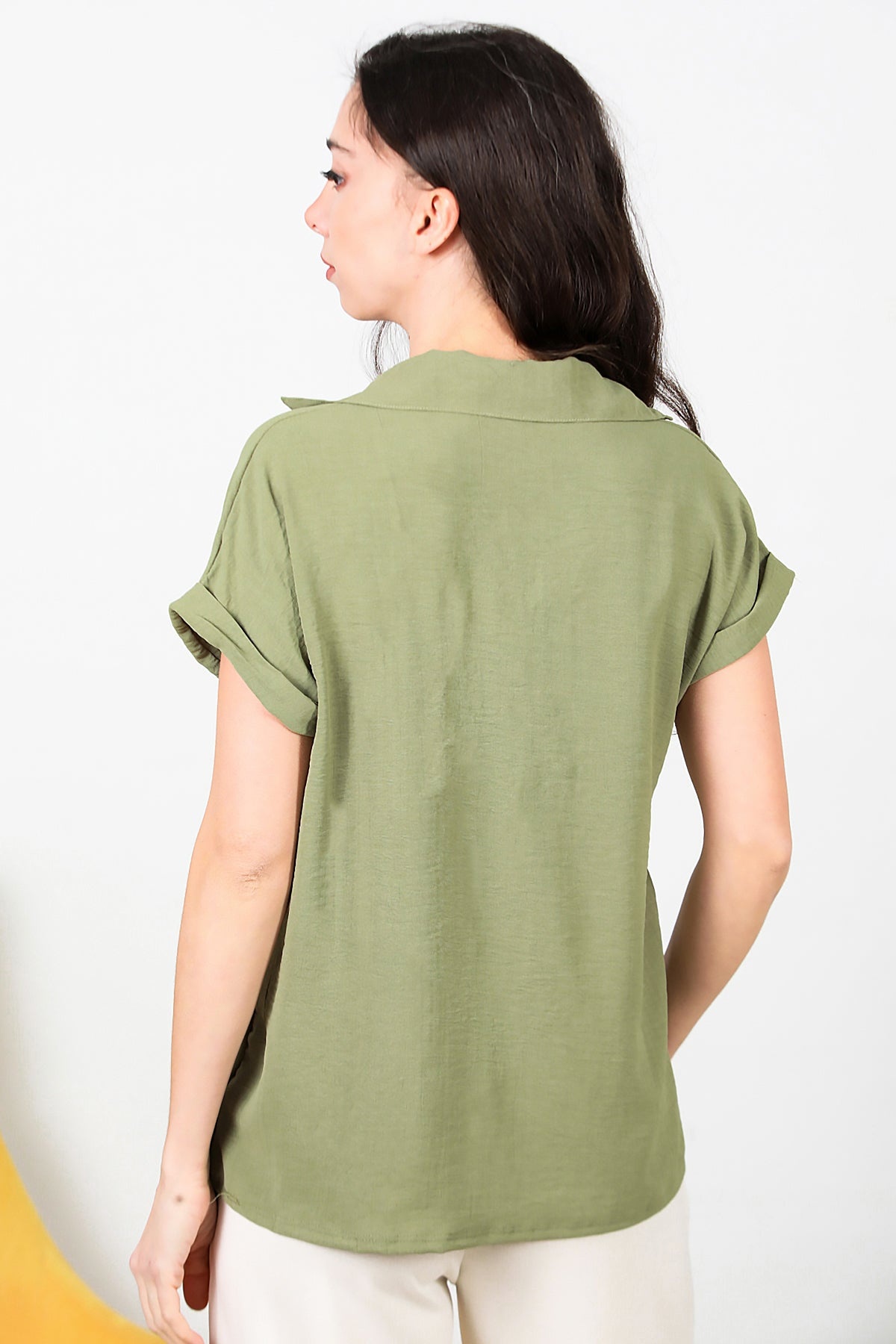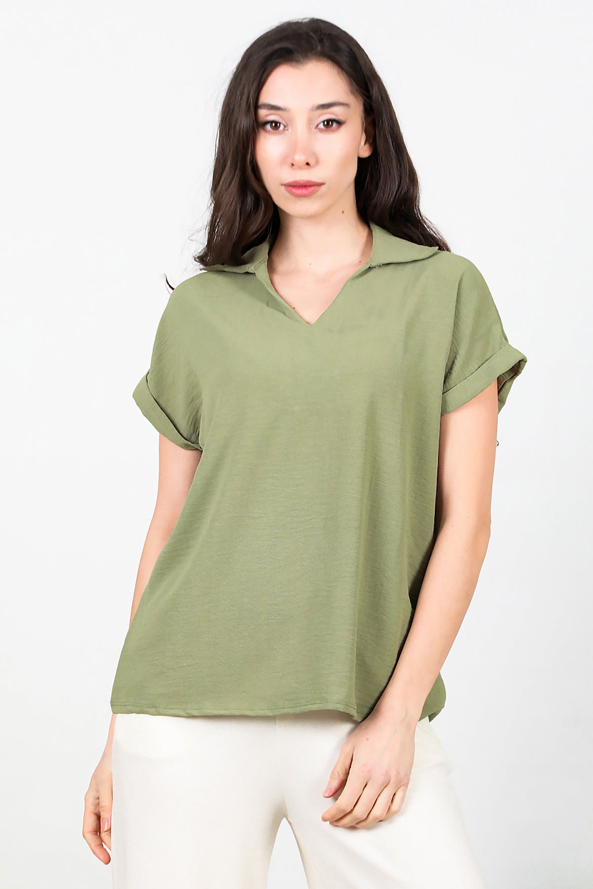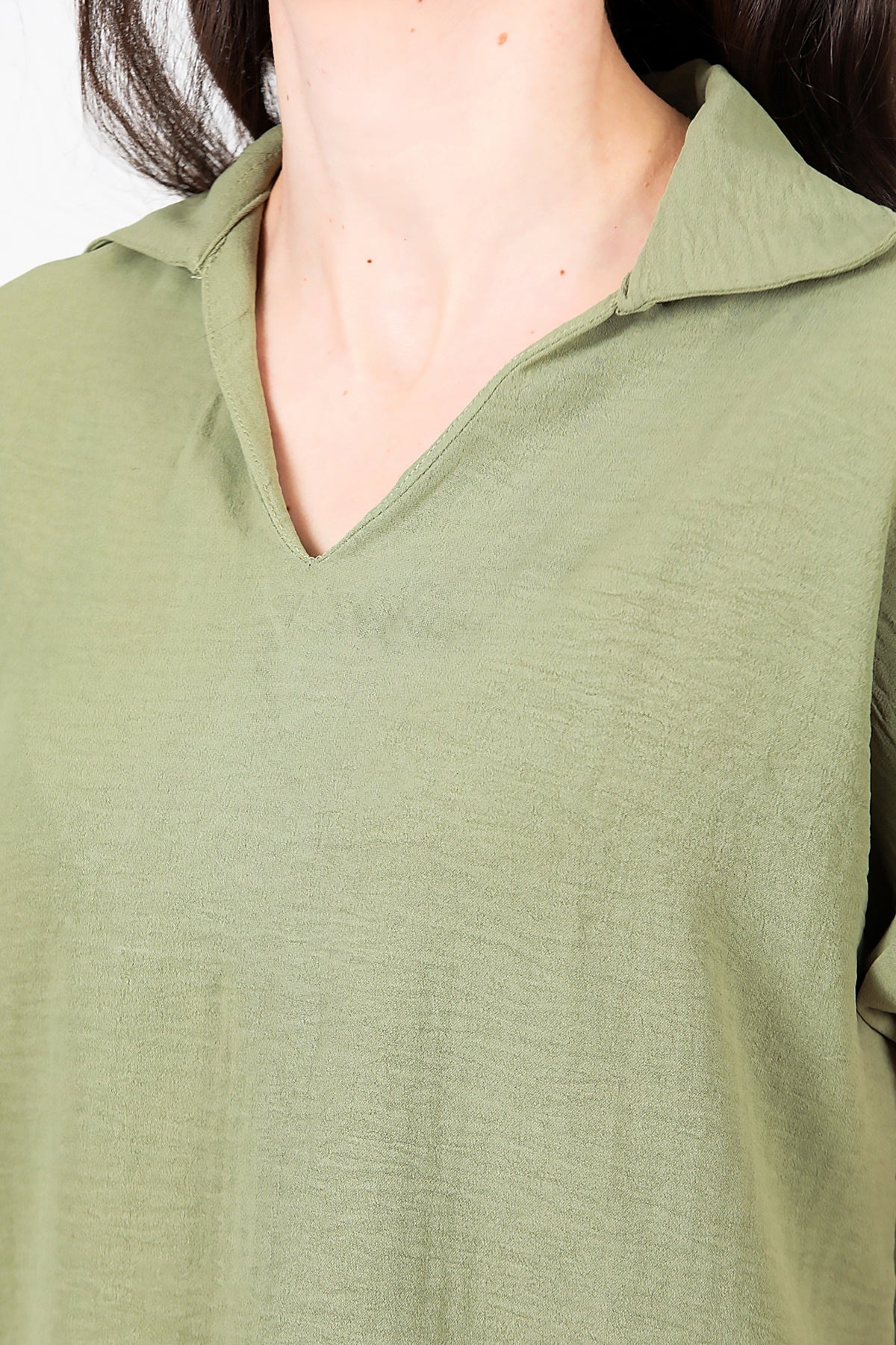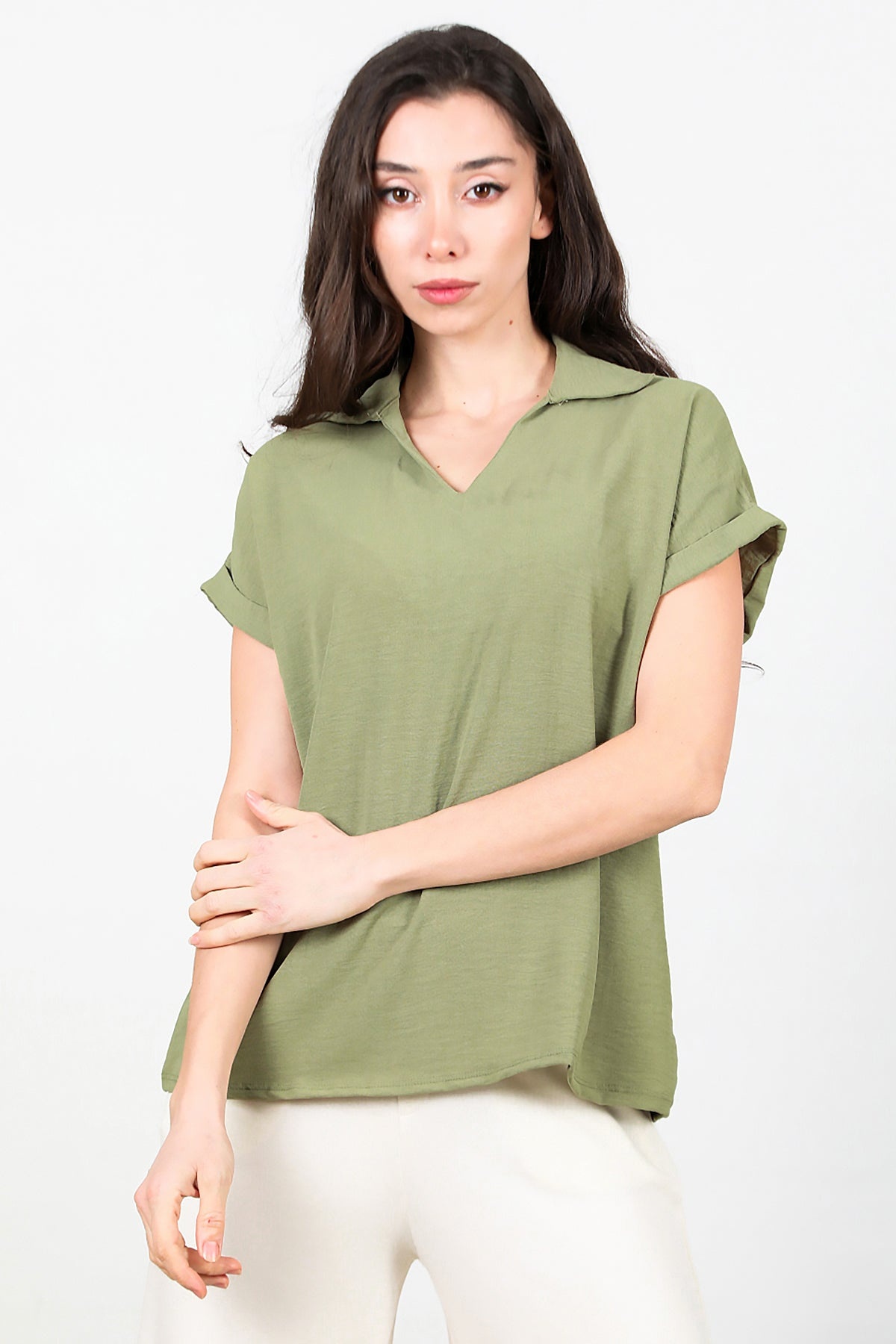 Kadın Ayrobin V Yaka Yakalı Bluz Haki