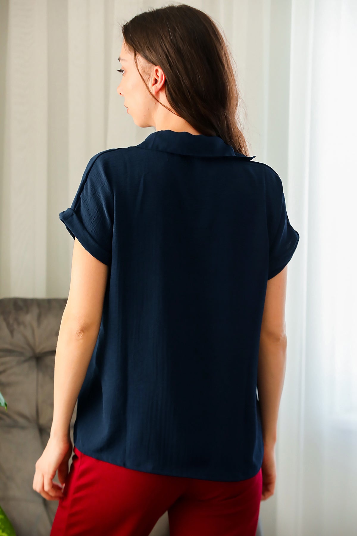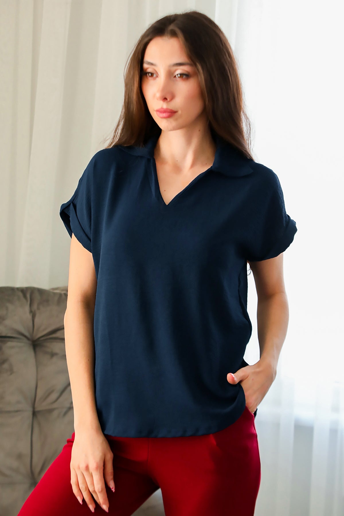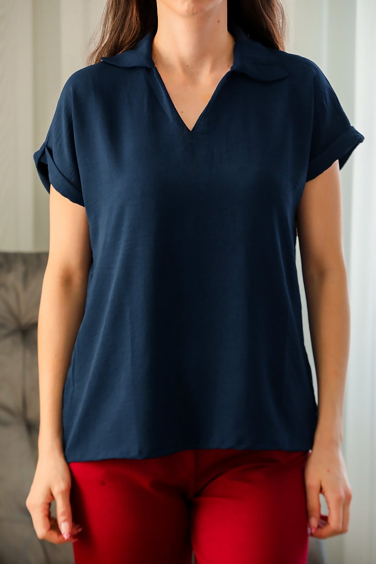 Kadın Ayrobin V Yaka Yakalı Bluz Lacivert