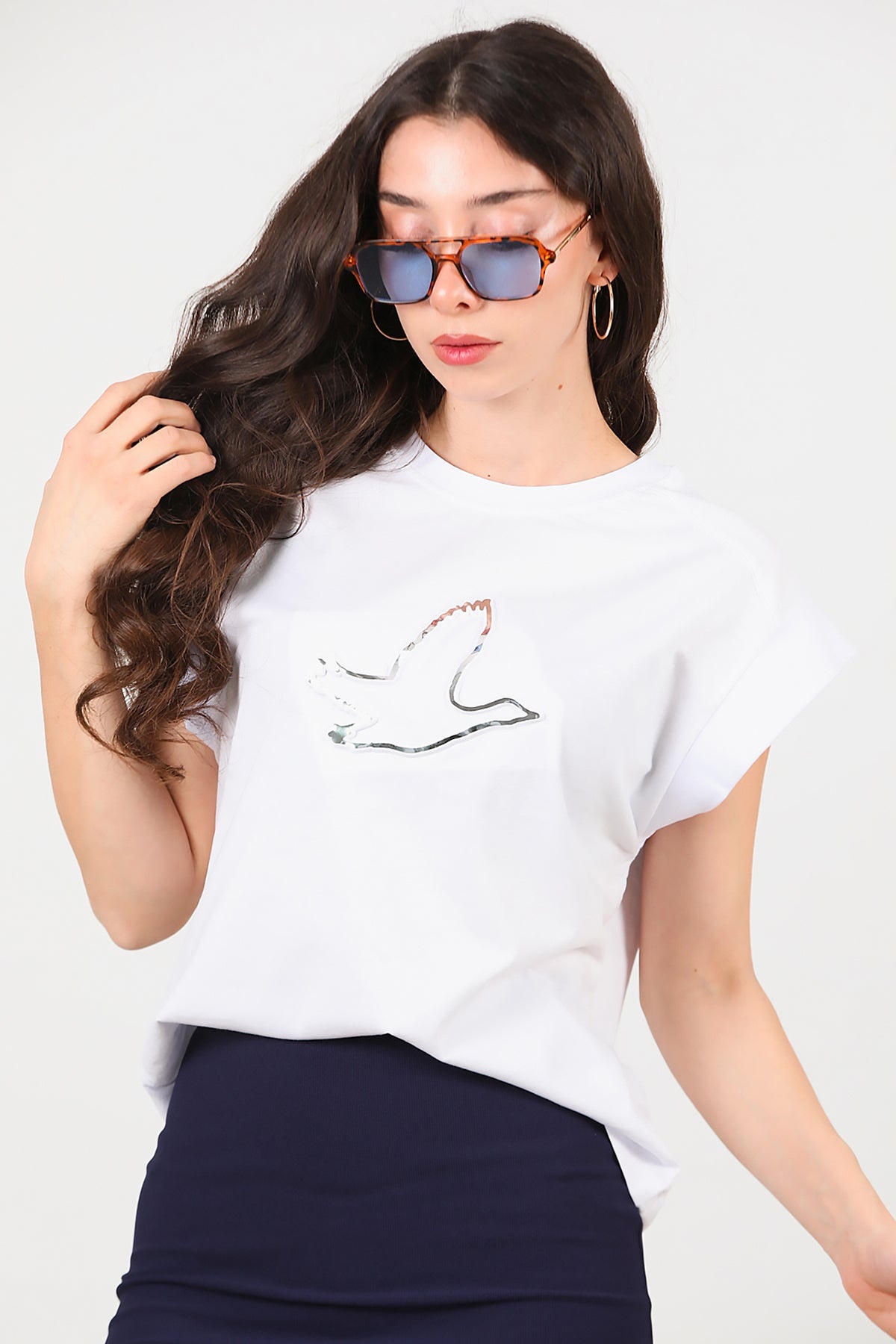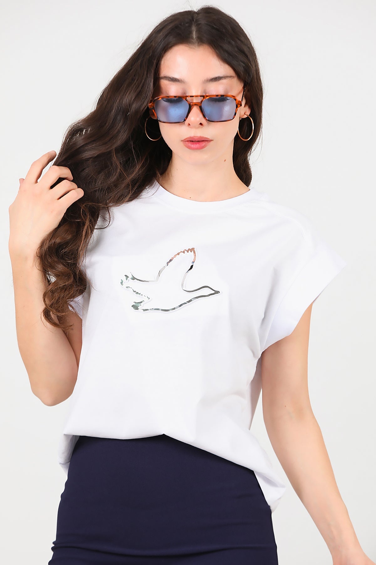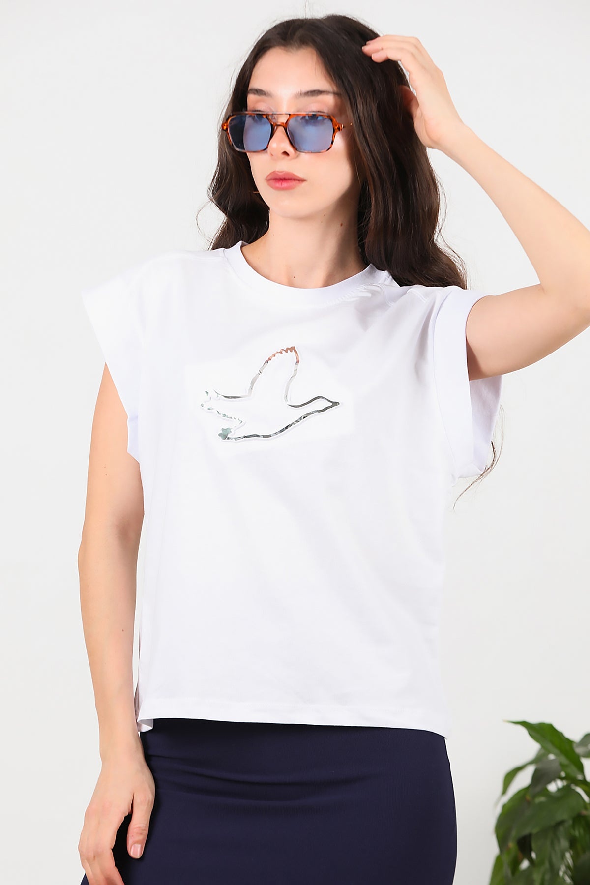 Kadın Baskılı Kolsuz Bluz Beyaz
