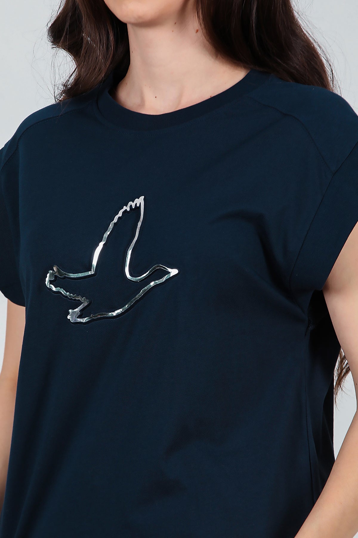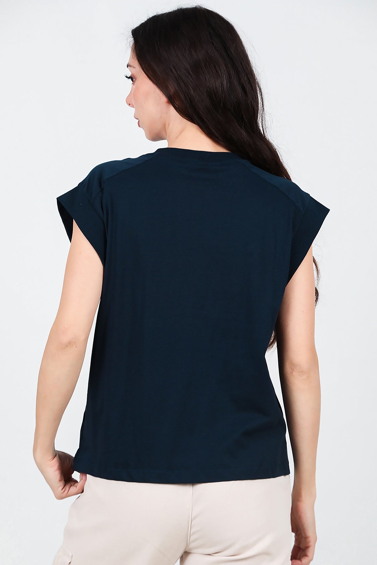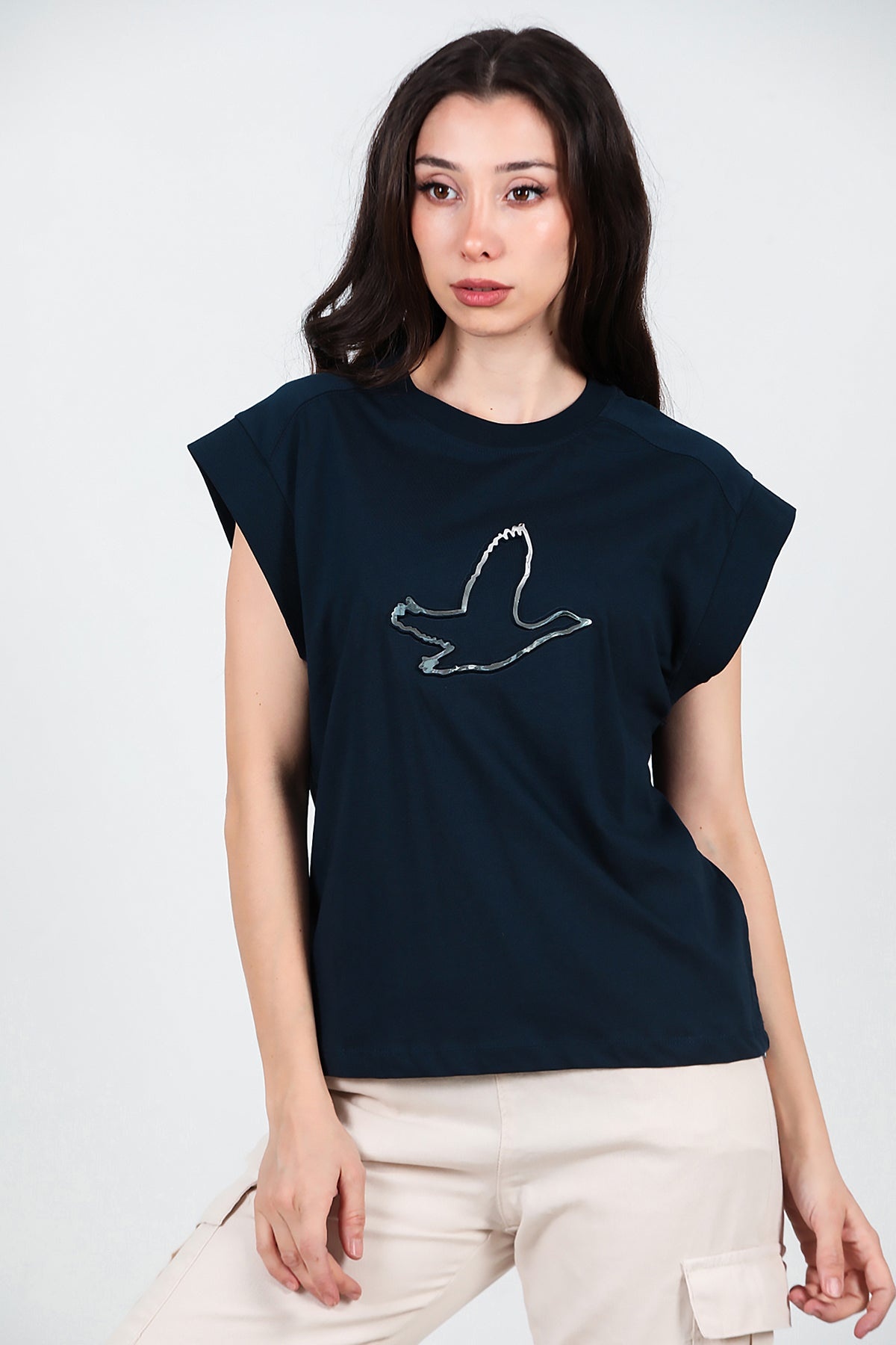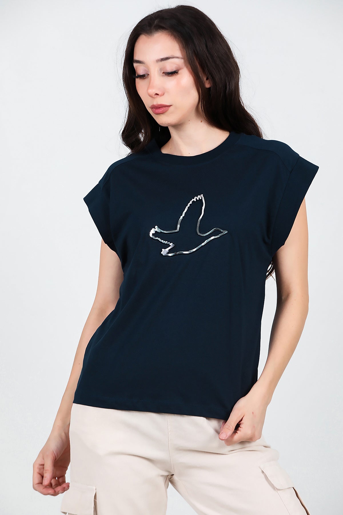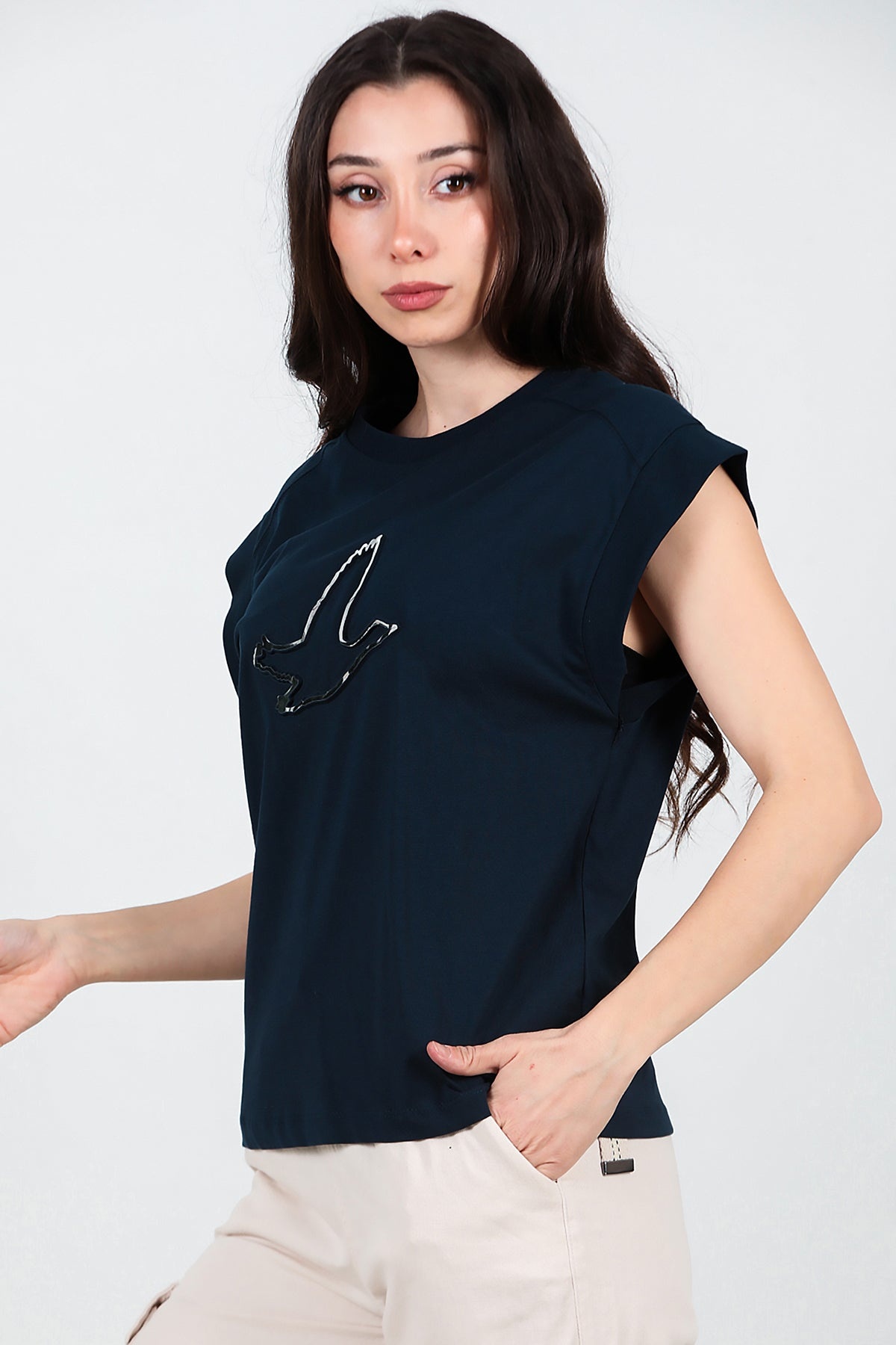 Kadın Baskılı Kolsuz Bluz Lacivert