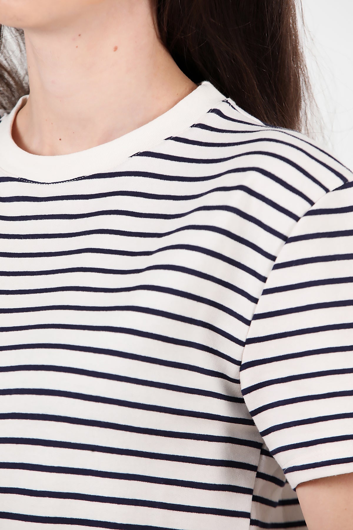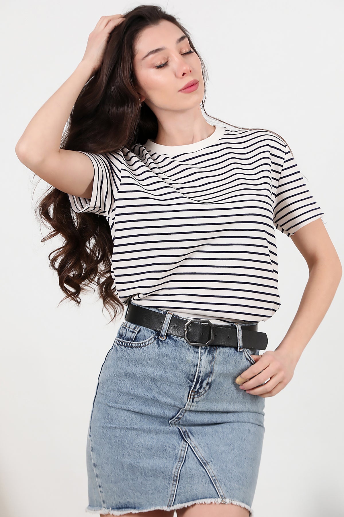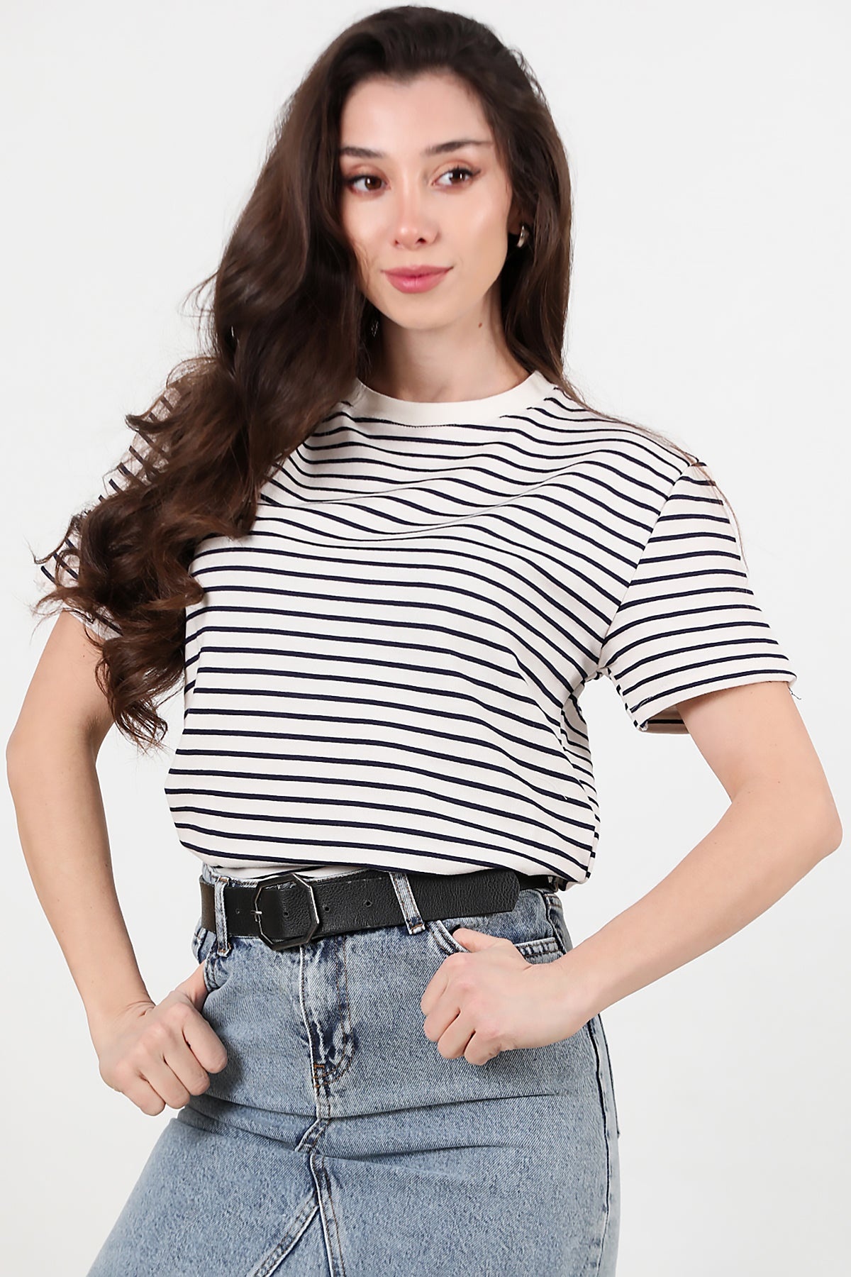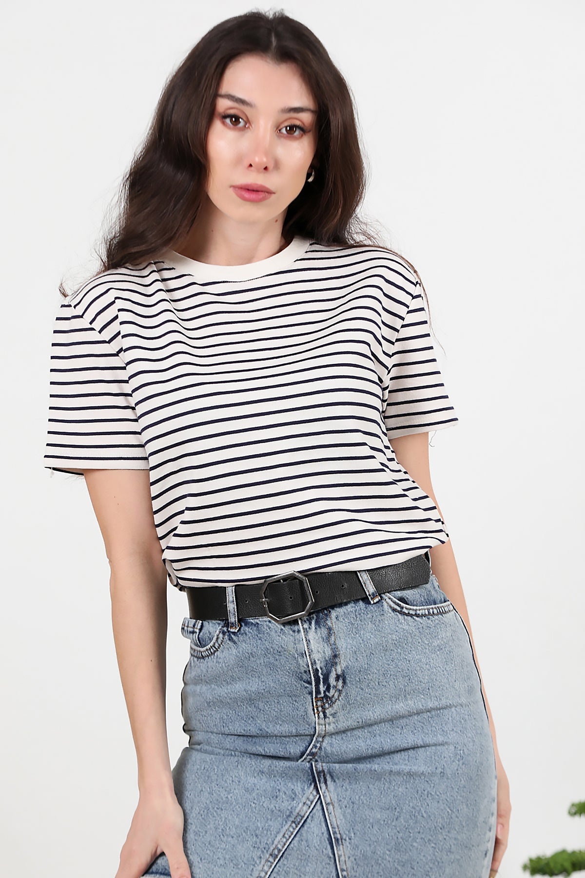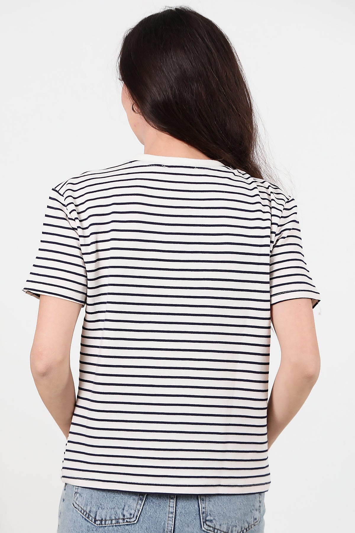 Kadın Bisiklet Yaka Çizgili T-shirt Lacivert